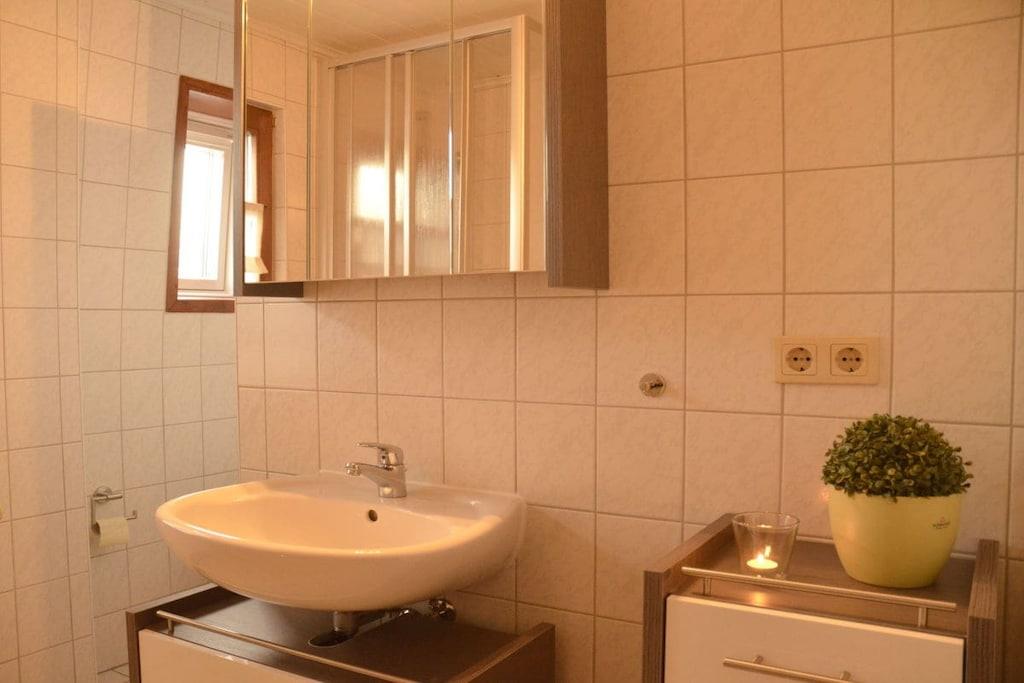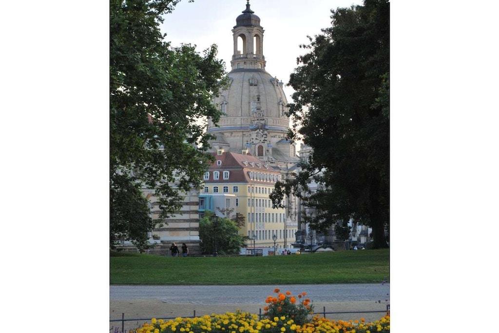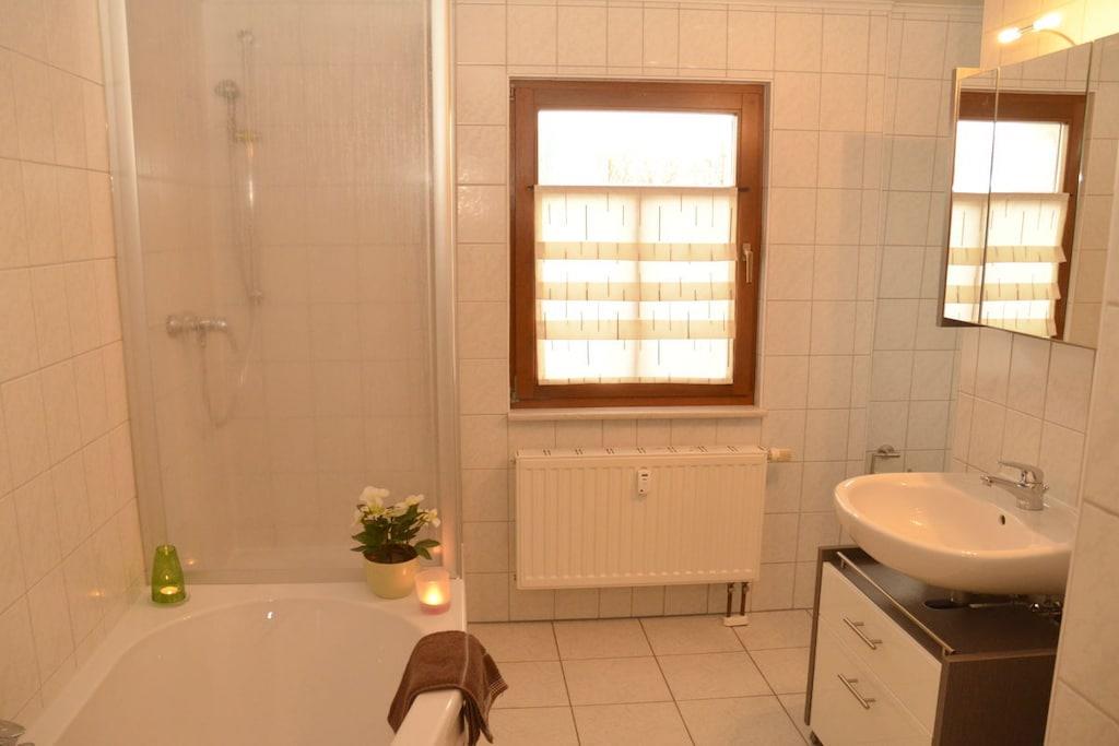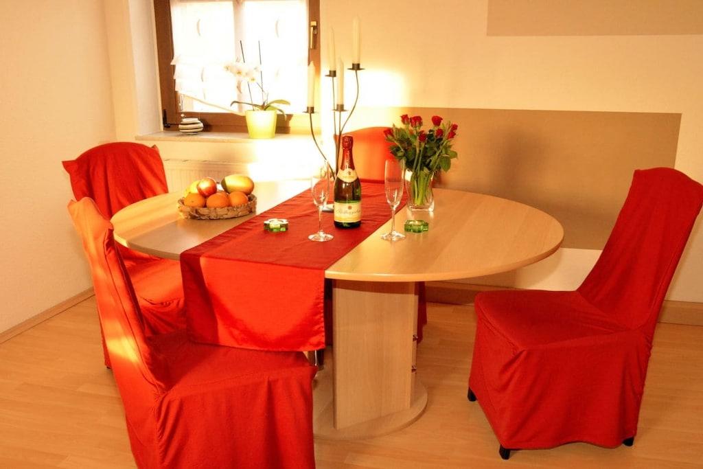 You will stay in a modern, colorful 3-room holiday apartment with a magnificent view of the Pillnitz Castle Park. Satellite TV and internet access are available. The living room features a comfortable corner sofa. A separate dining room is available for dining. The fully equipped kitchen includes an electric stove with 4 ceramic hobs and an oven, a dishwasher, a refrigerator with freezer compartment, and much more. Plenty of dishes, pots, glasses, and other kitchen utensils are provided. The bedroom with a double bed and the children's room with 2 separate beds invite you to dream. The bedrooms are air-conditioned and can be darkened with blinds. The bathroom has a bathtub and shower. Parking is free on site.