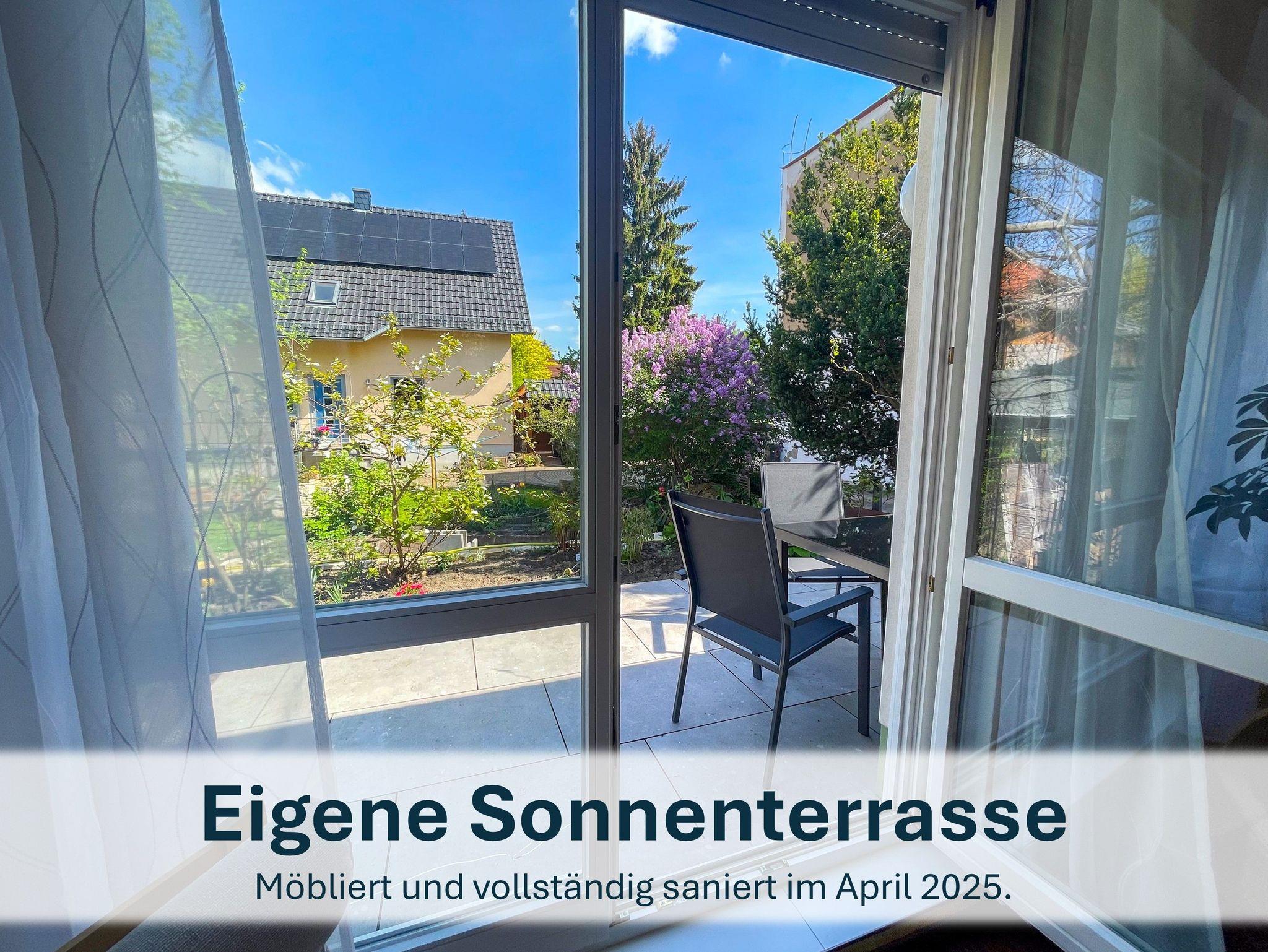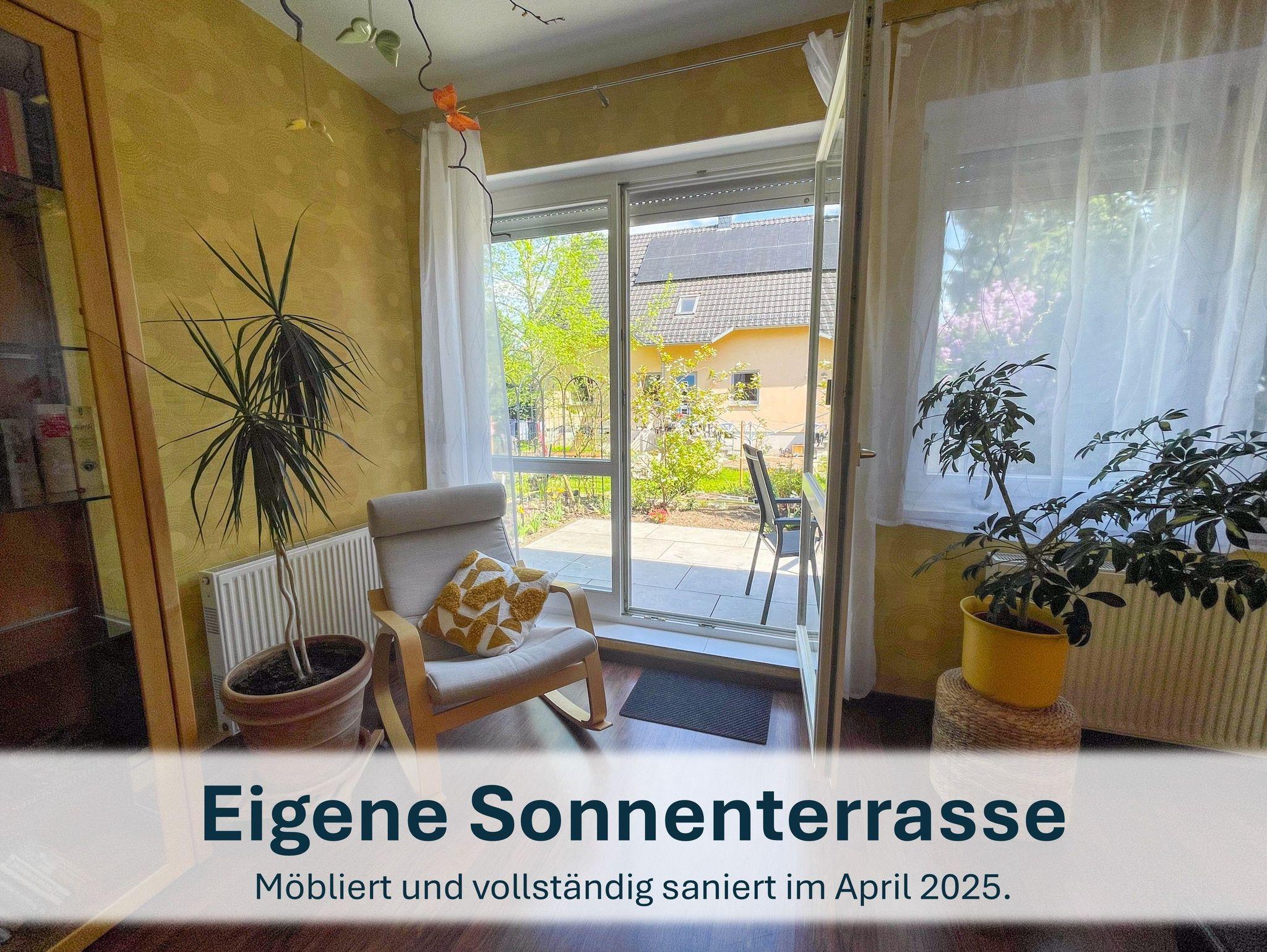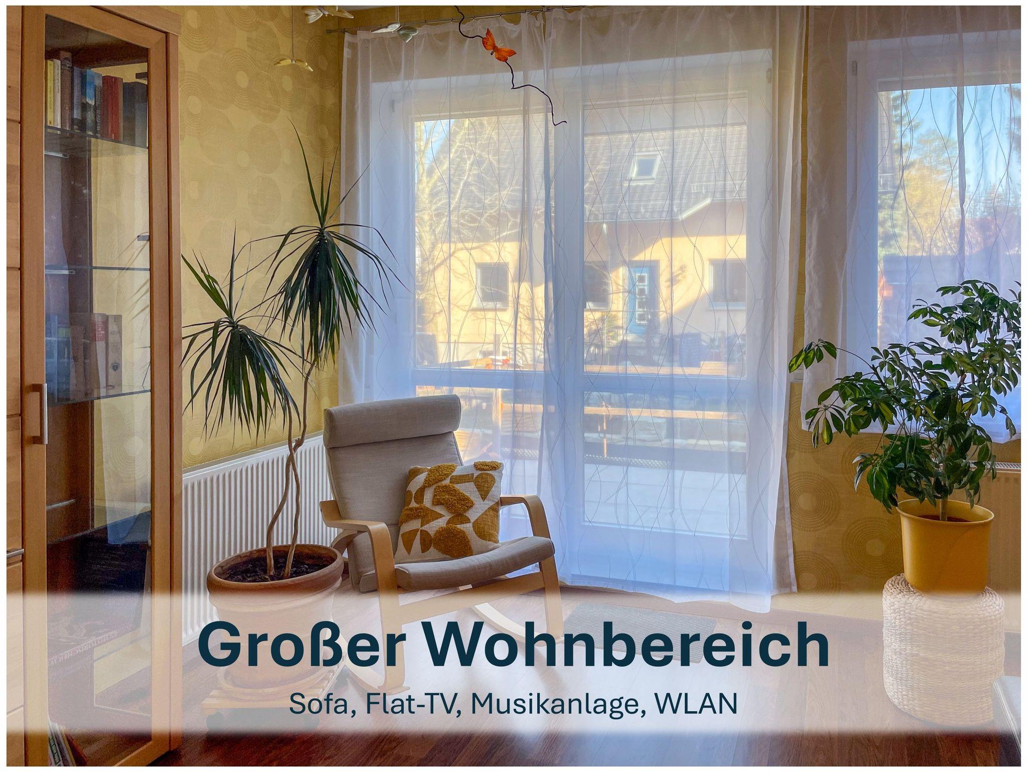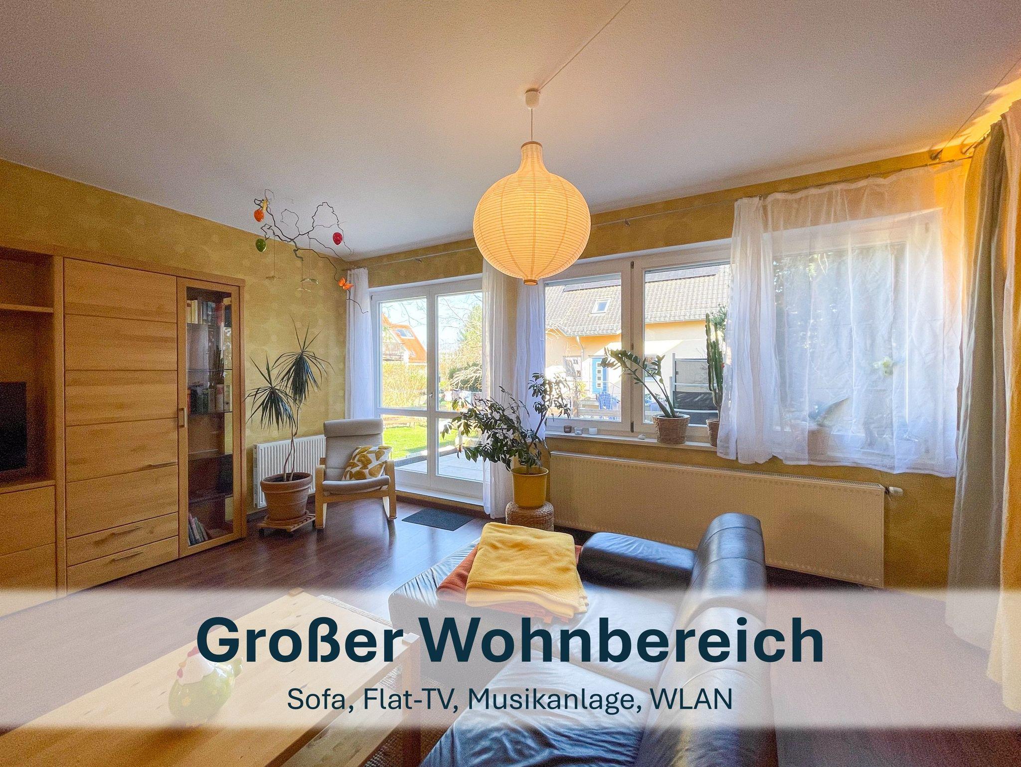 Vom großzügigen Wohnbereich aus haben Sie Blick auf den Gartenbereich und eine Terrasse, welche dieses Jahr jedoch leider nicht genutzt werden kann, aufgrund von Renovierungen.