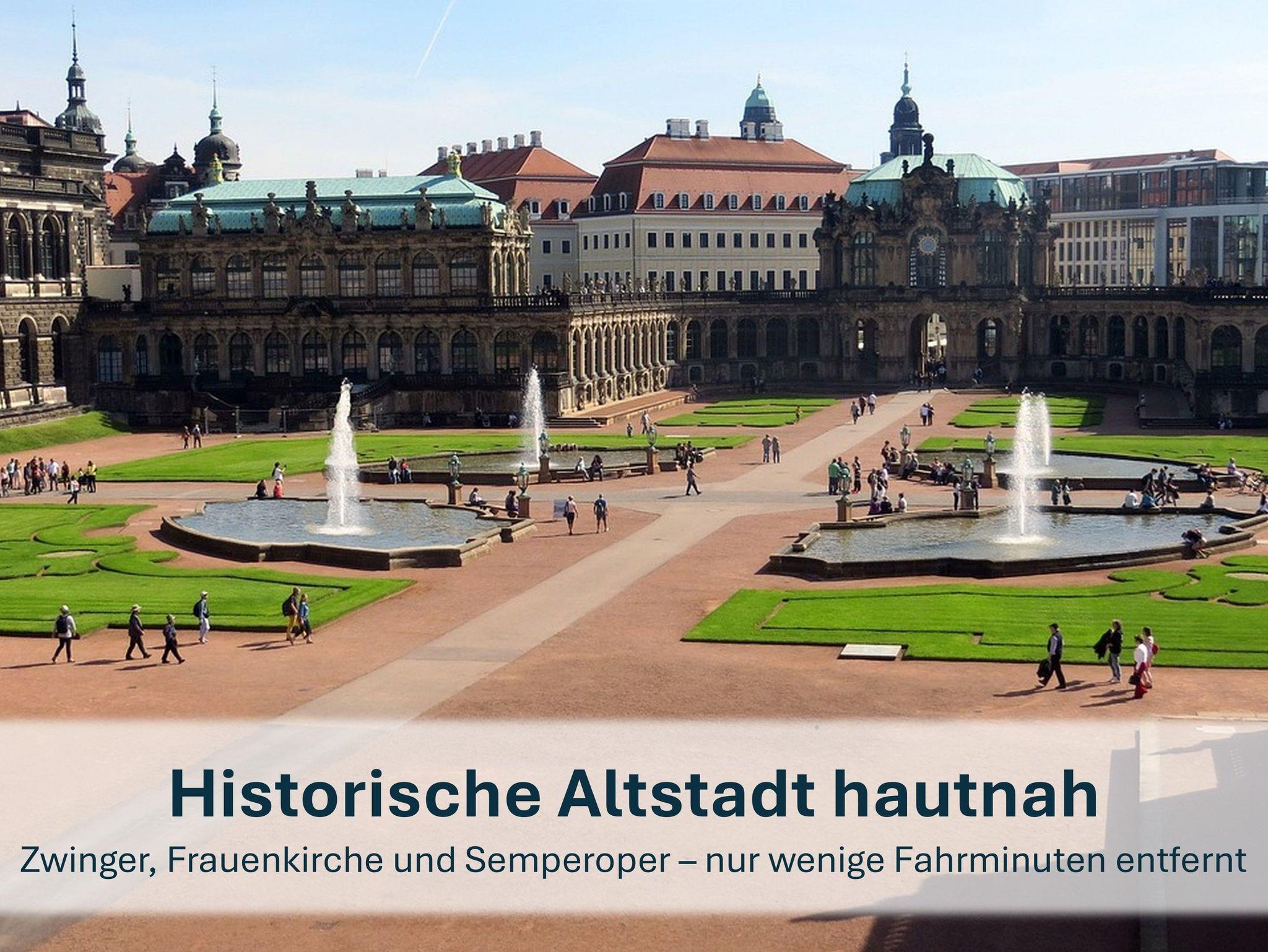 Es erwartet Sie ein idyllisches Ambiente auf 60m² in idealer Lage - ruhig und doch zentrumsnah. In nur 15 Minuten können Sie die historische Altstadt von Dresden erreichen und von dort die sächsische Landeshauptstadt erkunden.