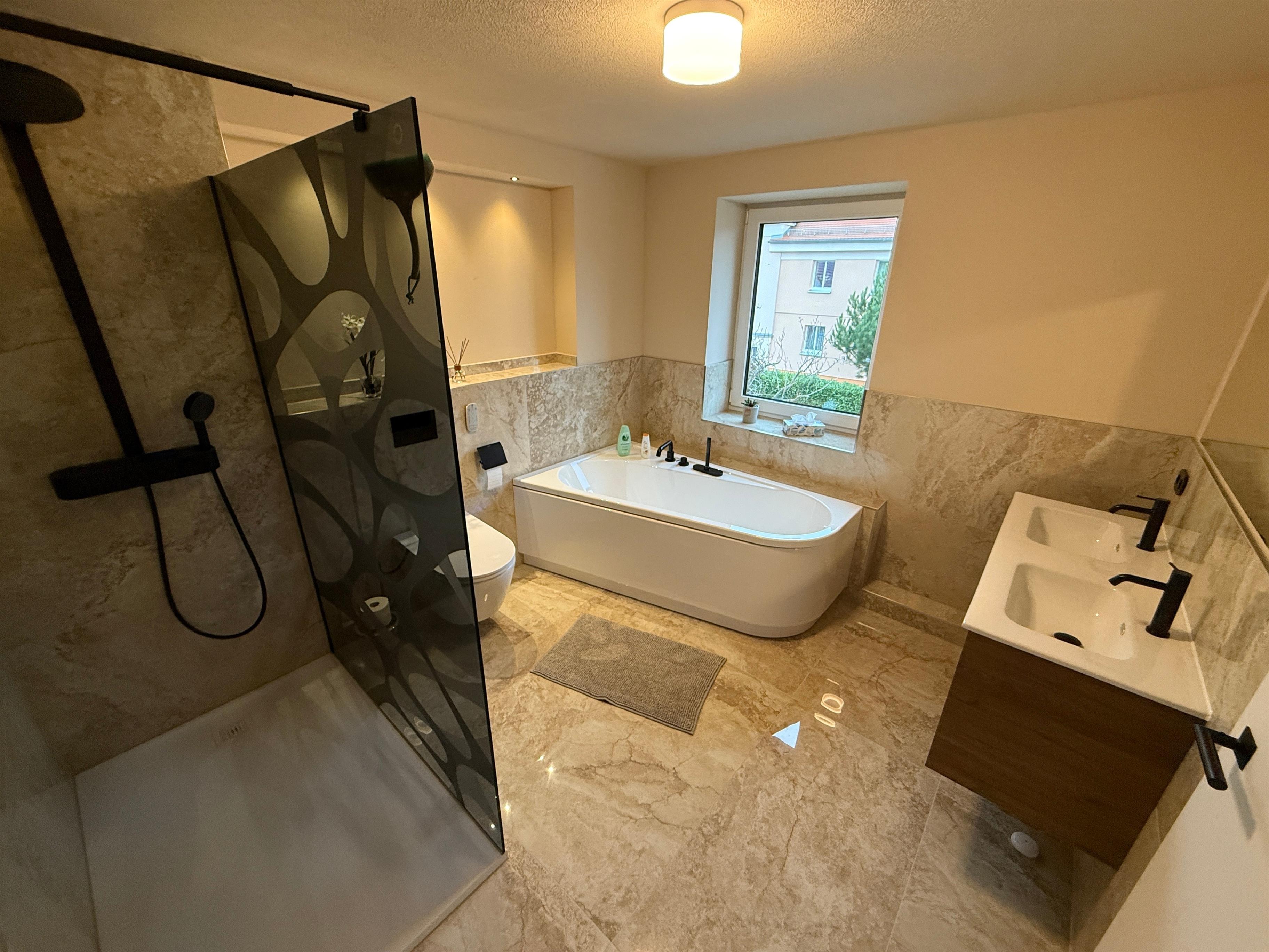 Beide Zimmer bedient das geräumige Tageslichtbad/WC mit Wanne. Es ist modern eingerichtet und besticht durch seine Eleganz.