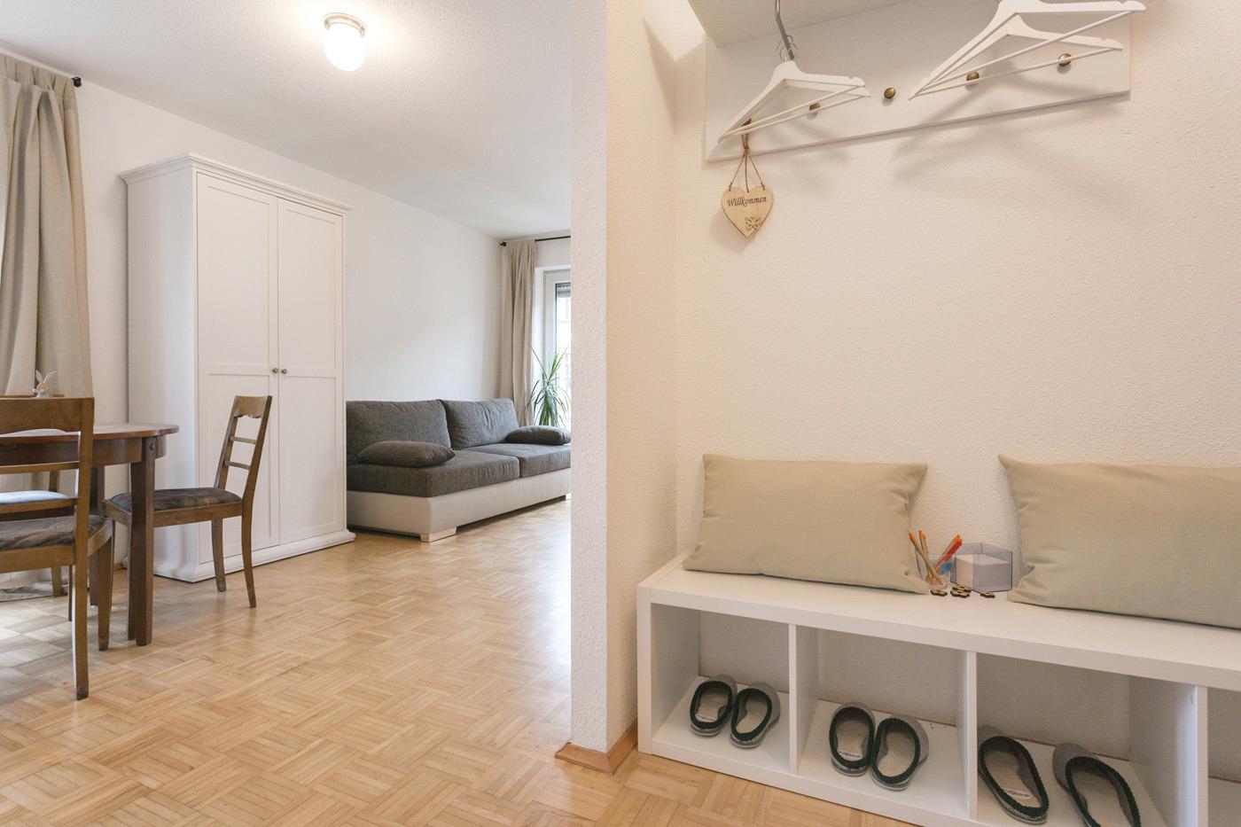 In unmittelbarer Nähe befinden sich Ihre Lieblingsrestaurants. Essen Sie lieber im Appartement, sitzen Sie am bodentiefen Fenster mit Blick ins Grün.