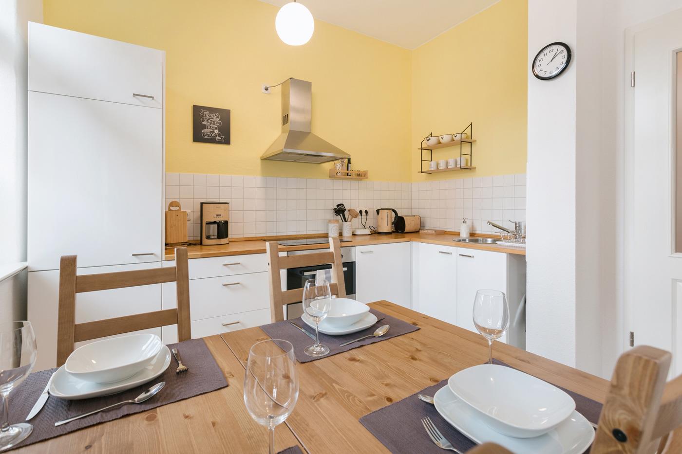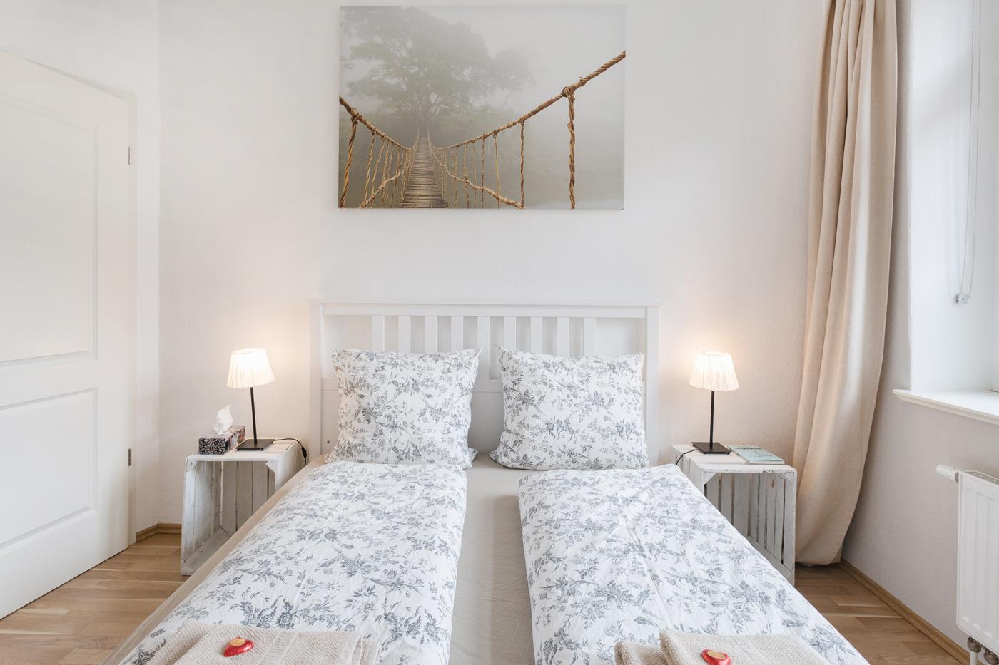 Sie wohnen in einer voll ausgestatteten Zwei-Raum-Ergeschosswohnung im Stadtteilzentrum Pieschen. Mit der Straßenbahn erreichen Sie das Zentrum in nur 15 Minuten. Ihr Schlafzimmer verfügt über ein superbequemes Bett. Die bequeme Boxspring-Schlafcouch im Wohnzimmer bietet zwei weiteren Gästen eine herrliche Schlafmöglichkeit.