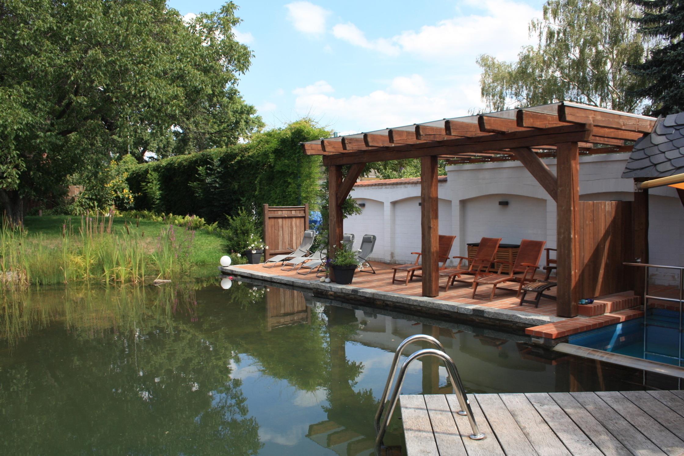 Weiterhin gibt es die Badeschene zur Entspannung mit verschiedenen Saunen und Schwebebad, Massage sowie einen Schwimmteich.