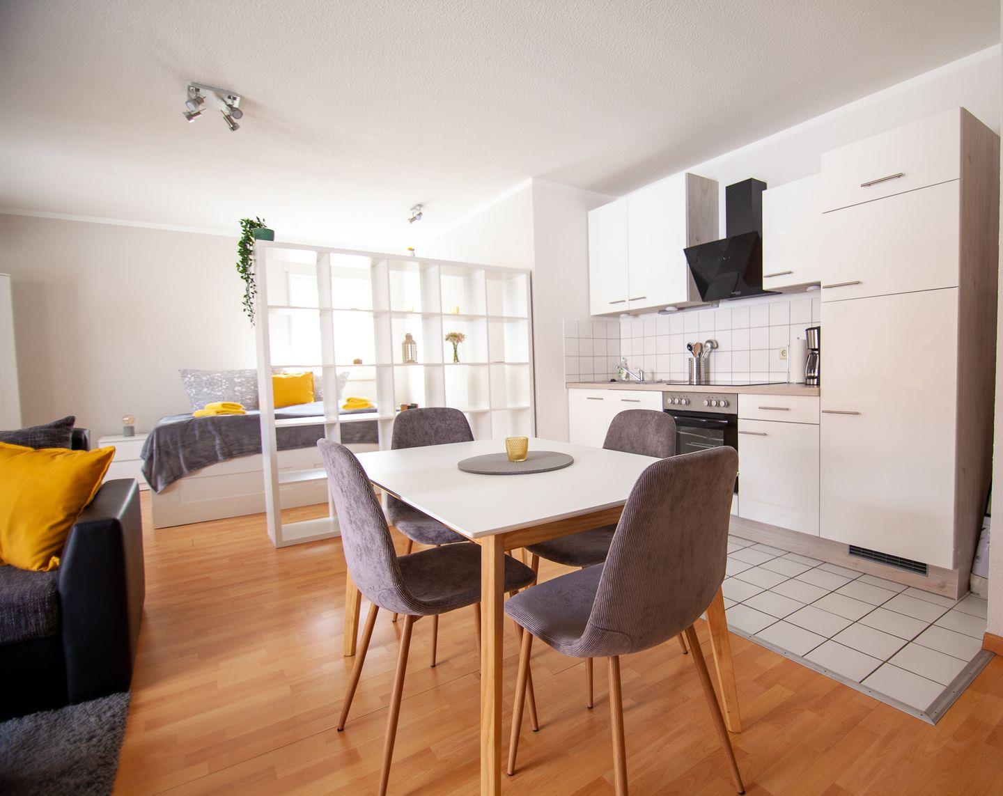 Die stilvoll eingerichtete 1-Zimmer-Wohnung befindet sich im 1. Stock eines ruhigen Mehrfamilienhauses. Sie ist der idealen Ausgangspunkt zur Erkundung der Stadt und des Umlandes. Der gemütlichen Balkon zur Hofseite lädt zum entspannen und verweilen ein. Genießen Sie einen individuellen und abwechslungsreichen Urlaub und entspannen Sie in unser einladenden Ferienwohnung.