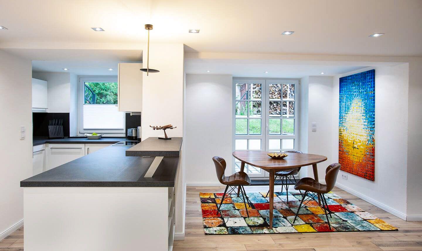 Verbringen Sie Ihren Urlaub oder Ihren Business-Aufenthalt im gehobenen Ambiente. Neben einer Fußbodenheizung ist als besonderes Highlight die Sauna hervorzuheben. Im Bad finden Sie eine bodengleiche Dusche sowie eine große Eckbadewanne.
