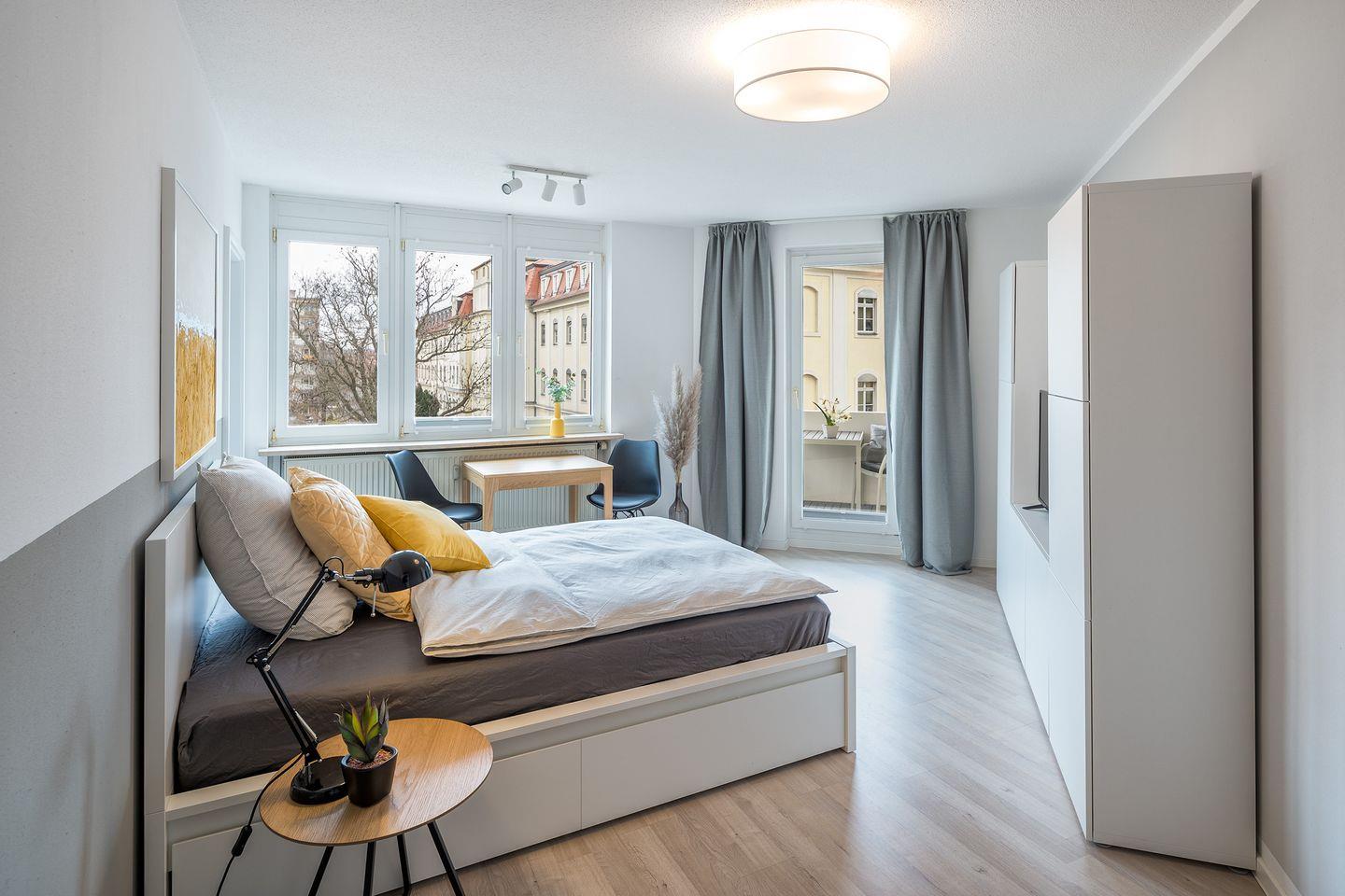 Die Wohnung befindet sich im vierten Stock eines ruhigen Mehrfamilienhauses und bietet Ihnen einen wunderschönen Rückzugsort nach einem erlebnisreichen Tag. Sie ist nicht nur modern und hell, sondern auch vollständig ausgestattet – vom komfortablen Schlafzimmer über eine eigene Küchenzeile bis hin zu einem gemütlichen Wohnbereich. Die Wohnung verfügt über ein komfortables Doppelbett, sodass Sie nach einem aufregenden Tag in Dresden erholsamen Schlaf finden können.