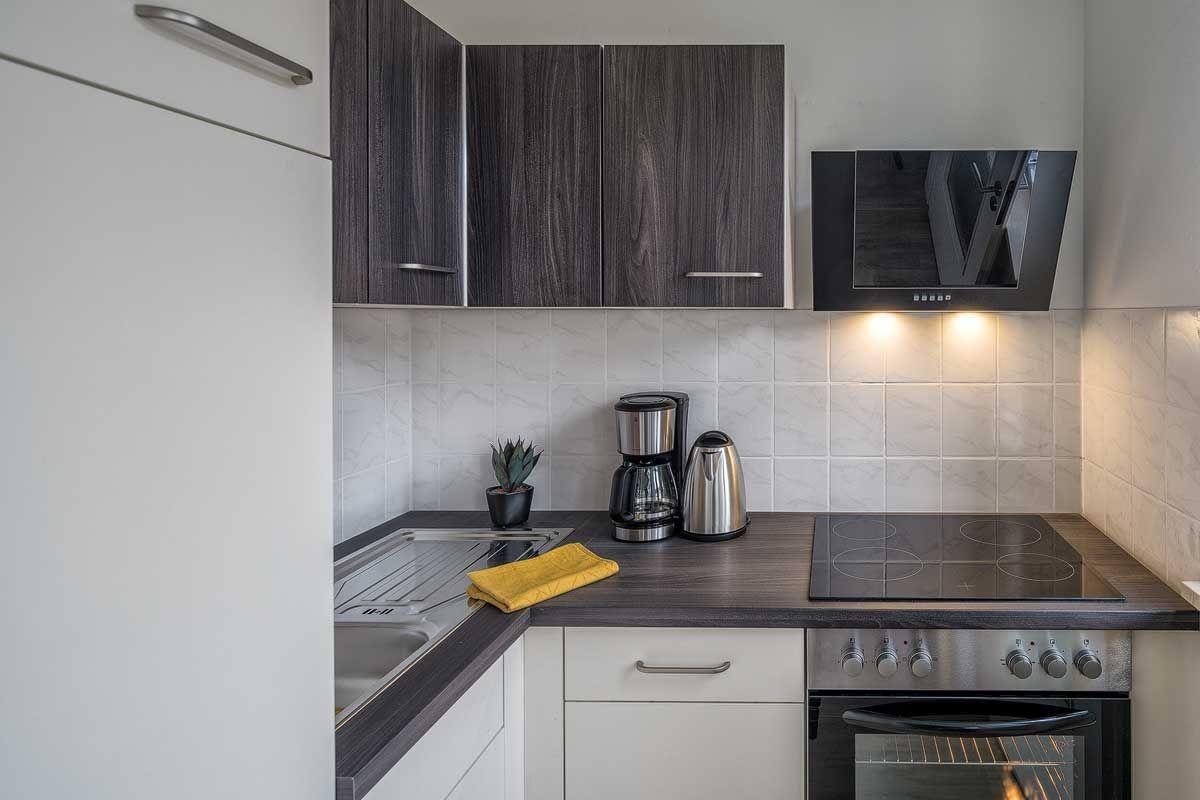 Die moderne Küche lässt keine Wünsche offen. Mit einem Kühlschrank, Cerankochfeld, Backofen, Mikrowelle und Geschirrspülmaschine haben Sie alles, was Sie benötigen, um kulinarische Köstlichkeiten zu zaubern. Genießen Sie Ihre Mahlzeiten am Esstisch, oder entspannen Sie einfach auf dem überdachten Balkon, während Sie die frische Luft genießen und die Atmosphäre der Stadt auf sich wirken lassen.