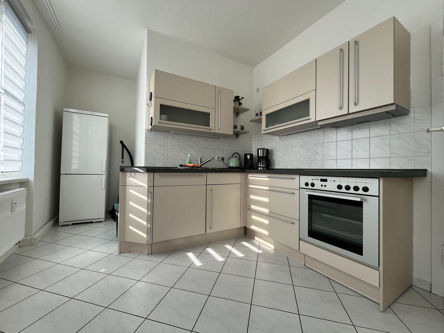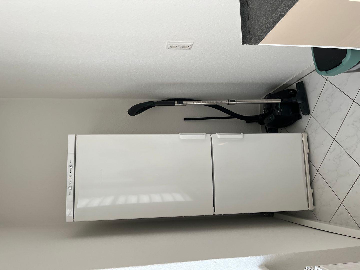 Die separate, geschlossene Küche bietet erstklassige Annehmlichkeiten, darunter einen Elektroherd mit einem Backofen, eine Spülmaschine, eine Kaffeemaschine, eine Espressomaschine und weitere Küchenutensilien. Sie werden die Möglichkeit schätzen, Ihre eigenen Mahlzeiten zuzubereiten und in der komfortablen Umgebung der Wohnung zu genießen. Ein Kühlschrank mit Gefrierfach sorgt dafür, dass Sie genügend Platz für Ihre Lebensmittel haben, während Gewürze und Geschirr zur Verfügung stehen, um direkt loszulegen.