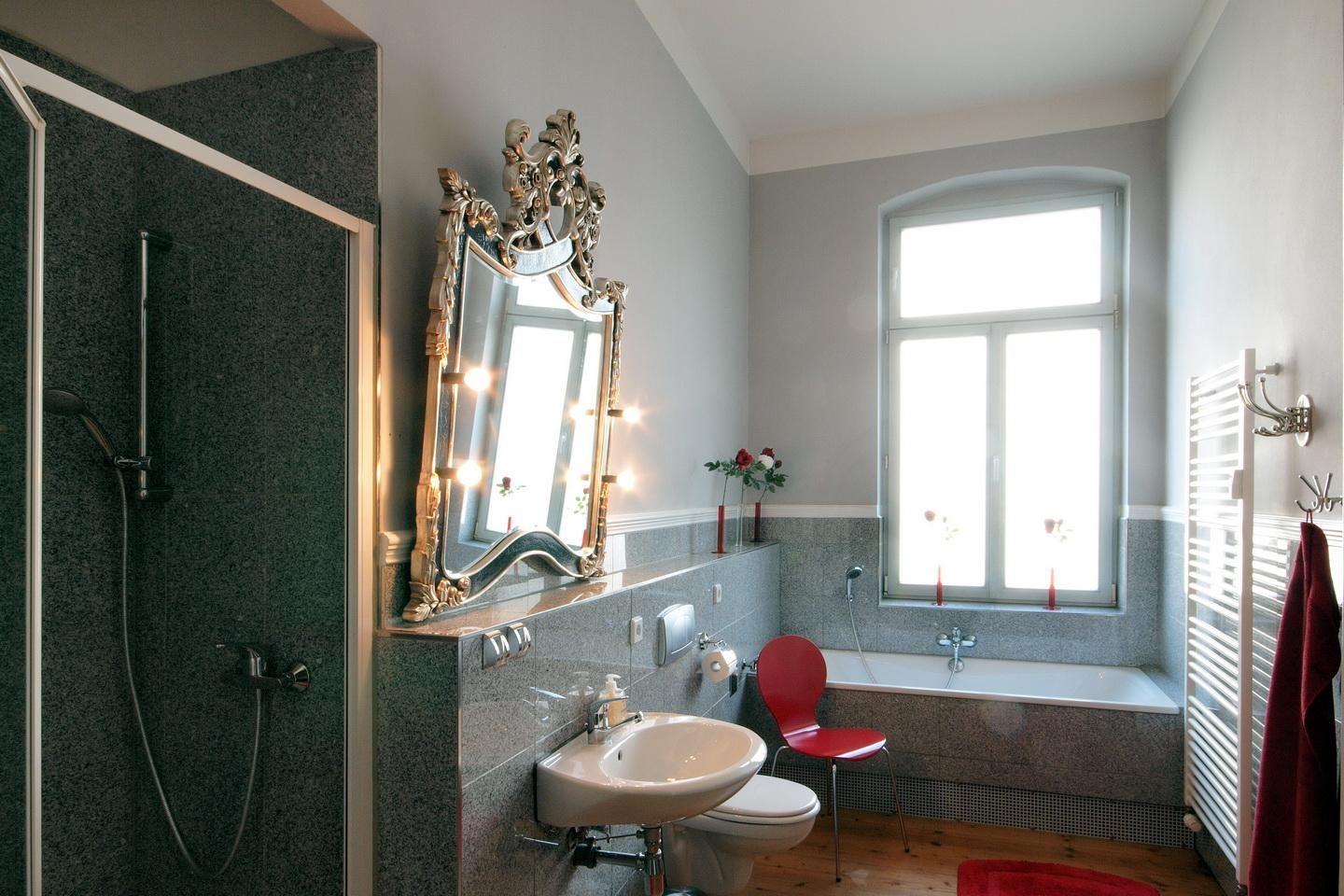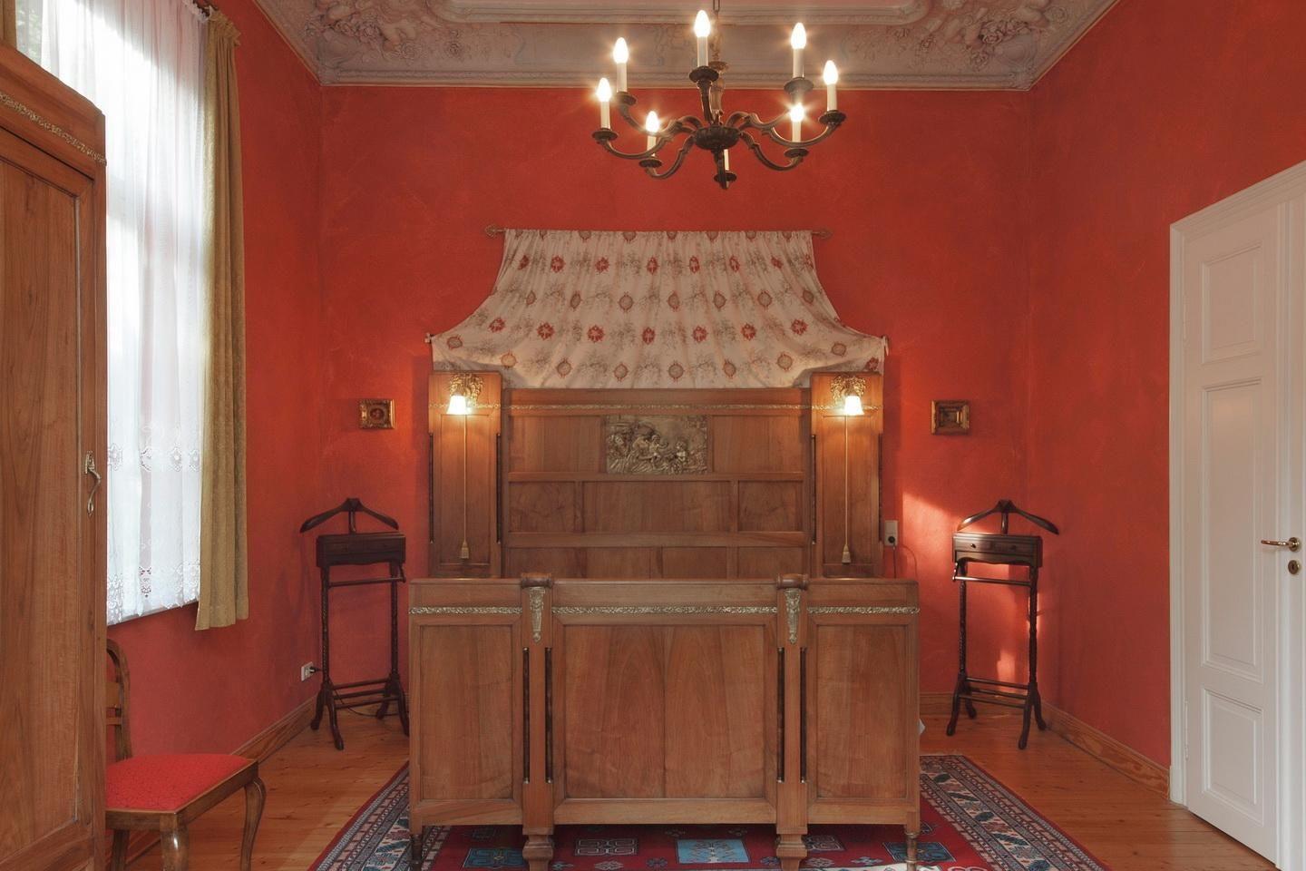 Große helle Räume, Stuck, eine riesige Terrasse nach Südwesten, das besonders prächtige rote Schlafzimmer und ein kleiner Raum mit zauberhafter Ausmalung - einst ein „Römisches Bad“. Die Wohnung Julius ist für sich schon sehenswert. Starten Sie von hier aus zu einem Besuch der Dresdner City. Liebevoll restauriert und mit moderner Technik ergänzt, lässt es sich in der Villa Haniel stilvoll und komfortabel wohnen.