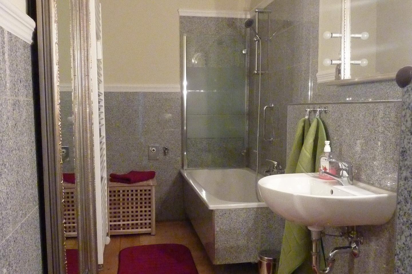 2-Raum Wohnung im OG, bis 4 Personen, ruhig und zentral nähe Hauptbahnhof gelegen. 1 Doppelbett im Schlafzimmer, 1 Doppelbettcouch im Wohnzimmer. Großer Wohnraum mit offener Küche, Essplatz und Balkon, Schlafraum mit Balkon, modernes Bad, TV, WiFi. Parkplätze und/oder Garagen können bei Bedarf gegen Gebühr mitgemietet werden. Zur gemeinschaftlichen Nutzung stehen den Gästen eine Fahrradgarage mit E-Bike-Ladestation, Waschmaschine und Trockenraum zur Verfügung. Auch der Garten lädt zum Verweilen ein.