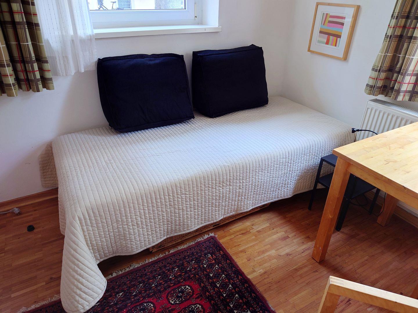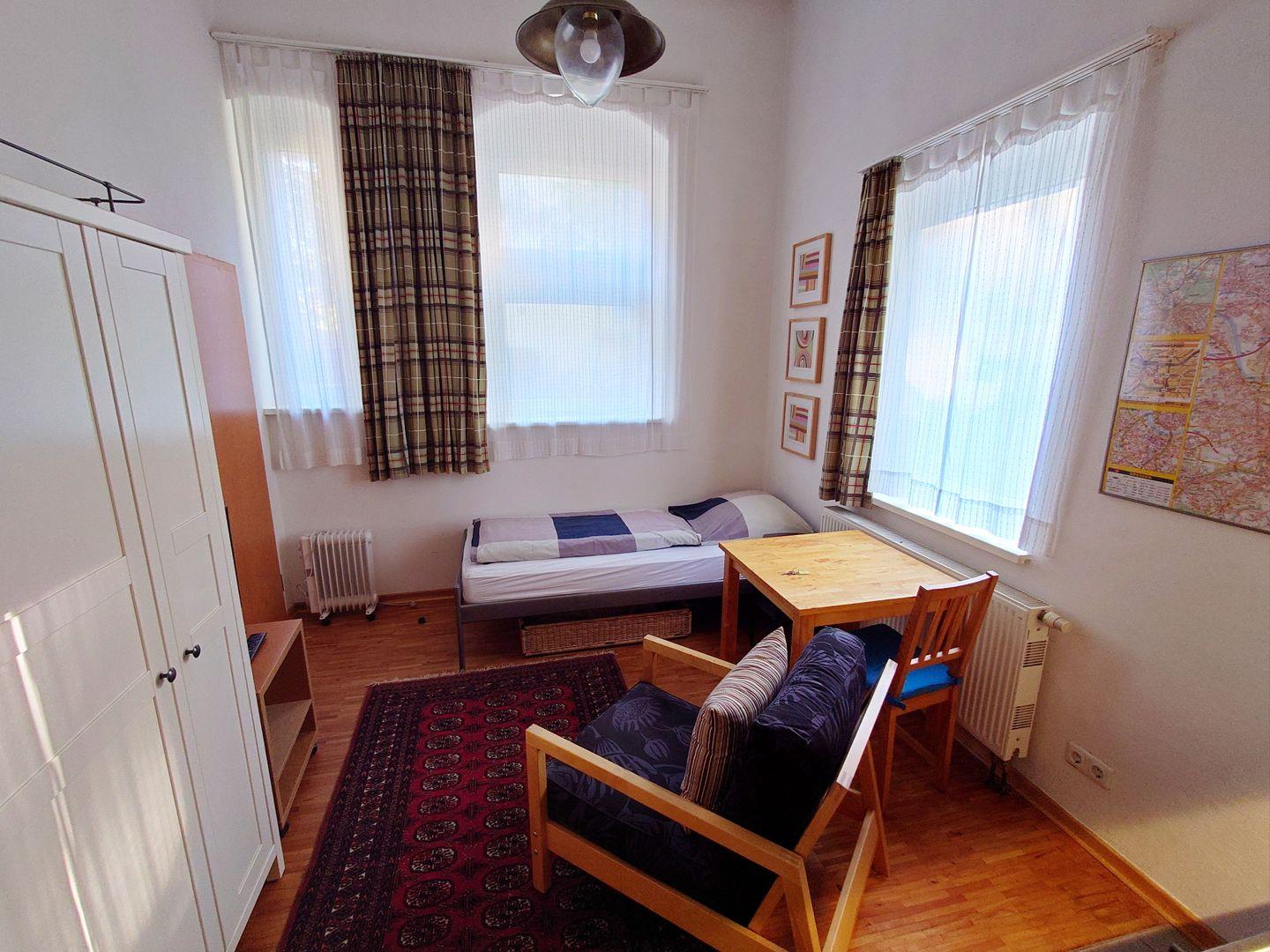 Das Minipartment im EG beherbergt auf kompaktem Raum alle Funktionen eines abgeschlossenen Apartments. 1-Raum Apartment für 1 Person, zentral im Unicampus gelegen. 1 Bett. Wohnraum mit Bett, Tisch, Stühlen, Schrank, Kompaktküche mit Herd, Kühlschrank, Kaffeemaschine, Mikrowelle usw… Dazu ein eigenes Duschbad mit Fenster, Waschtisch, WC, TV, WiFi. Parkplätze können bei Bedarf gegen Gebühr mitgemietet werden. Zur gemeinschaftlichen Nutzung stehen den Gästen eine gemütliche Terrasse mit Gartenmöbeln, Fahrradunterstellplatz und eine Waschmaschine zur Verfügung.