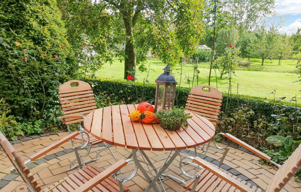 Dette to-etagers dobbelthus tilbyder masser af plads til kortspil, fælles måltider og private ophold for lidt fred og ro. I kan nyde denne rolige oase endnu mere, når I træder ud på terrassen og kigger ud over det store grønne område, hvor I også kan forsyne jer med frugt. Børnene kan boltre sig på den store græsplæne.