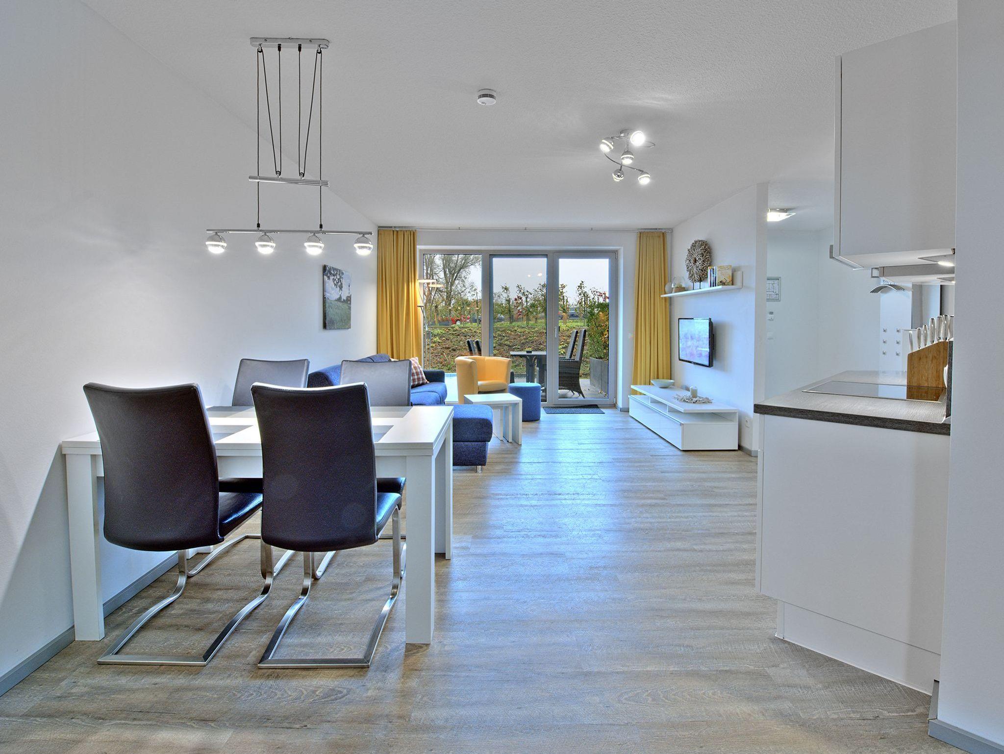 Die Appartements der Kategorie D1 R3 im Haus Lee verfügen über zwei separate Schlafzimmer, Wohn-, Koch- und Essbereich und einer sonnigen Südterrasse.