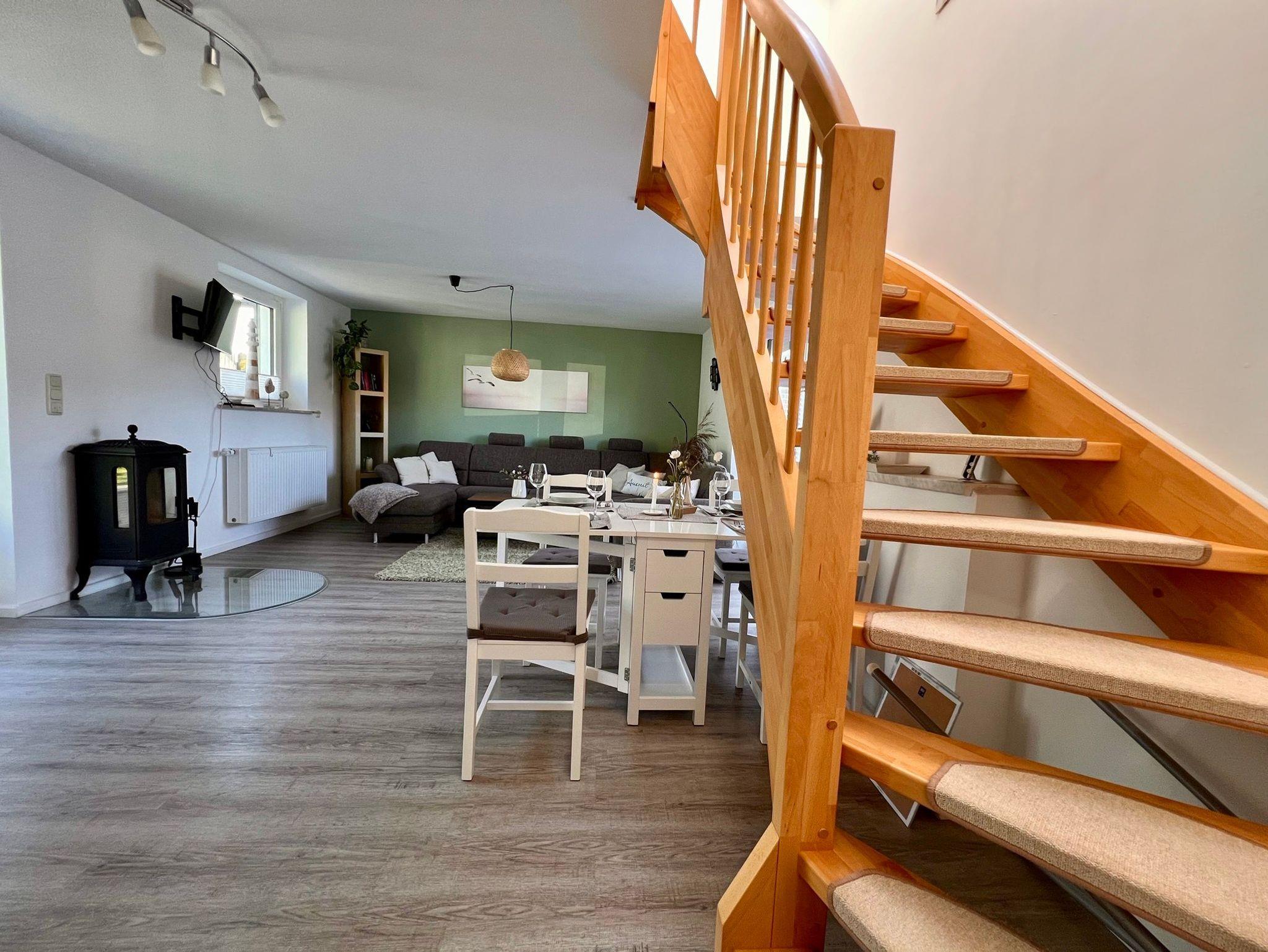 Gemütliche und helle Ferienwohnung, auf einer Größe von 70qm, in Norddeutschland mit 2 Schlafzimmern, ideal für 4 Urlauber. Die Schlafzimmer befinden sich im OG, 1 Doppelbett und 2 Einzelbetten ( zusammenschiebbar). EG mit Sofa mit Schlaffunktion, Essbereich und Wintergarten. Ebenfalls Bad mit Dusche und gut ausgestatteter Küche. Vom gemütlichen Wintergarten gelangt man in den herrlichen Garten mit angrenzenden Weiden und Blick auf den alten Elbdeich.