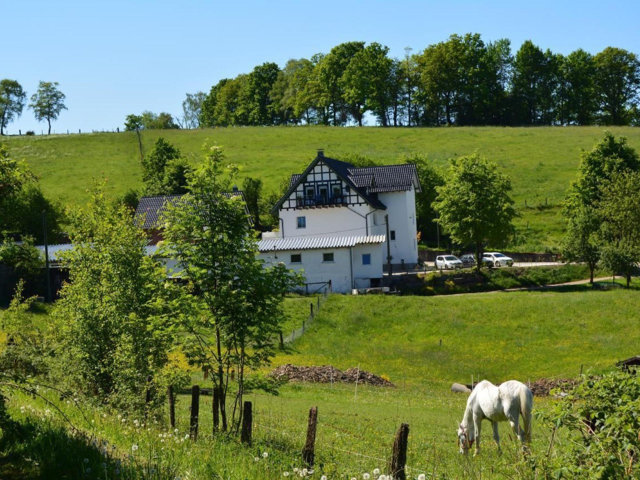 Our holiday apartment is located in the green in the beautiful village of Feldmannshof, a small suburb of Drolshagen and was built in spring 2017.It is located on the top floor (2nd floor) of a 3-family house and offers you peace and relaxation with a view into the green. Furthermore, it is an ideal starting point for hiking or cycling tours.The high quality of the apartment leaves nothing to be desired. It is suitable for families, couples, friends and fitters.For the younger guests there are a swinging system with slide and climbing frame, a sand box and some other toys available.Since the house adjoins some former farm buildings, we can offer the possibility to bring your own horses. There are two large light boxes available. Corresponding meadows to the pastures and spouts are in the immediate vicinity of the house. This is a great option for horse owners who would like to have their horse on holiday.Short descriptionOther : Non-smoking houseShort description 1Number of kitchens : 1Living room 1Other living room features : Blue Ray PlayerWii game consoleGame collection and booksBedroom 1Other bedroom furniture : DeskFlat screen TVWardrobeBathroom 1Other bathroom equipment : Washing machineKitchen 1Other kitchen equipment : Dish towelsHigh chair for childrenVarious spicesMixerSurroundingNearby sports facilities : Bike tours, Cross-country skiing, Diving, Horse stalls (guests), Ice skatingRental Facilities : Bicycle rental serviceSurrounding 1Location description : The beautiful village of Feldmannshof is a small suburb of Drolshagen with around 65 inhabitants. It is surrounded by nature and offers peace and quiet overlooking the countryside. All shops of the daily needs as well as the city center of Drolshagen can be reached within 5 minutes by car.Other leisure facilities : JoggingMiniature golfPaintballInline skatingIndoor swimming poolAdventure bathOutdoor swimming poolNordic WalkingGo by pedal-boatTheme parkCinemaBowlingKartingGeochachingBoat tripSwimmingGarden and outdoorGarden facilities : Garden furniture provided, Grill, Playground equipment, SandboxOn-site leisure facilities : PlaygroundService benefitsService facilities (may incur additional costs) : Drinks service, Shopping service before arrival, Transfer service (airport etc)