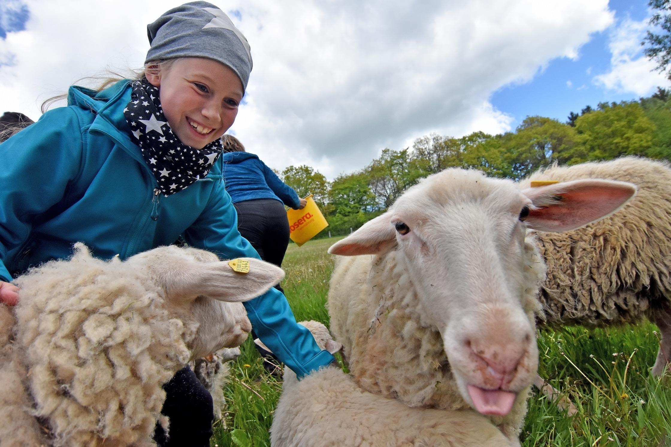 Im Schaustall kann man seltene Haus- und Nutztierrassen aus der Nähe betrachten und auf den Streuobstwiesen laden die Äpfel und Birnen, aus denen unsere leckeren Säfte hergestellt werden, zum Probieren ein.
