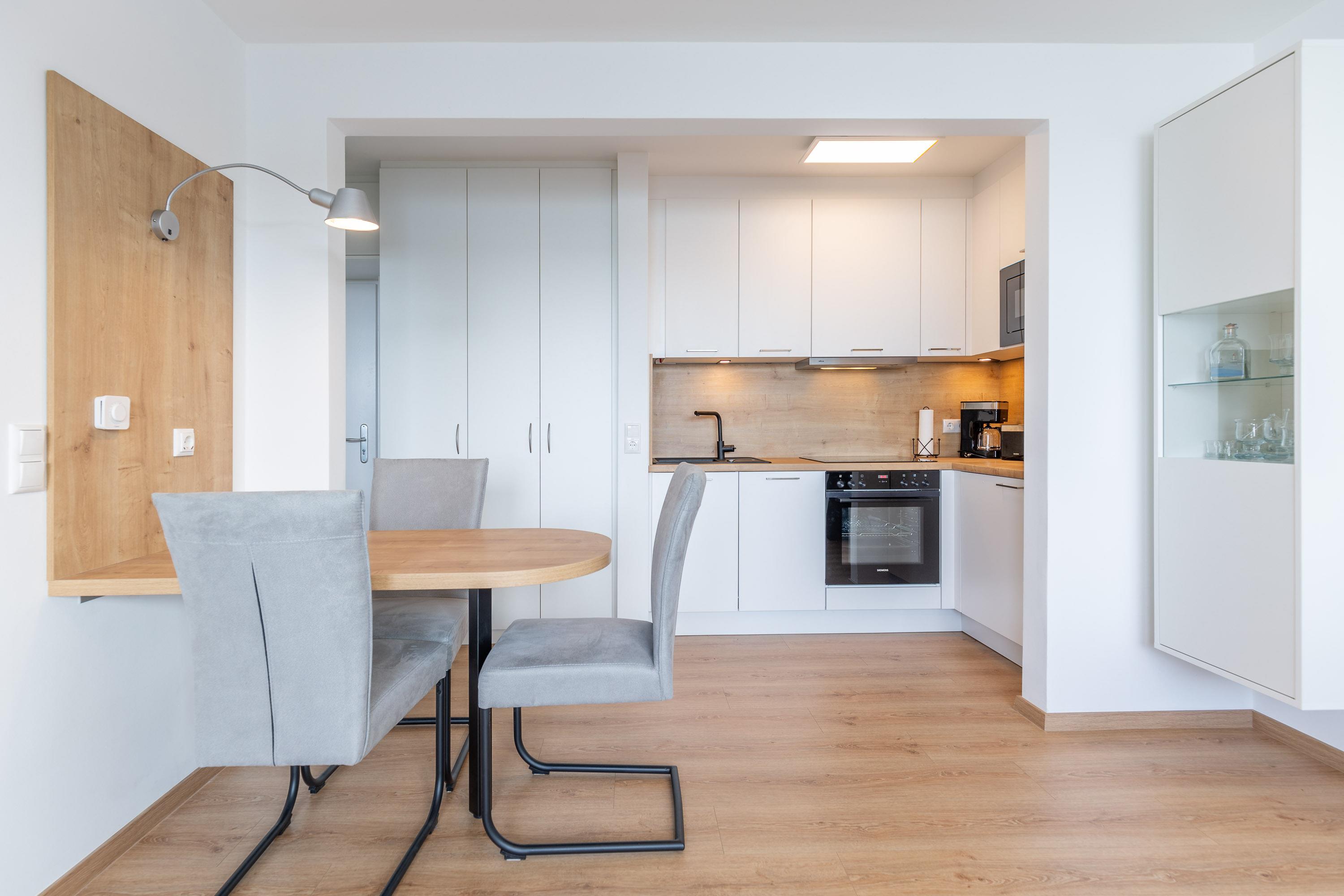 Selbstverständlich bietet auch der großzügige Balkon einen faszinierenden Meerblick. Ferienwohnung Seehütte 418 ist mit einem modernen Bad ausgestattet. Zur Wohnung gehört ein KFZ-Außenstellplatz. Dank der tollen Lage direkt am Sandstrand, ist das Haus Seehütte der optimale Standort für einen erholsamen Strandurlaub. Spazier- und Radwege beginnen direkt vor der Haustür.