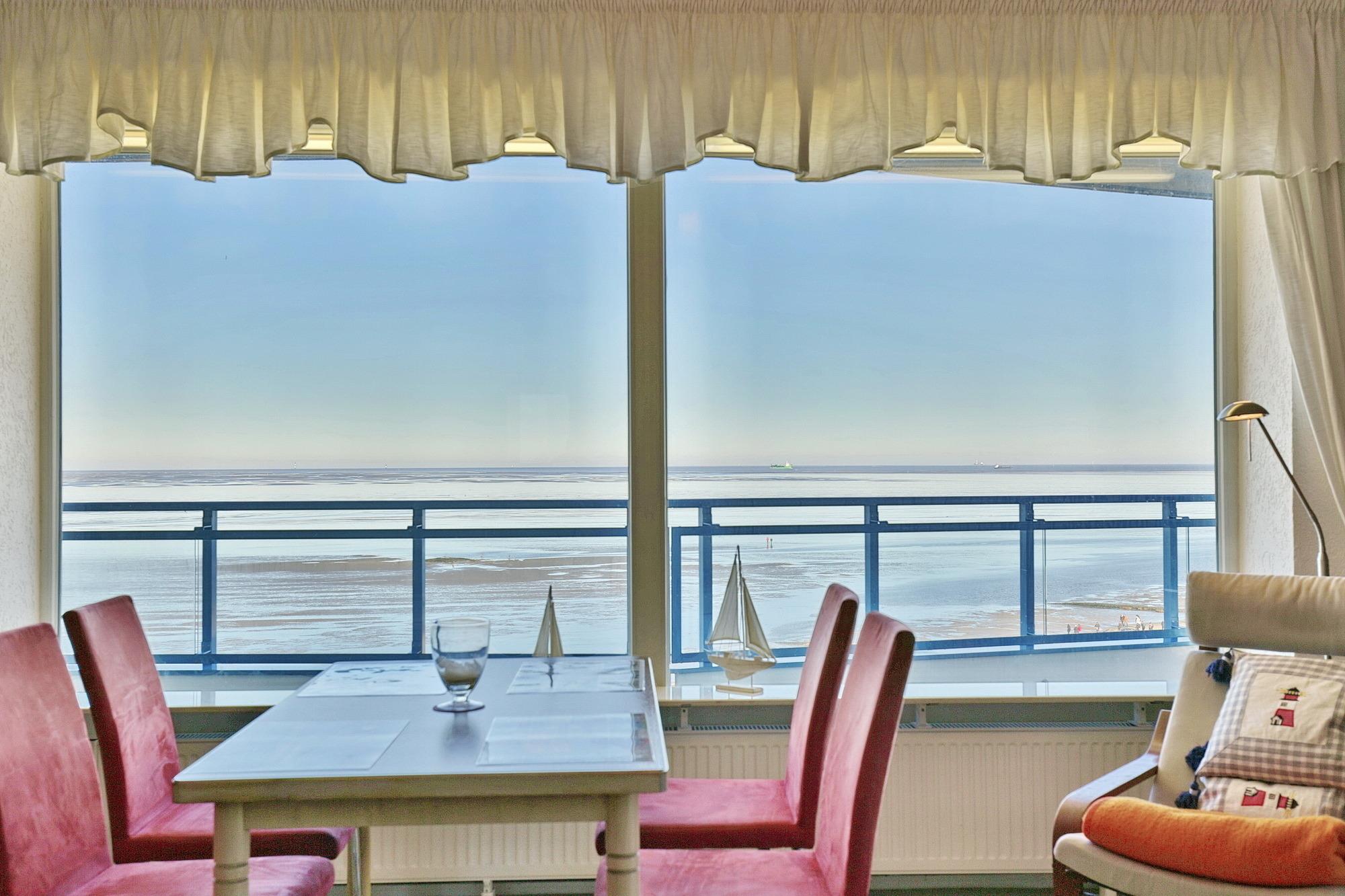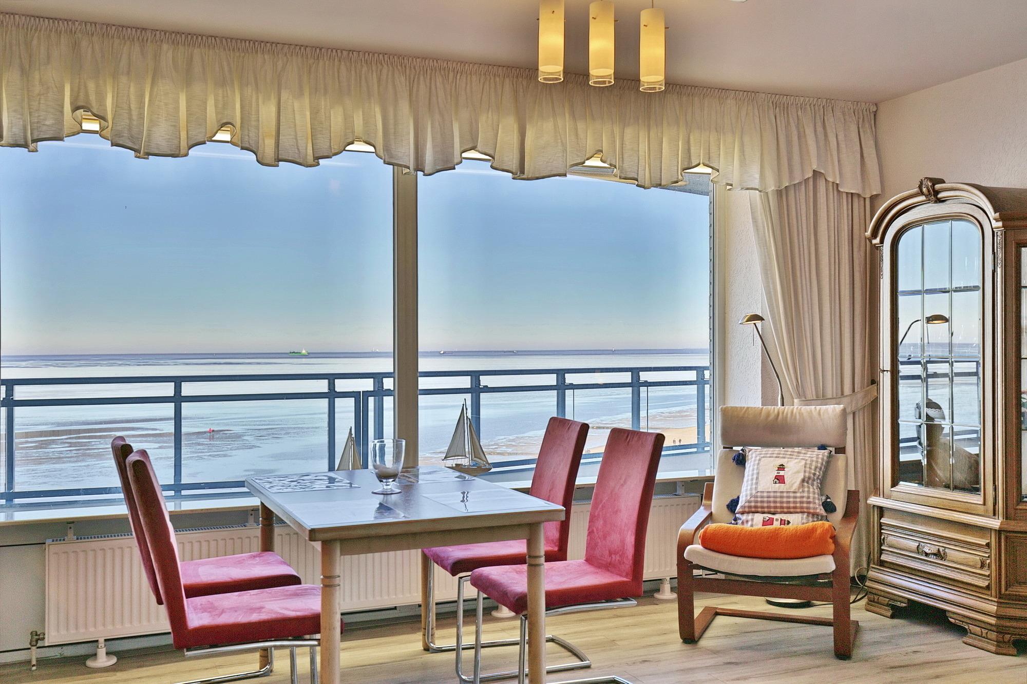 Die 2-Zimmer Ferienwohnung ist der optimale Logenplatz für 2 Personen. Egal ob Sie am Esstisch oder auf dem Sofa sitzen, immer genießen Sie den atemberaubenden Blick auf Nordsee, Wattenmeer und Insel Neuwerk. Am Abend können Sie bei einem Glas Wein traumhafte Sonnenuntergänge beobachten und einen erlebnisreichen Tag ausklingen lassen.