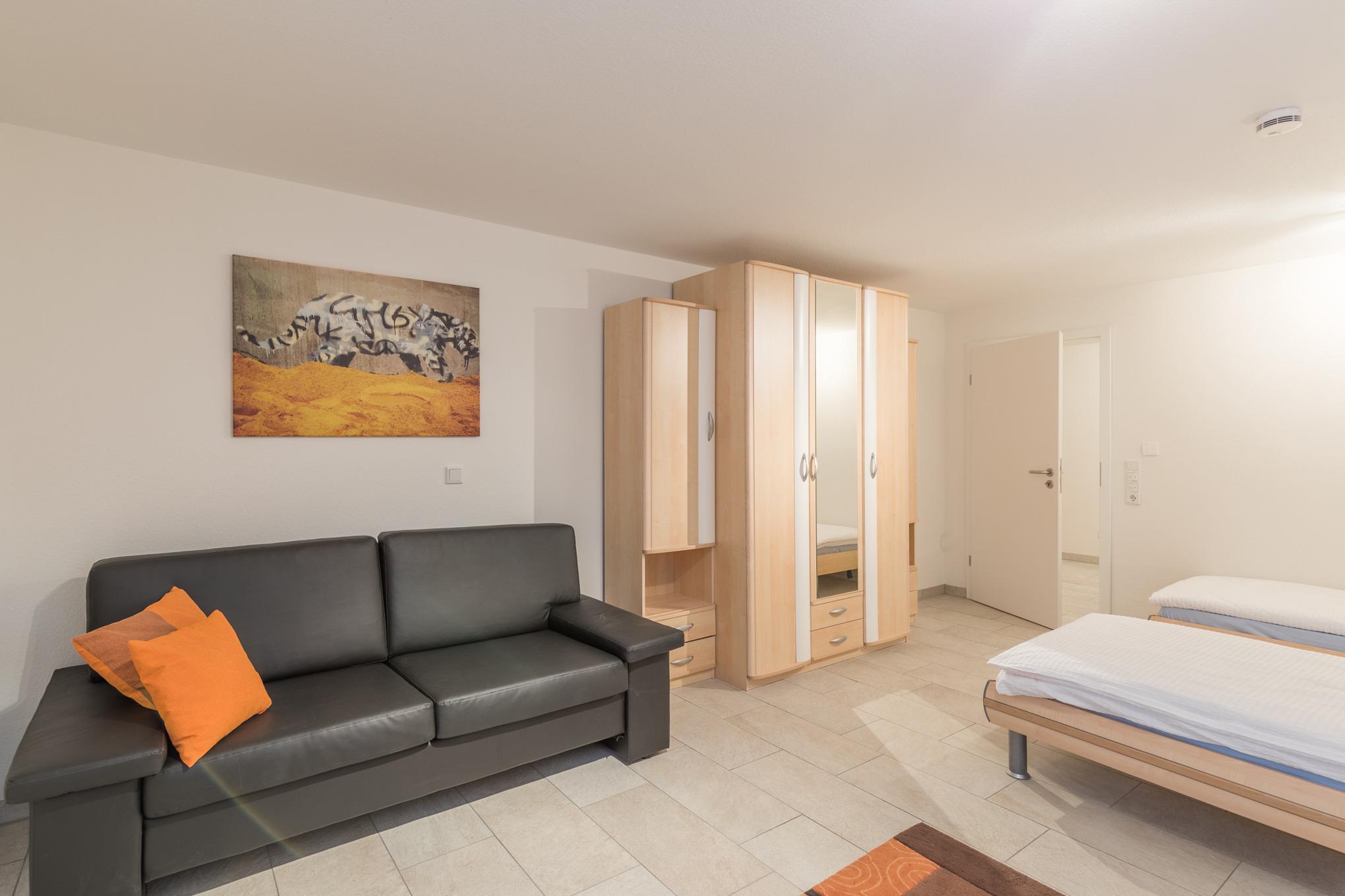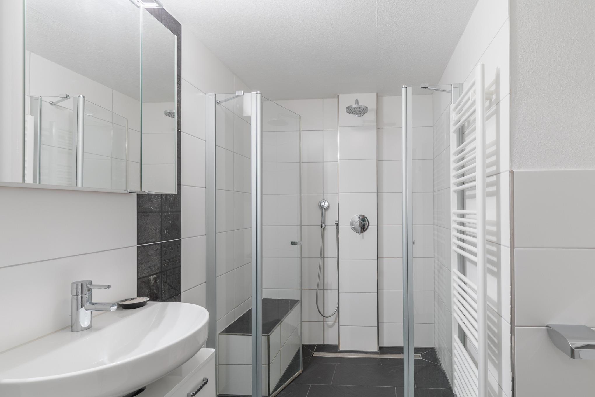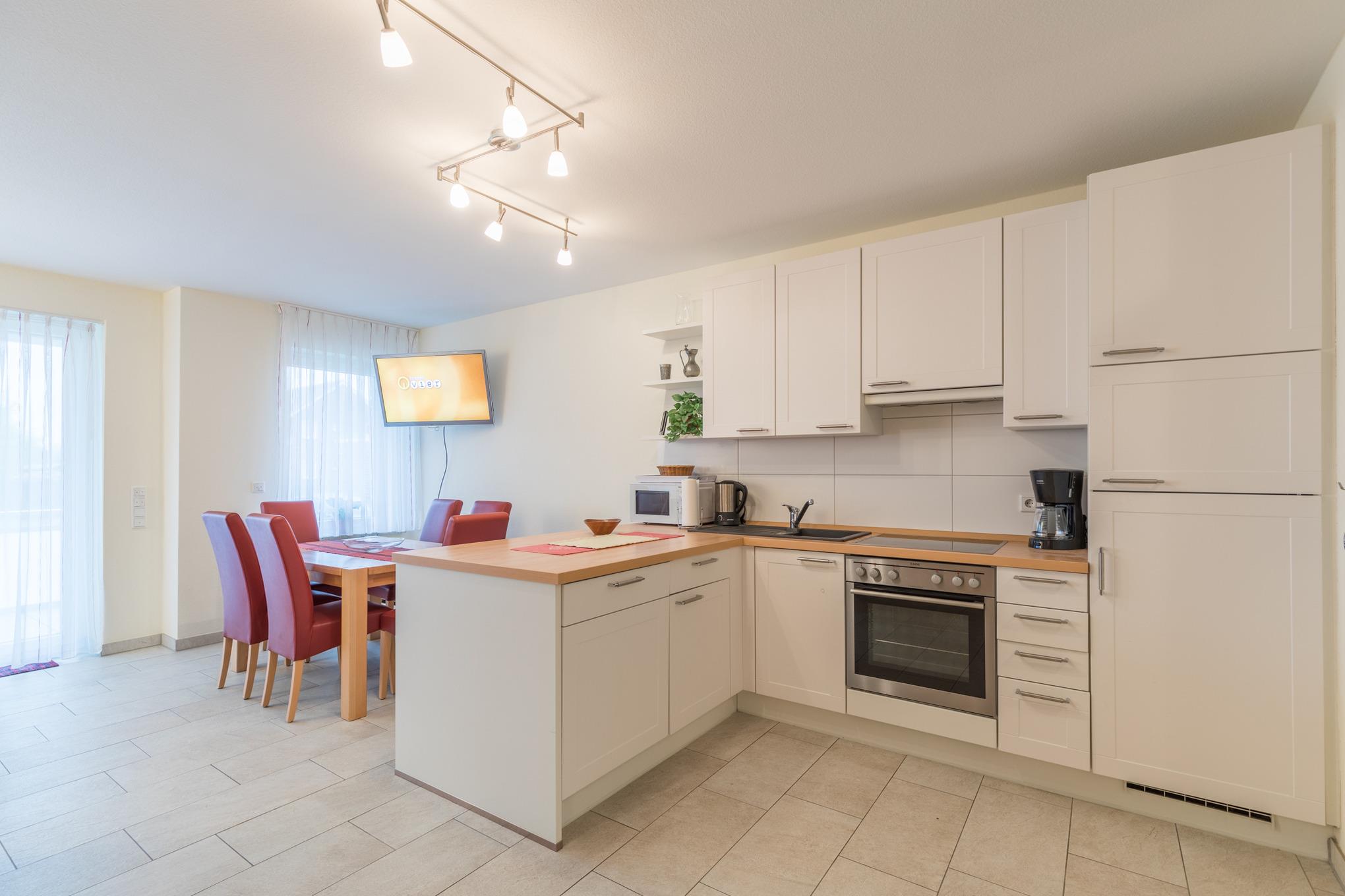 Die modern eingerichtete 3-Raum-Wohnung befindet sich im Erdgeschoss. Das Erdgeschoss wurde in ca. 1,50 angelegt, als Hochparterre. Mit ca. 85 m² Wohnfläche, ist die Wohnung komplett für bis zu 5 Personen ausgestattet, die Schlafzimmer befinden sich im Untergeschoss, dadurch haben Sie an heißen Tagen ein angenehmes Raumklima. Schlafzimmer 1 mit Doppelbett und Kleiderschrank, Schlafzimmer 2 mit 2 Einzelbetten, großzügiges Wohnzimmer mit Einbauküche (Geschirrspüler, Ceranfeld, Backofen, Mikrowelle, Kühlschrank mit Gefrierfach, Toaster, Wasserkocher und Kaffeemaschine), Essplatz,[nbsp][nbsp]gemütliches Sofa, Flatscreen TV, 1 Schrankbett (das elektrisch ausgefahren werden kann) und Zugang zum herrlichen Süd Balkon. Ein Gäste WC mit Dusche befindet sich im Erdgeschoss, im Untergeschoss befindet sich noch ein Badezimmer mit Dusche und WC.