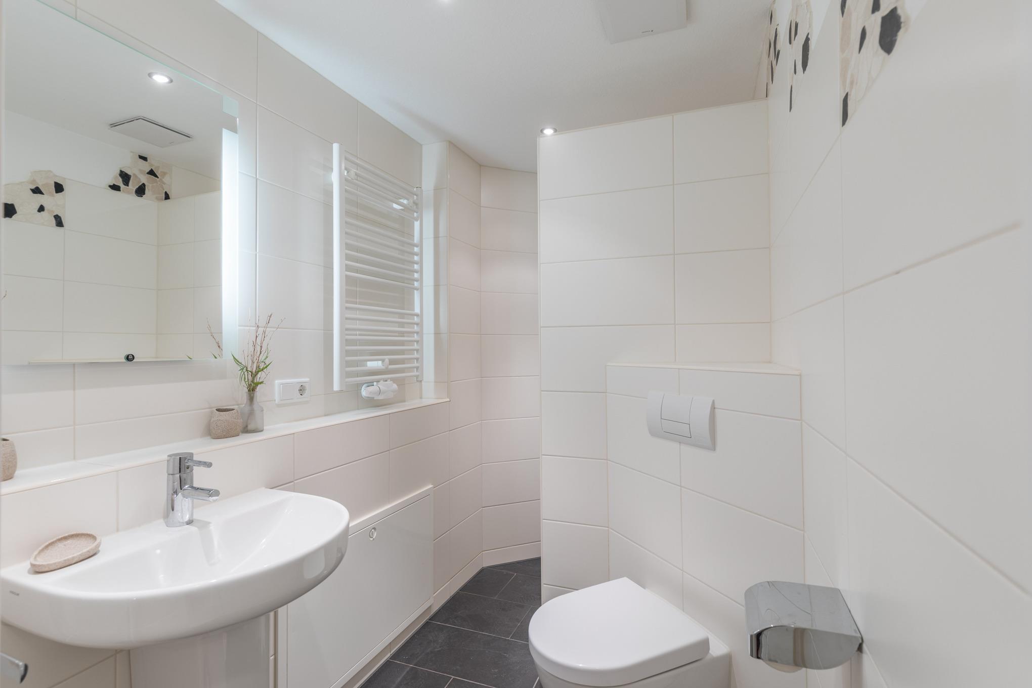 Alle Räume können mit elektrischen Rollläden verdunkelt werden. Eine Waschmaschine befindet sich in der Wohnung. Im Treppenhaus kann ein Plattformlift durch die Gäste genutzt werden. Kostenloser PKW-Stellplatz am Haus. Genießen Sie die Leichtigkeit und Weitläufigkeit unserer Ferienhäuser und die Wohlfühlatmosphäre an der Nordsee.
