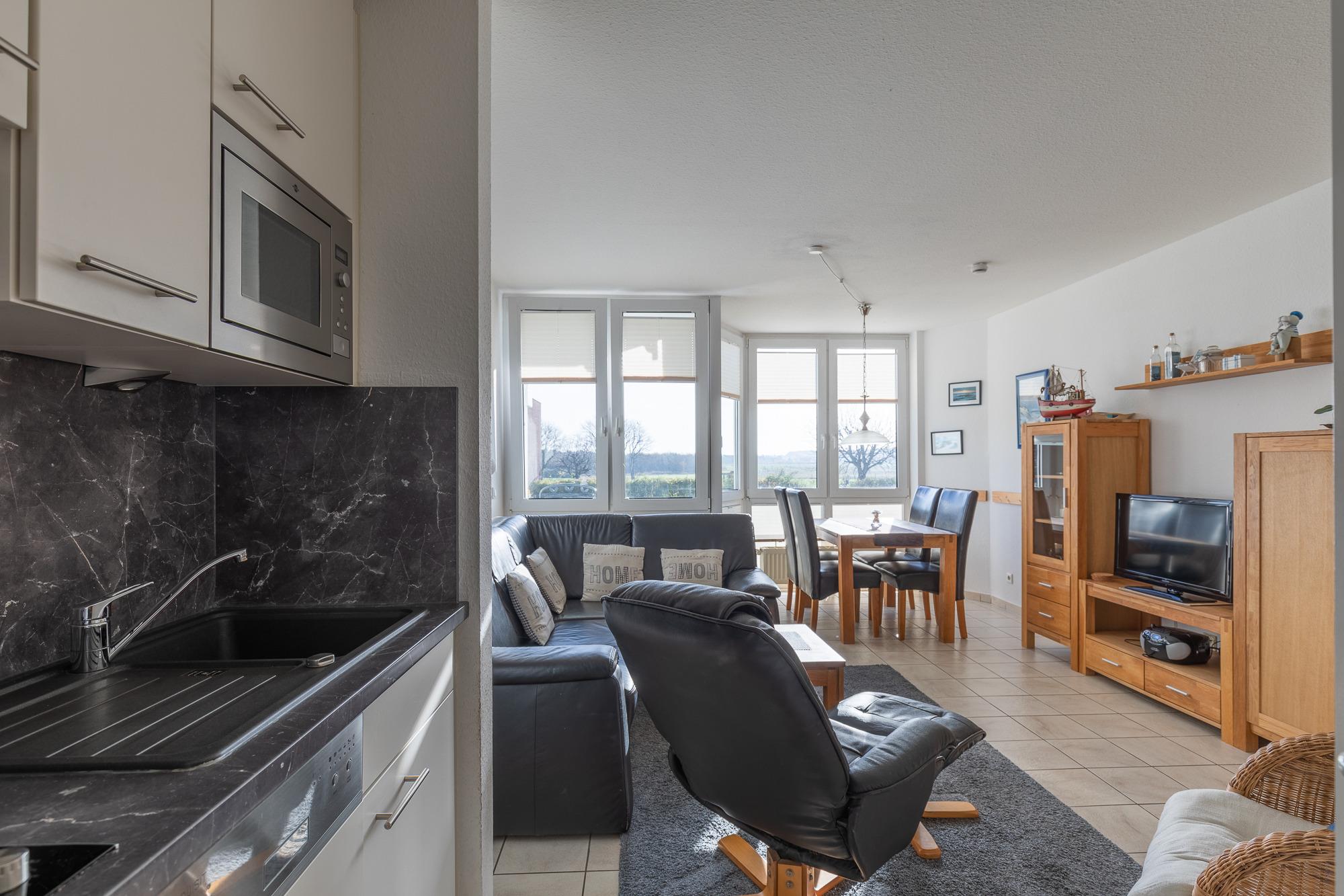 Die Wohnung 412 befindet sich in einer kinderfreundlichen Ferienanlage. In nur 800 Metern erreichen Sie die Nordsee mit dem Sandstrand, die Promenade, diverse Restaurants, Einkaufsmöglichkeiten, die Duhner Heide und Wanderwege.