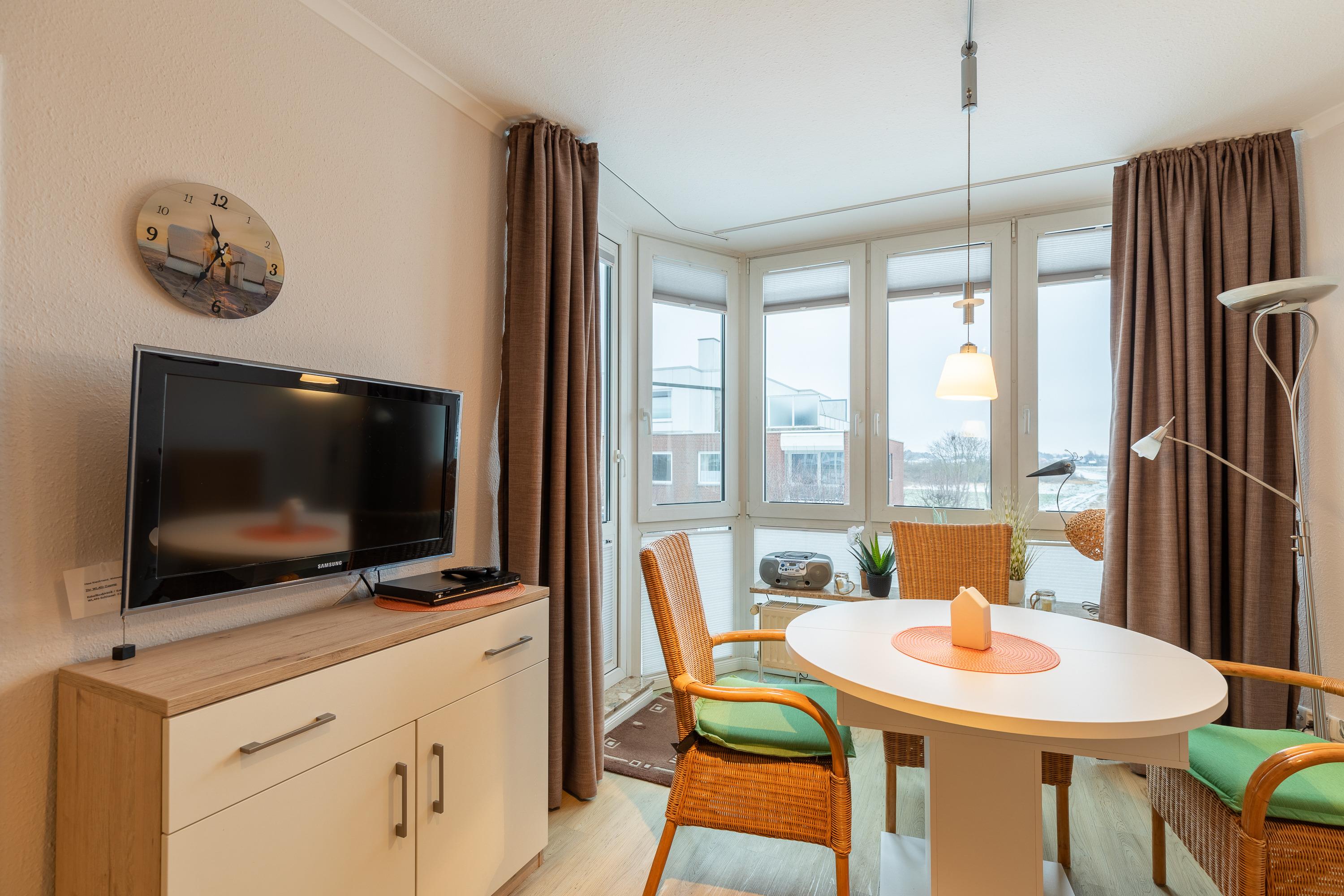Ein Kinderhochstuhl steht Ihnen in diesem Haus kostenlos zur Verfügung. Ihnen steht ein kostenfreier WLAN-Zugang zur Verfügung. Die Räume sind mit Fliegenschutzgitter ausgestattet. Neben Gesellschaftsspielen finden Sie auch eine Radwanderkarte in der Wohnung. Am Strand können Sie von April bis ca. Oktober eine kostenlosen Strandkorb nutzen. Die Ferienanlage verfügt über ein Schwimmbad (kostenlos nutzbar), eine Finnische Sauna und eine Dampfsauna (jeweils gegen Gebühr). Im Haus Knechtsand stehen Ihnen Waschmaschine und Trockner jeweils gegen Gebühr zur Verfügung. Genießen Sie die Leichtigkeit und Weitläufigkeit unserer Ferienwohnungen und die Wohlfühlatmosphäre an der Nordsee.