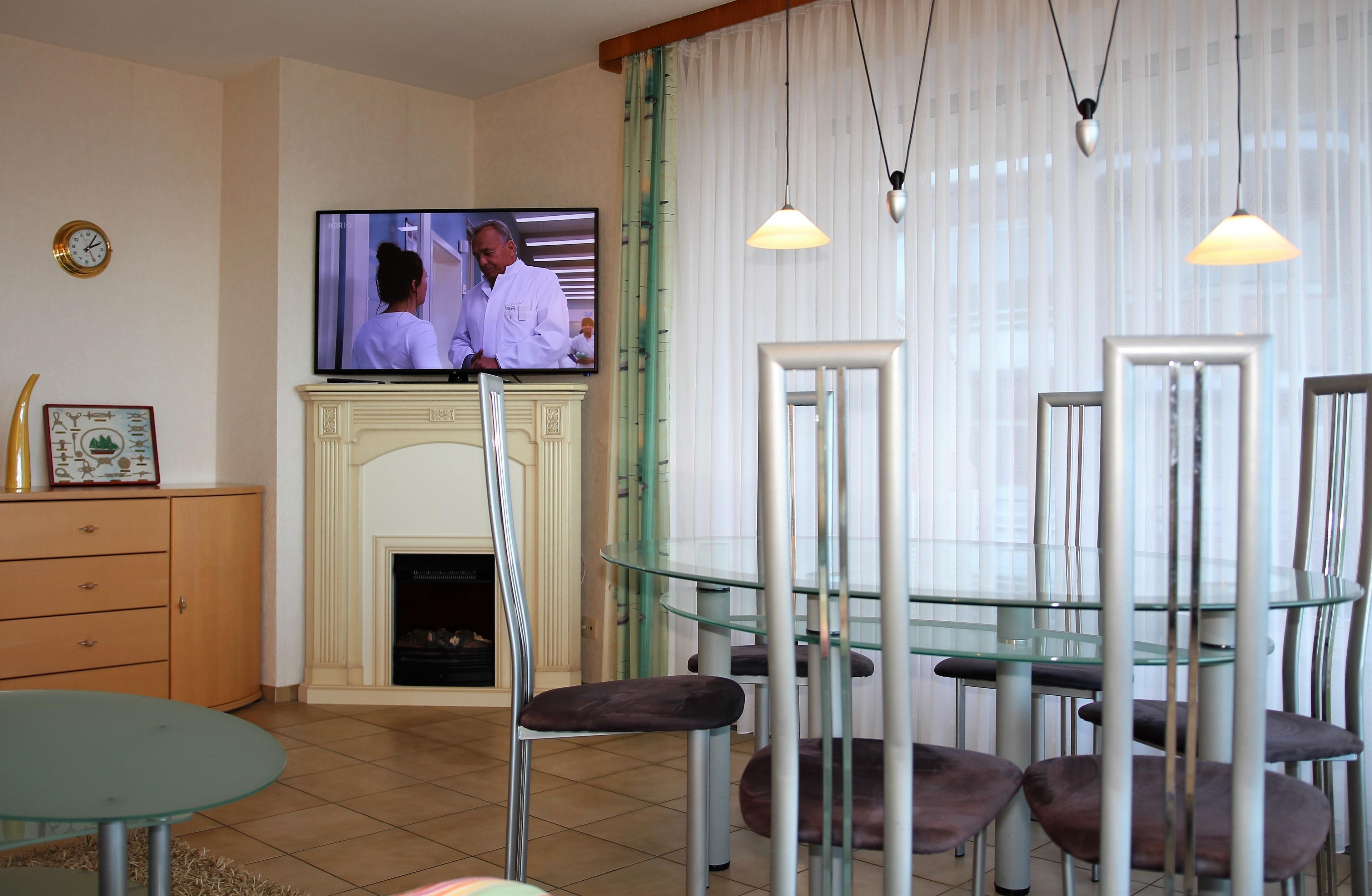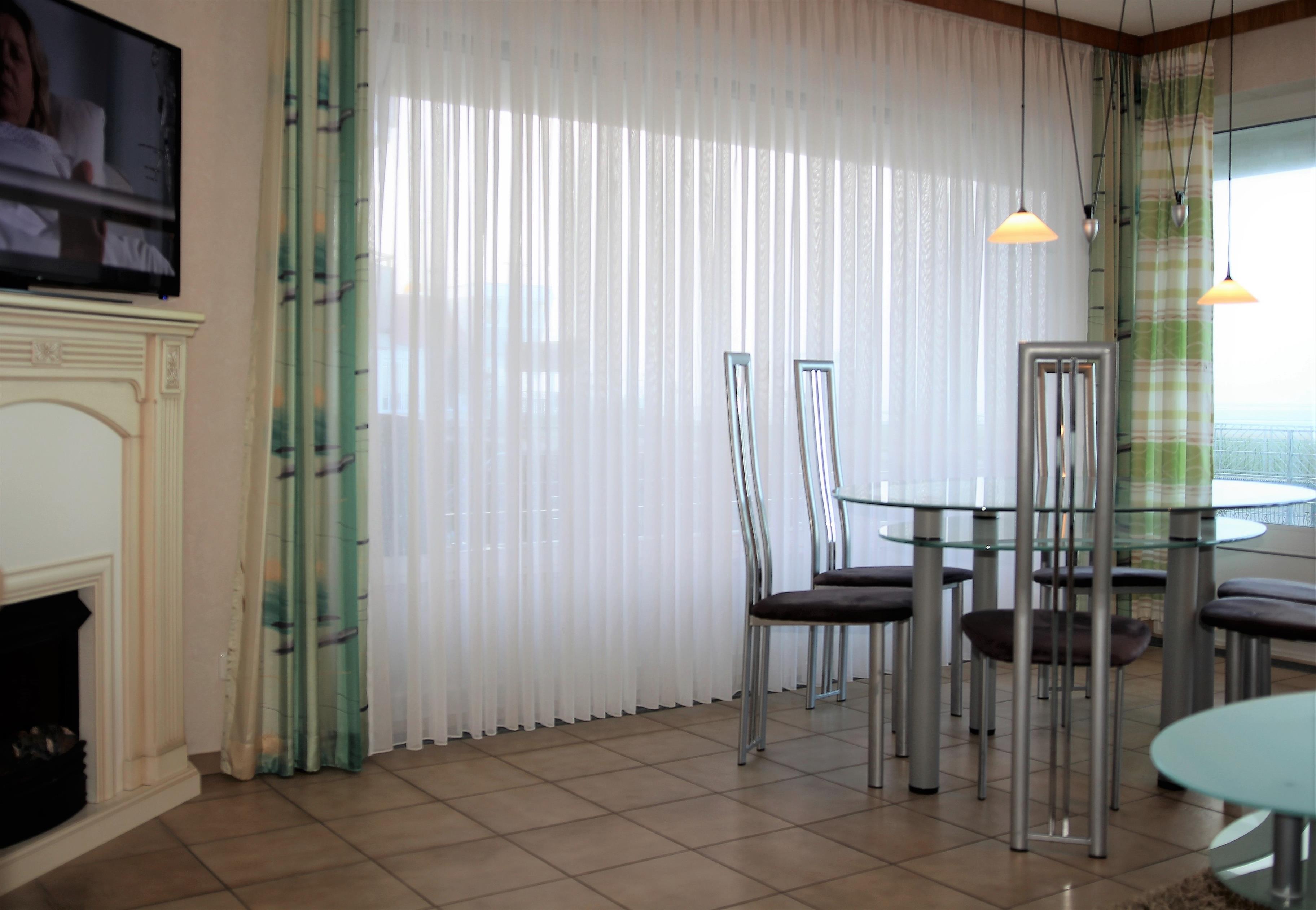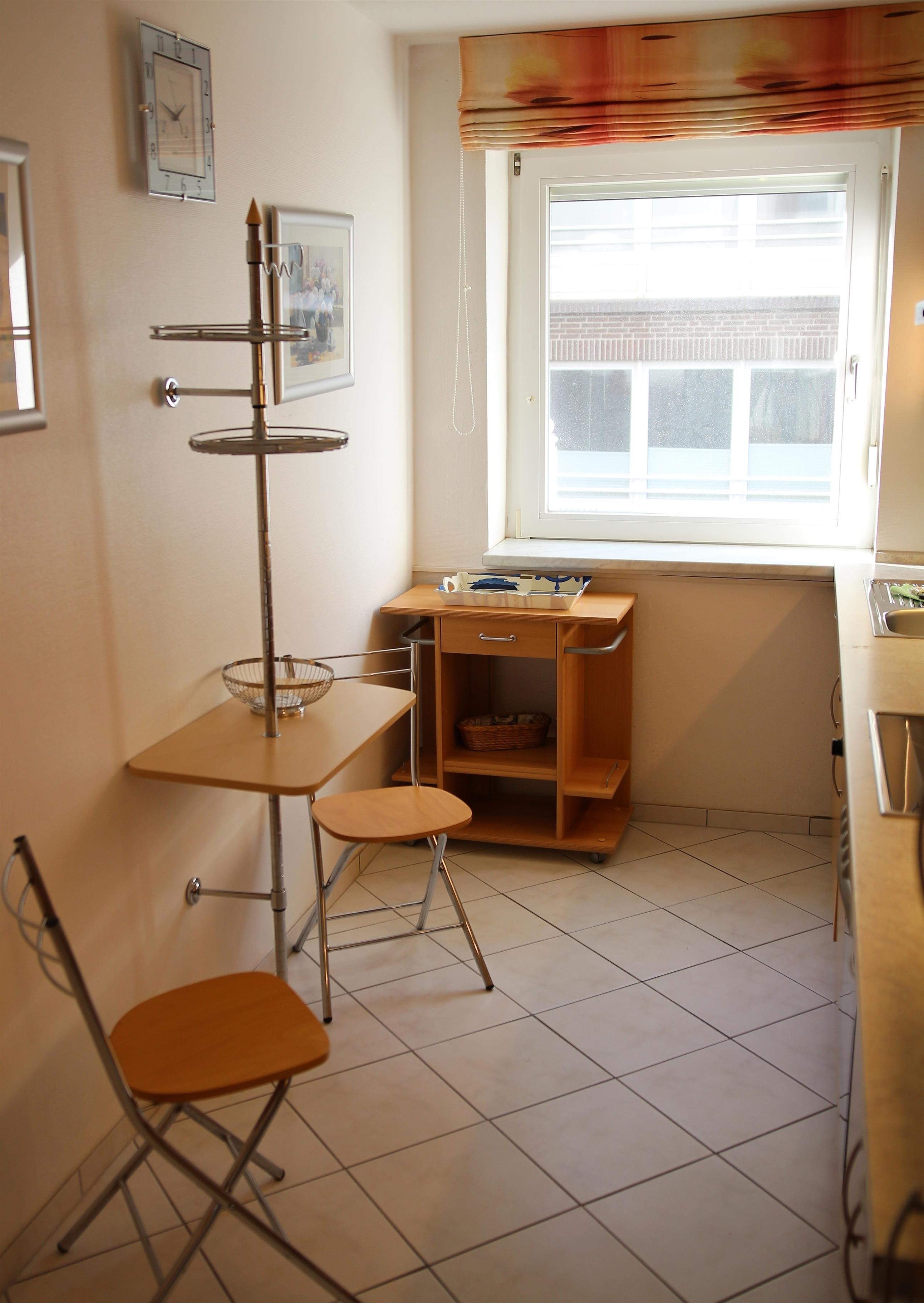 Die 3 Raum Ferienwohnung mit einer Größe von ca. 75 m² Wohnfläche ist komplett bis zu 4 Personen ausgestattet. 1 Schlafzimmer mit einem Doppelbett, Wohnzimmer mit Zugang zum Balkon (vom Wohnzimmer und Balkon aus können Sie teilweise/eingeschränkt auf die Nordsee blicken), Sofa (das auch als Schlafsofa genutzt werden kann), Esstisch, 1 Flatscreen TV, Einbauküche (Backofen, 4 Plattenherd, Wasserkocher, Toaster, Kaffeemaschine), 1xDusche mit WC, Waschmaschine und Trockner (jeweils kostenpflichtig mit Münzautomat), Nichtraucherwohnung, keine Haustiere, PKW Stellplatz direkt am Haus.