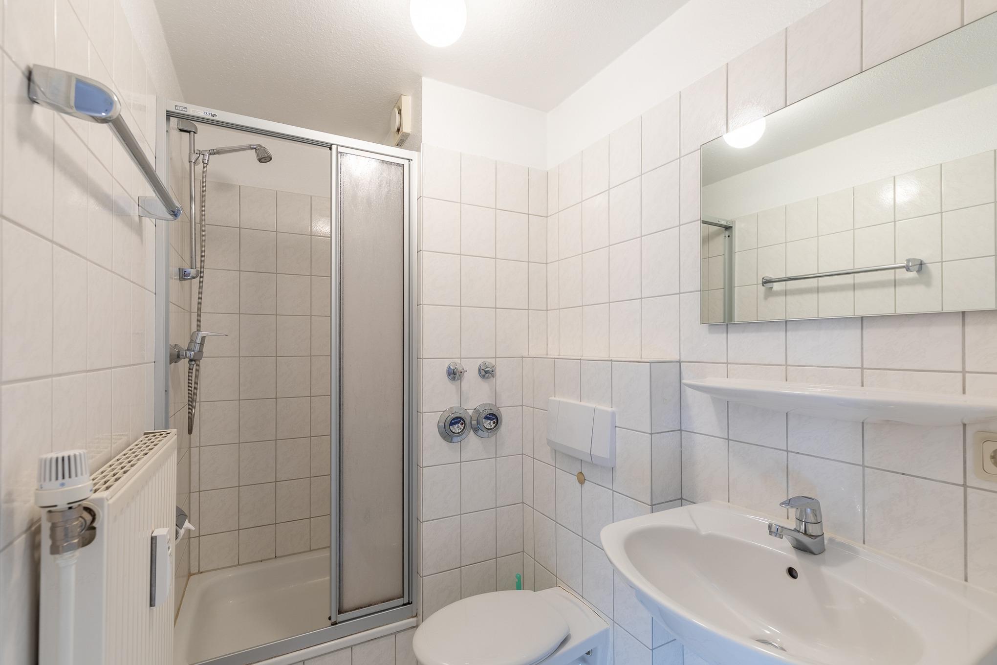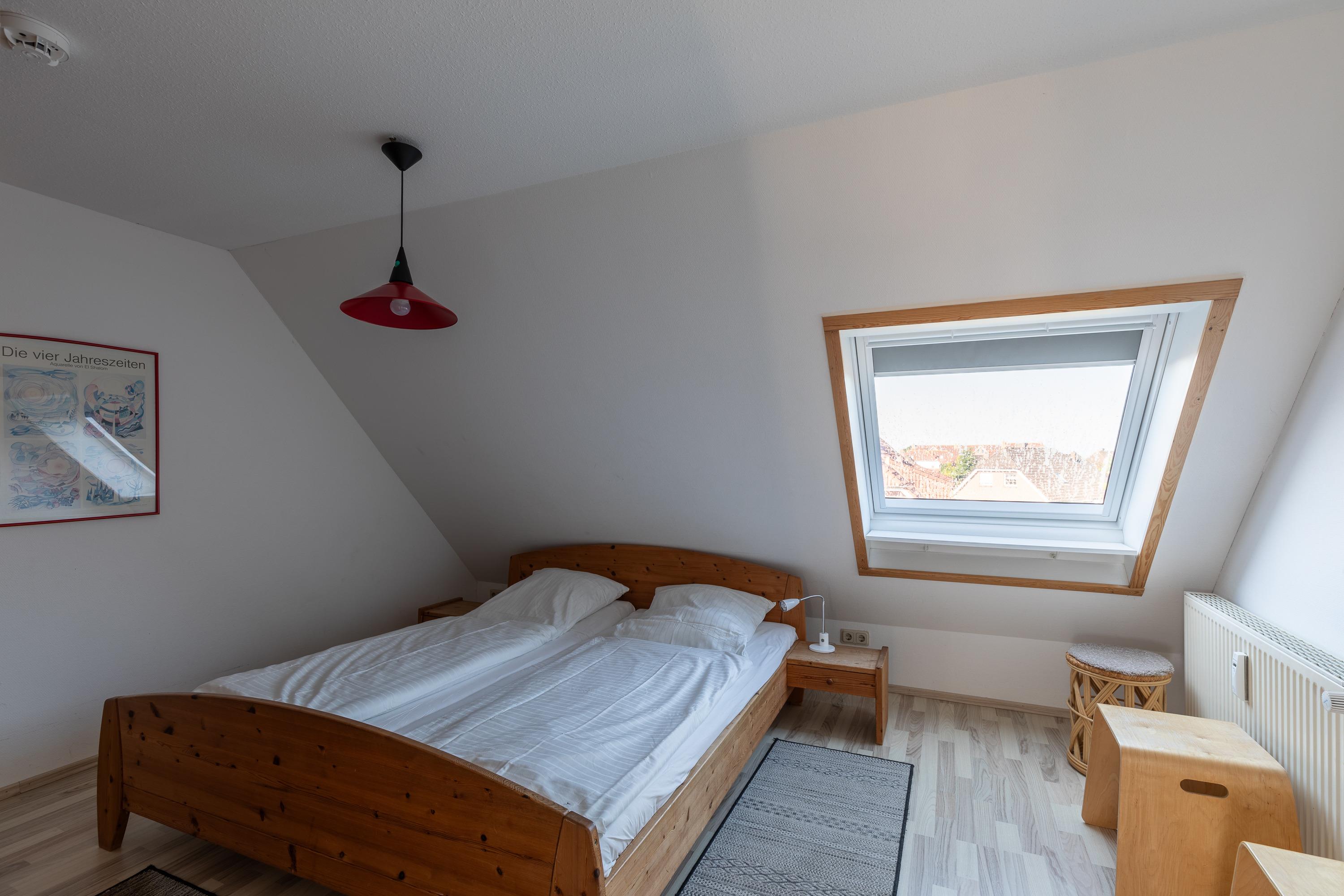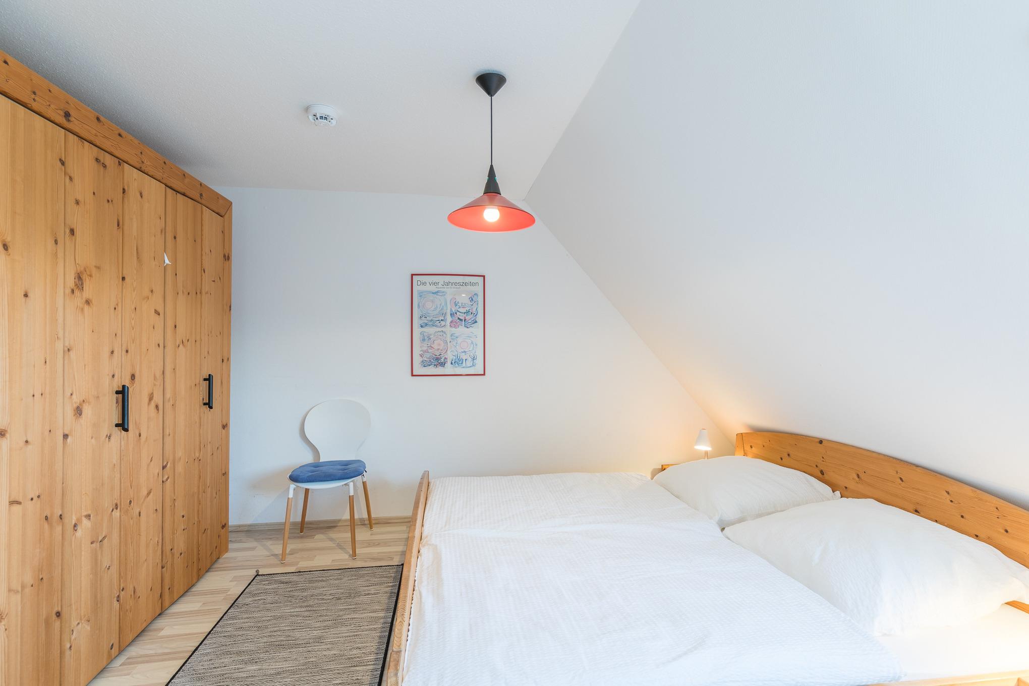 Die 4 Zimmer Studiowohnung (1. Obergeschoss) ca. 76m² ist für bis zu 5 Personen ausgestattet, helles großes Wohnzimmer mit Sofa, Flatscreen TV, Essplatz mit 5 Stühlen und Zugang zum Süd Balkon (mit Gartenmöbel), Küchenzeile (Backofen, 4 - Plattenherd, Mikrowelle, Kühlschrank, Kaffeemaschine, Wasserkocher, Toaster), 2 Bäder mit jeweils Dusche und WC, großer Flur mit Treppe in das Dachgeschoss, 1 Schlafzimmer mit Doppelbett (140x200) im 1. Obergeschoss, folgende Schlafzimmer befinden sich im Dachgeschoss: 1 Schlafzimmer mit Einzelbett (90x200), 1 Schlafzimmer mit Doppelbett (2 Matratzen mit 90x200), PKW-Stellplatz am Haus, Nichtraucher, es sind keine Tiere erlaubt.