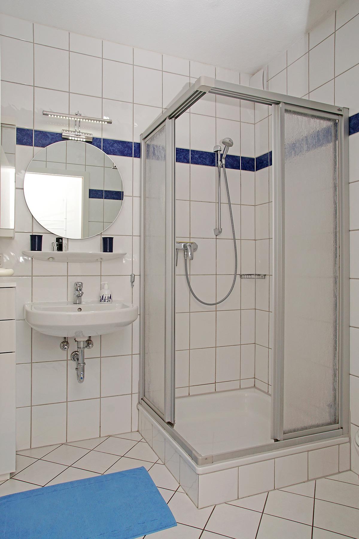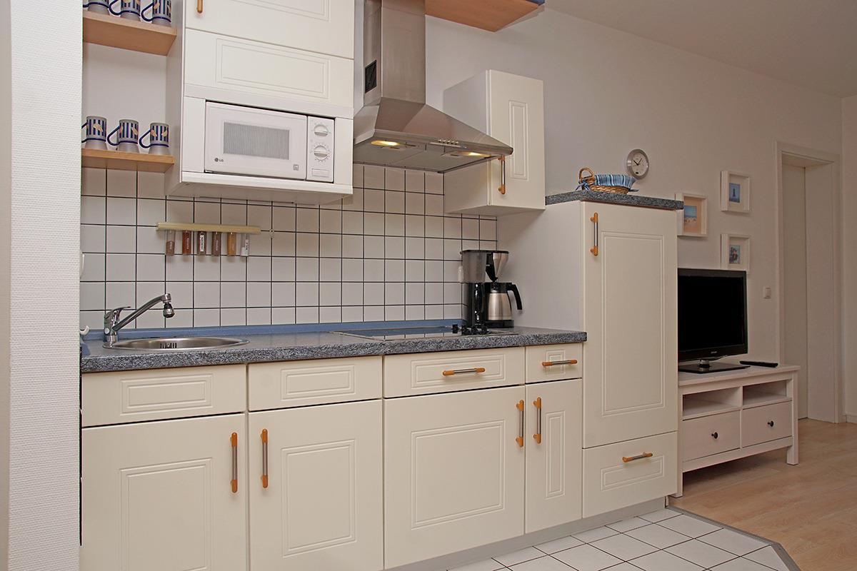 Die modern hell eingerichtete Wohnung mit einer Größe von ca. 50 m² Wohnfläche ist komplett bis zu 4 Personen ausgestattet. 1 Schlafzimmer mit Doppelbett, großes Wohnzimmer mit Einbauküche (Cerankochfeld, Mikrowelle, Kühlschrank mit Gefrierfach), Essplatz, Sofa-Ecke (als Schlafsofa nutzbar) und direktem Zugang zur Terrasse, 1xDusche mit WC und Fön, 1 Flatscreen TV (Wohnzimmer), Abstellraum, Flur, Nichtraucherwohnung, keine Haustiere, PKW-Stellplatz direkt am Haus.