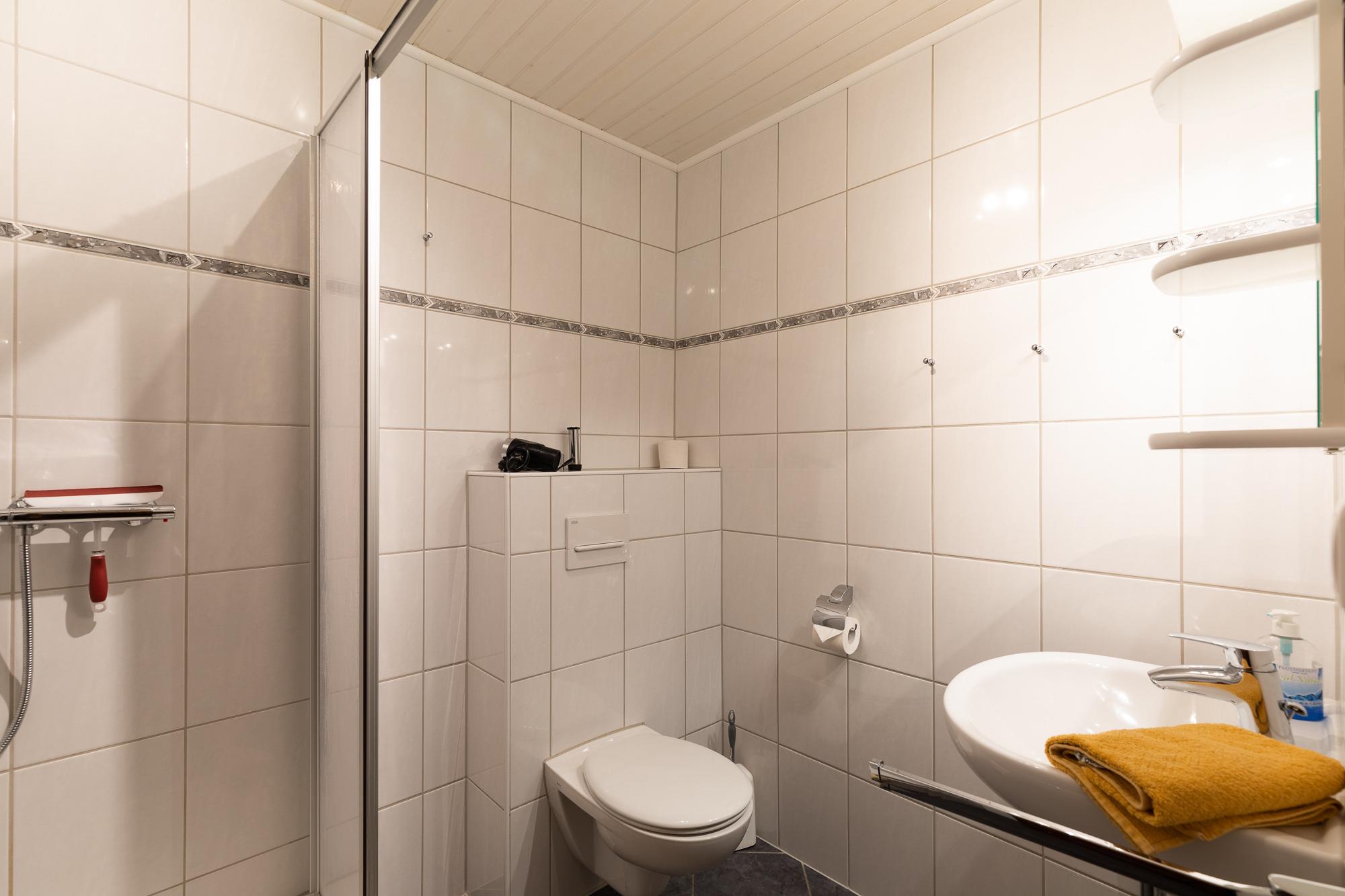 Die 3 Raum Ferienwohnung (befindet sich im 1. OG) mit einer Größe von ca. 58 m² Wohnfläche ist komplett bis zu 4 Personen (1 Zustellbett ist möglich) ausgestattet.