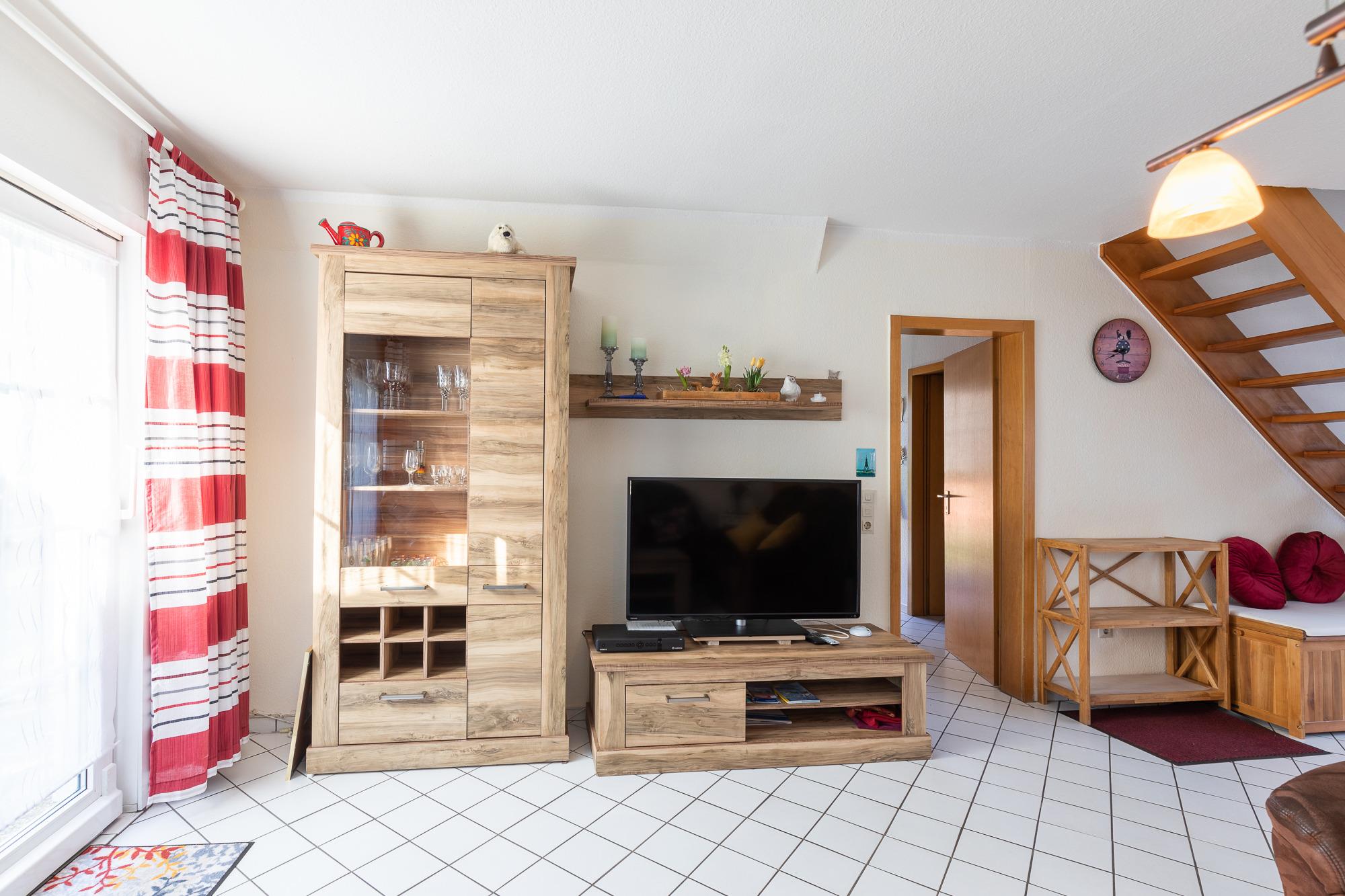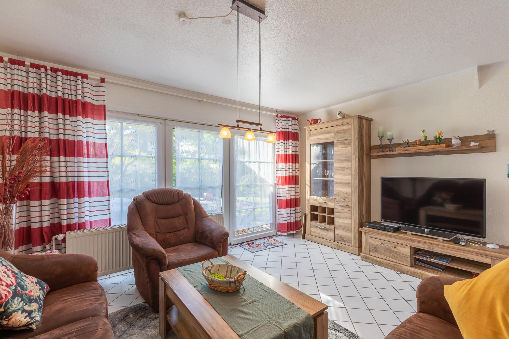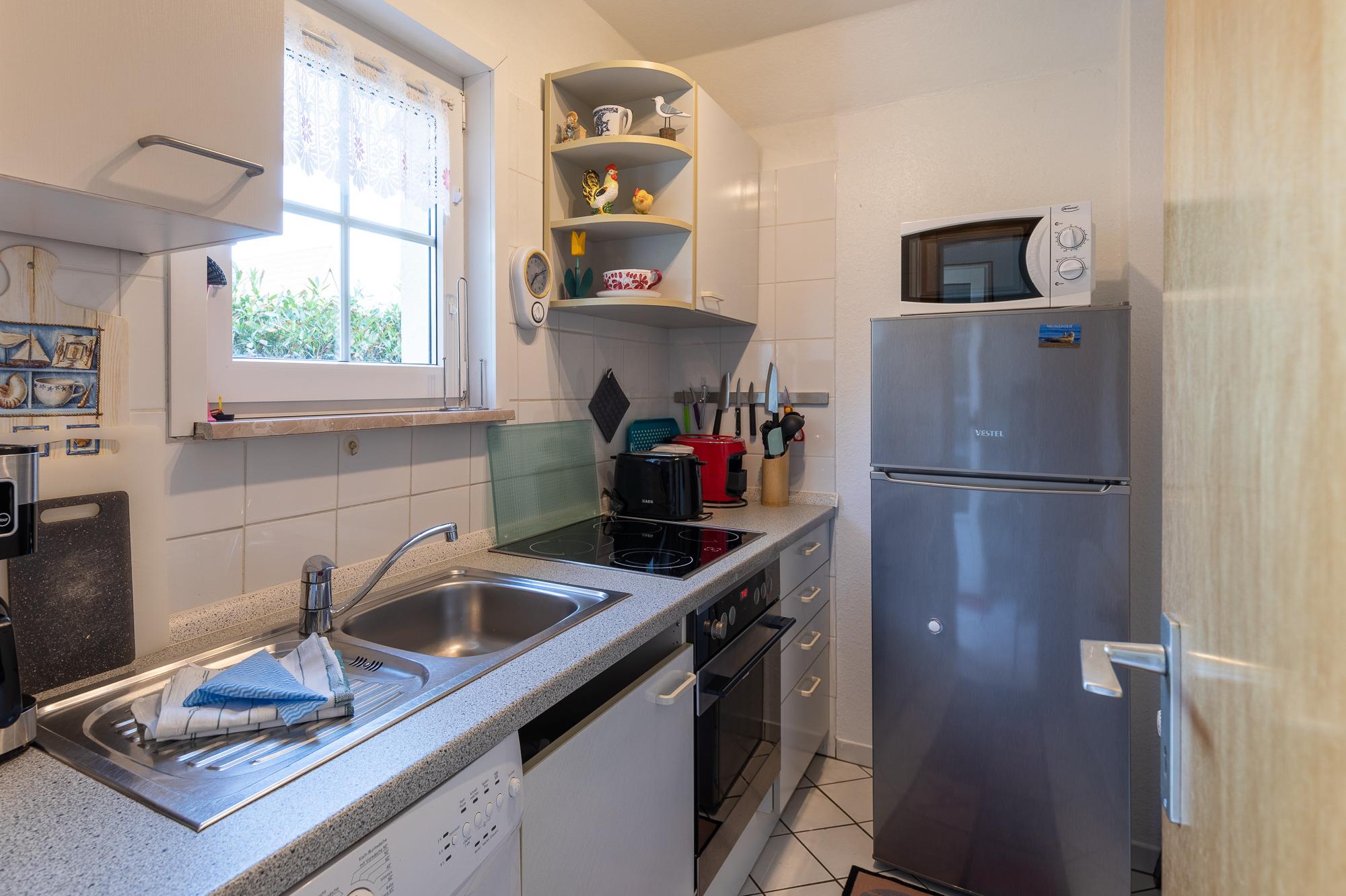 Das Haus mit ca.70 m² Wohnfläche, ist komplett für bis zu 4 Personen ausgestattet. Wohnzimmer mit Essplatz und gemütlicher Sofaecke. Einbauküche (Waschmaschine, Backofen, Kochfeld, Kühlschrank mit Gefrierfach, Toaster, Wasserkocher und Kaffeemaschine), Flatscreen TV. Vom Wohnzimmer aus hat man den direkten Zugang zur Terrasse und Garten, Duschbad, im Obergeschoss befinden sich 2 Schlafzimmer mit Doppelbett und 1 Schlafzimmer mit 2 Einzelbetten.