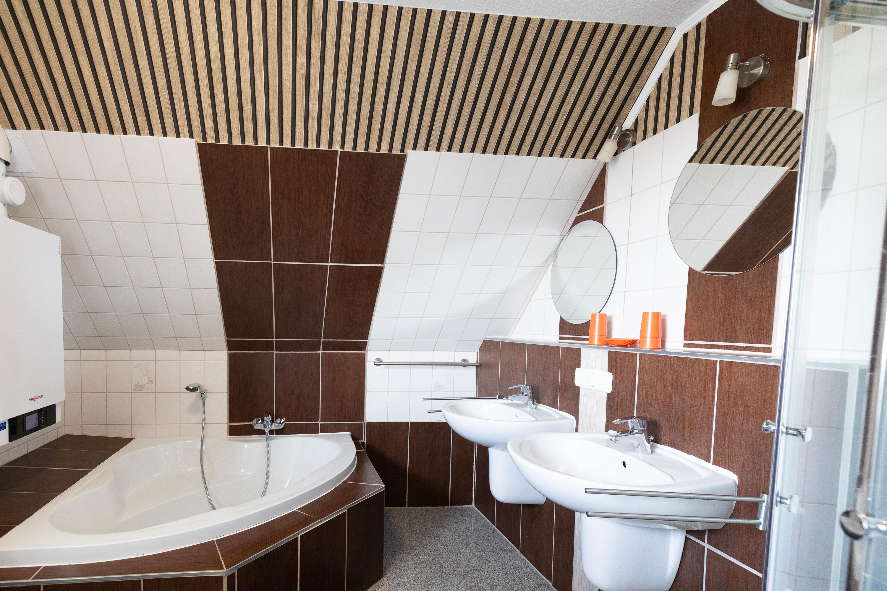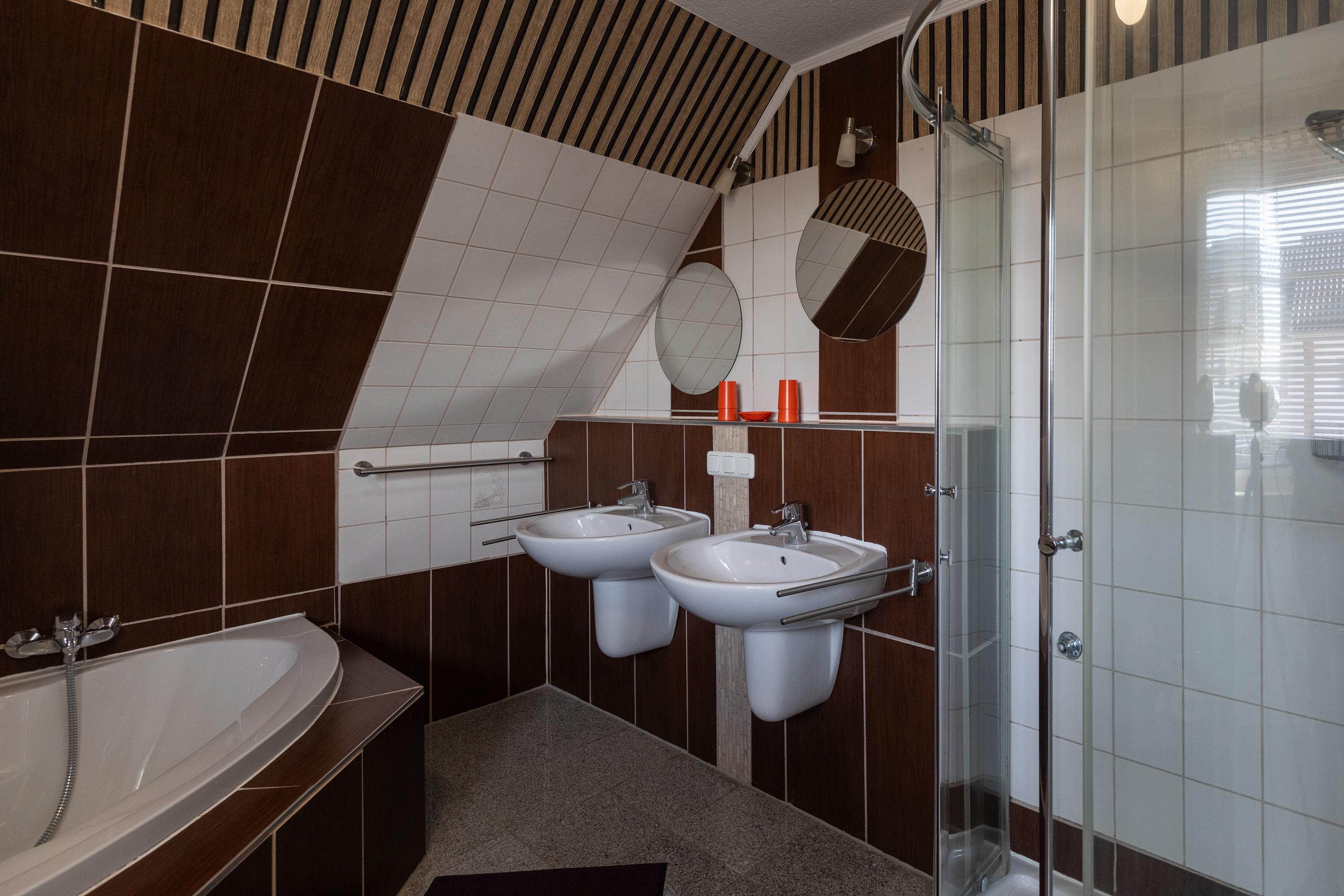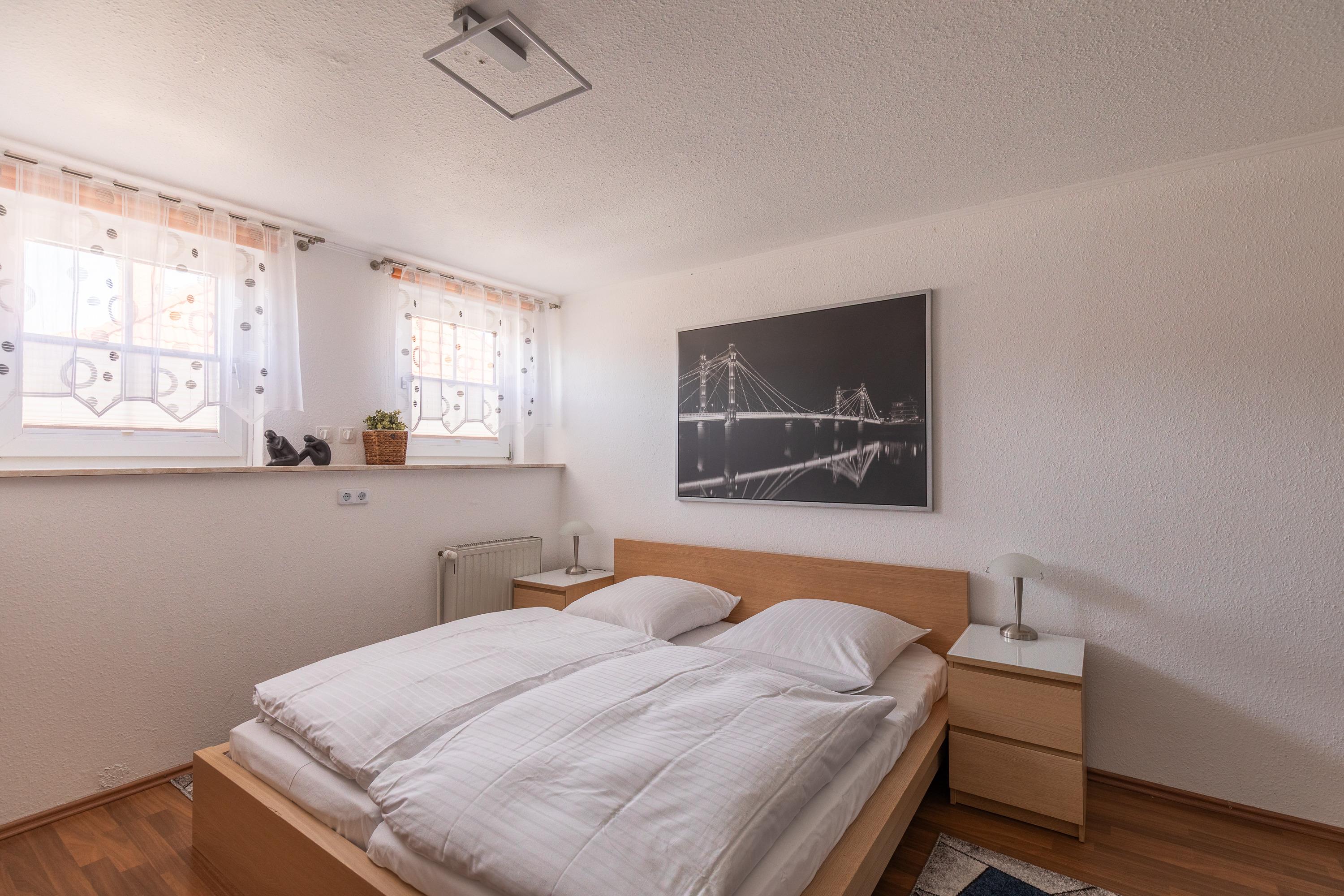 Das modern eingerichtete Ferienhaus mit einer Größe von ca. 140 m² Wohnfläche (300 m² Grundstück) ist komplett bis zu 6 Personen ausgestattet. 2 Schlafzimmer mit jeweils einem Doppelbett, TV und Kleiderschrank, 1 Schlafzimmer mit 2 Einzelbetten und Kleiderschrank, großes Wohnzimmer mit Sofaecke, direktem Zugang in den Garten/Terrasse, Esstisch, TV und elektrischen Aussenrollläden, komplett eingerichtete Einbauküche (Backofen, Cerankochfeld, Geschirrspüler, Toaster, Kaffeemaschine, Wasserkocher, Massimo Kaffeemaschine), Dusche mit WC und Eckbadewanne im Obergeschoss, Gäste WC im Erdgeschoss, Waschmaschine, Bügeleisen und Bügelbrett im Abstellraum,[nbsp][nbsp]Nichtraucherhaus, keine Haustiere, Garage direkt am Haus.