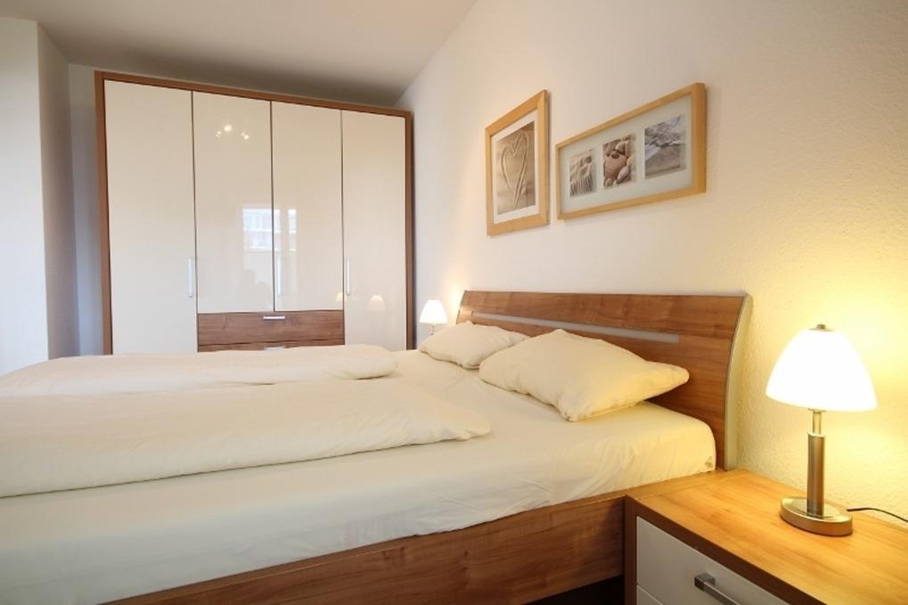 Die 3 Raum Wohnung mit einer Größe von ca. 80 m² Wohnfläche ist komplett bis zu 4 Personen ausgestattet. 1 Schlafzimmer mit einem Doppelbett, Kleiderschrank und TV, 1 Schlafzimmer mit 2 Einzelbetten, großes Wohnzimmer mit gemütlicher Sitzecke, Essplatz für 4 Personen, Blick auf die Nordsee, Zugang zum Balkon, Küchenzeile (Backofen, Cerankochfeld, Geschirrspüler, Toaster, Kaffeemaschine, Wasserkocher), Bad mit Dusche, WC und Waschmaschine, 1 Flatscreen TV im Wohnzimmer, Nichtraucherwohnung, keine Haustiere, PKW-Stellplatz in der Tiefgarage (Höhe der Einfahrt 1,90 m).