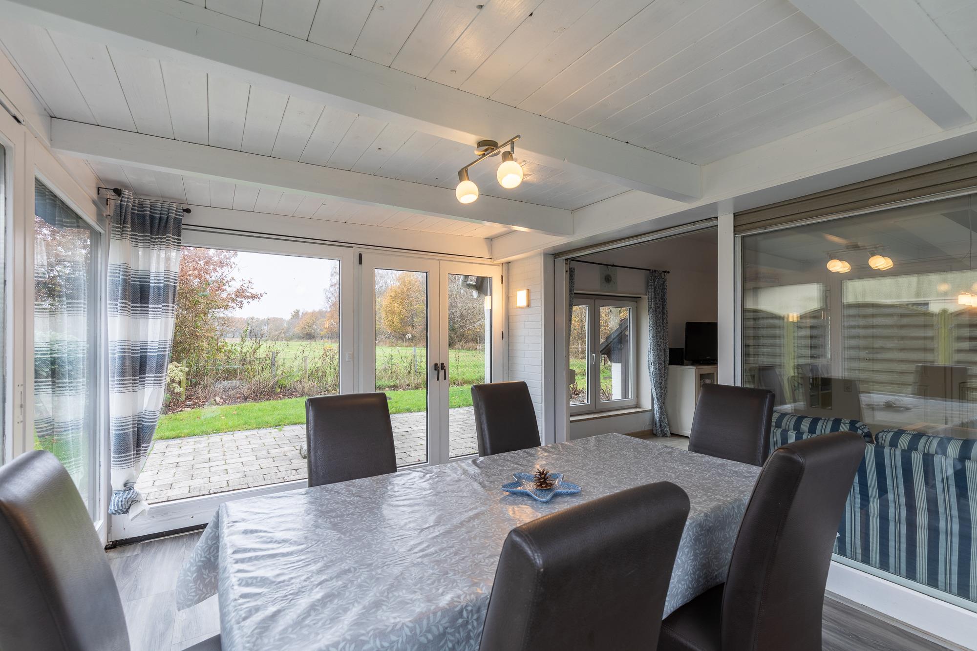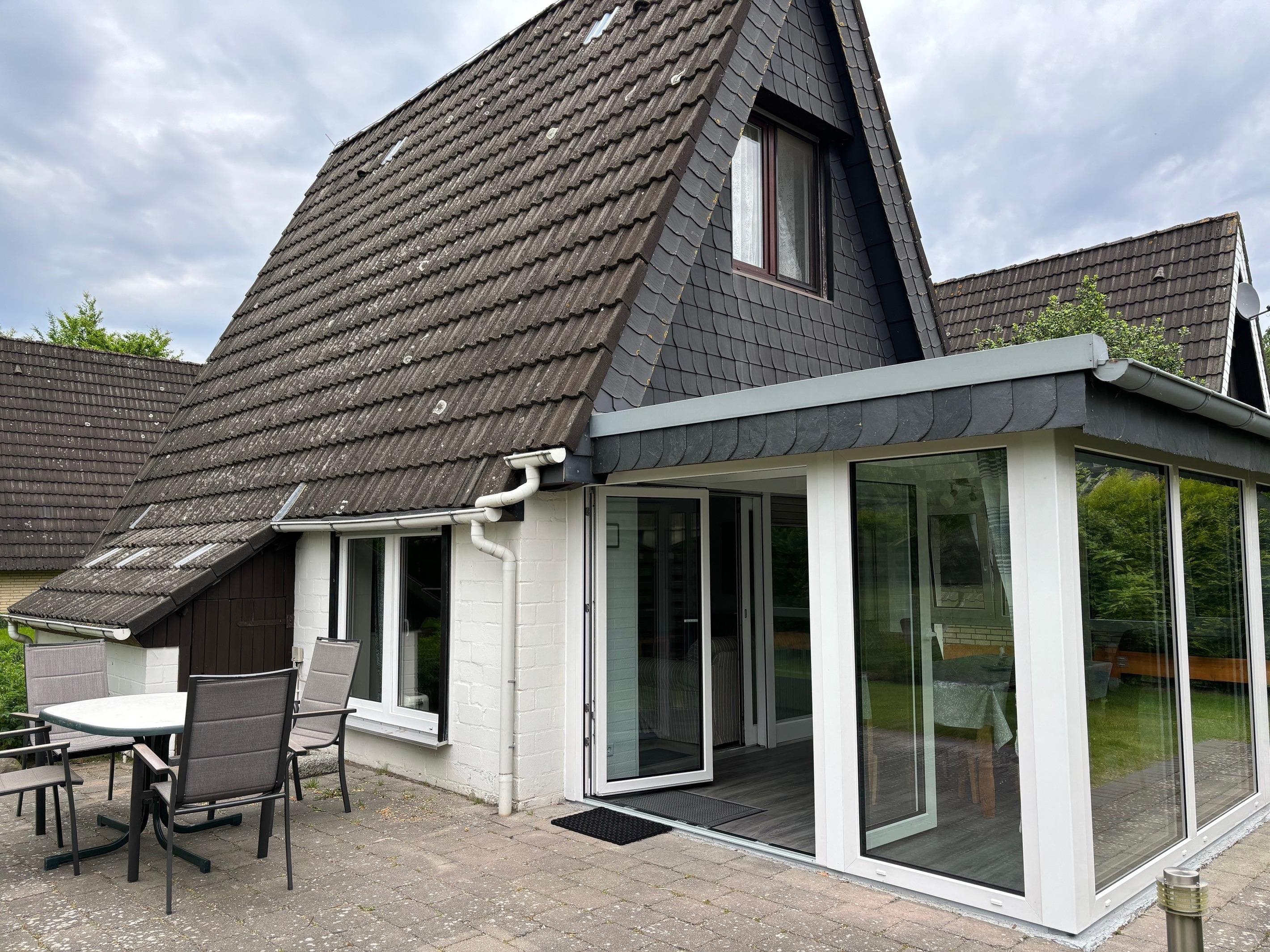 Das Ferienhaus mit einer Größe von ca. 75 m² Wohnfläche ist komplett bis zu 4 Personen ausgestattet. 1 Schlafzimmer mit Doppelbett (und Kinderbett), 1 Schlafzimmer mit 2 Einzelbetten, großes Wohnzimmer mit 2 Sofas, TV und Zugang zum Wintergarten, beheizbarer Wintergarten mit Zugang zur Terrasse und Garten, Küche mit Einbauküche (Backofen, Elektroherd, Kühlschrank, Geschirrspüler, Toaster, Kaffeemaschine), modernes Bad mit Dusche mit WC, Nichtraucherhaus, keine Haustiere, PKW-Stellplatz direkt am Haus.