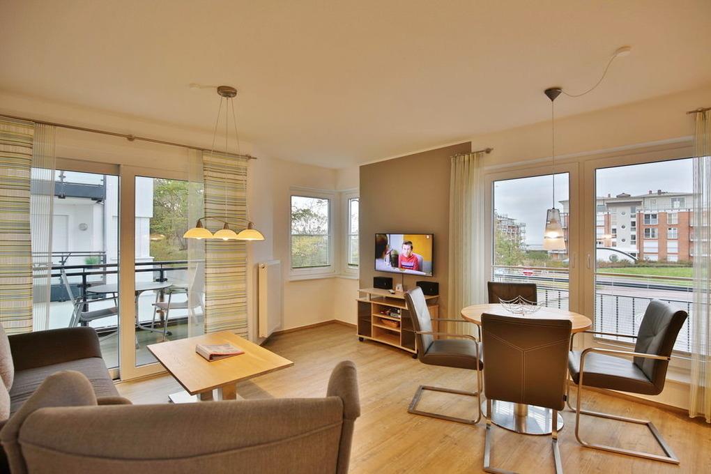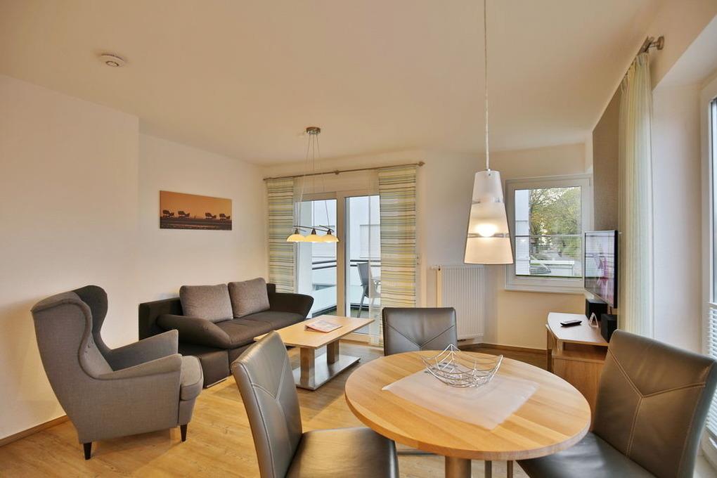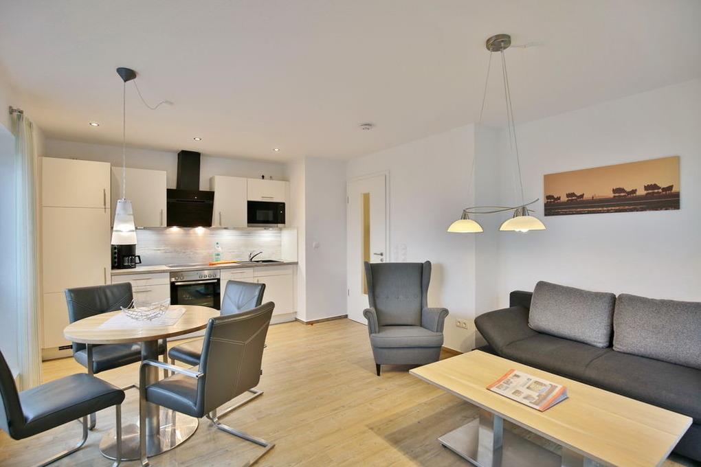 Schöne 2-Raum-Wohnung, zentrumsnah in Duhnen (1. Etage). Vollständige Küchenzeile mit Mikrow., Back., Geschirrspüler etc. Wohnzimmer mit Balkon (nord/west), 2x SAT-TV, Stereoanlage, kostenfreies W-Lan, separates Schlafzimmer mit Außenjalousien, allergikerfreundlich, ebenerdige Dusche/WC, Föhn, reservierter Pkw-Stellplatz in der Tiefgarage, keine Haustiere und natürlich Nichtraucher.