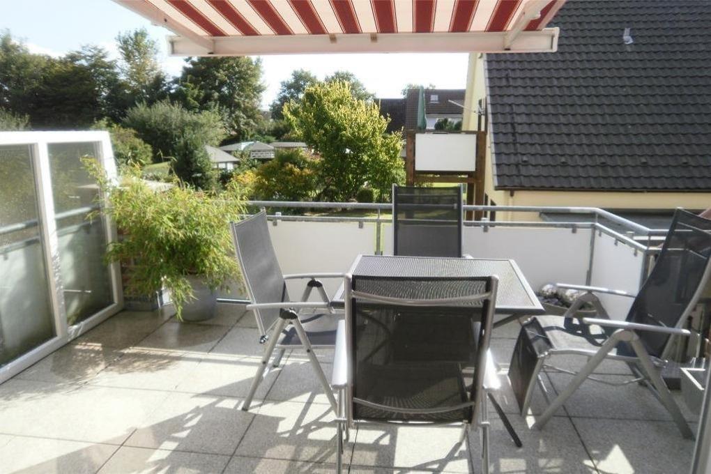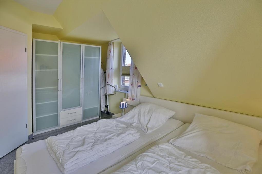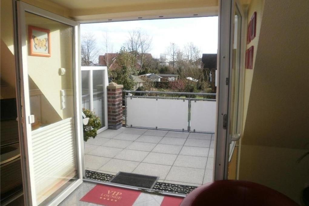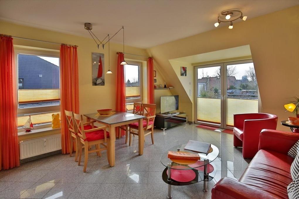Sehr schöne, helle 3-Raum-Maisonette-Wohnung auf ca. 60m², 1.Etage, 1 Schlafzimmer mit Doppelb., 1 Schlafzimmer im Dachgeschoss mit 2 Einzelbetten und TV, separates WC mit Waschbecken, Wohnzimmer mit Küchenzeile (Backofen, Mikrowelle, Geschirrspüler, Gefrierfach) Kabel-TV/Stereo, kostenloses W-LAN Internet, Dusche/WC, großer Balkon (süd) mit Markise. Die Wohnung ist komplett gefliest, keine Haustiere, Nichtraucher!