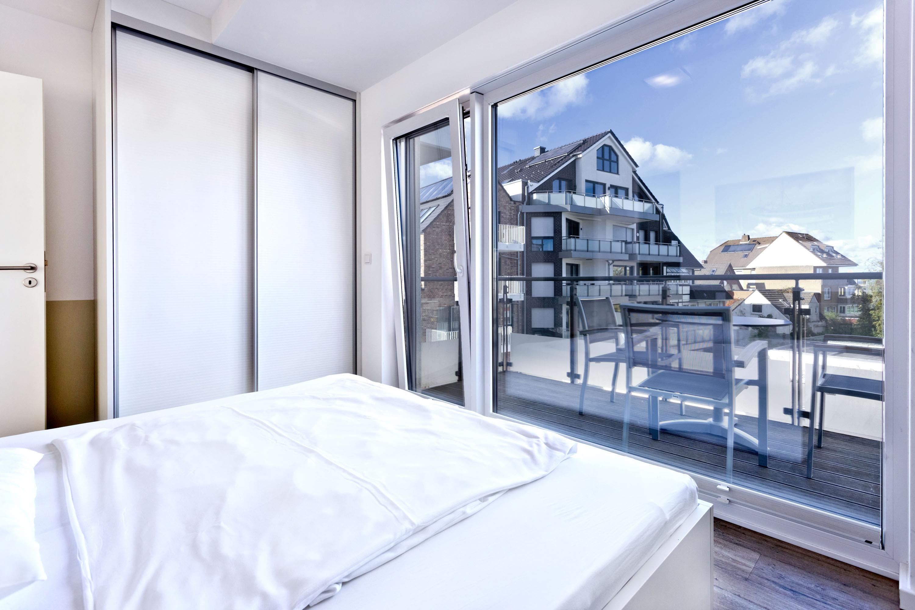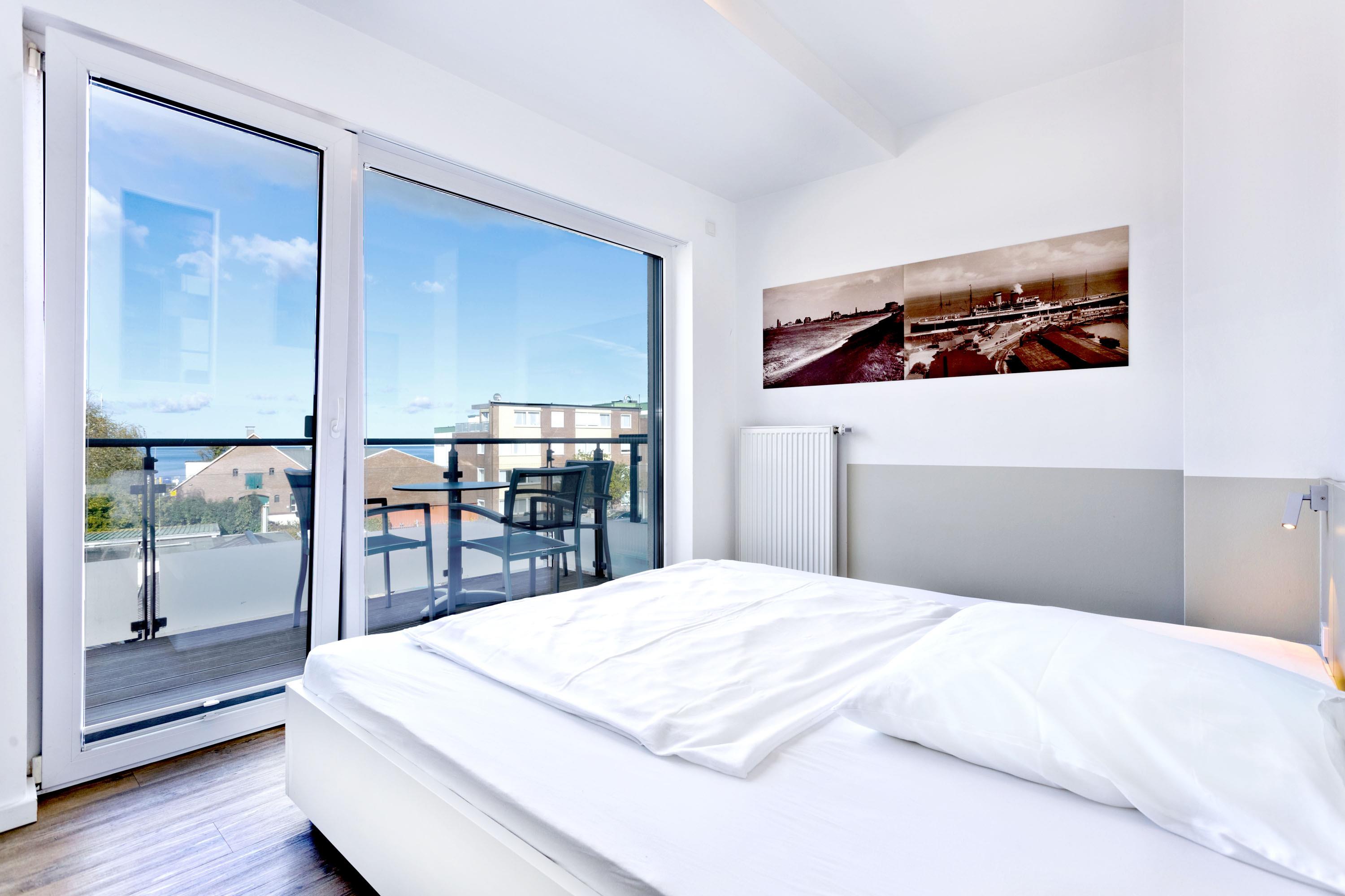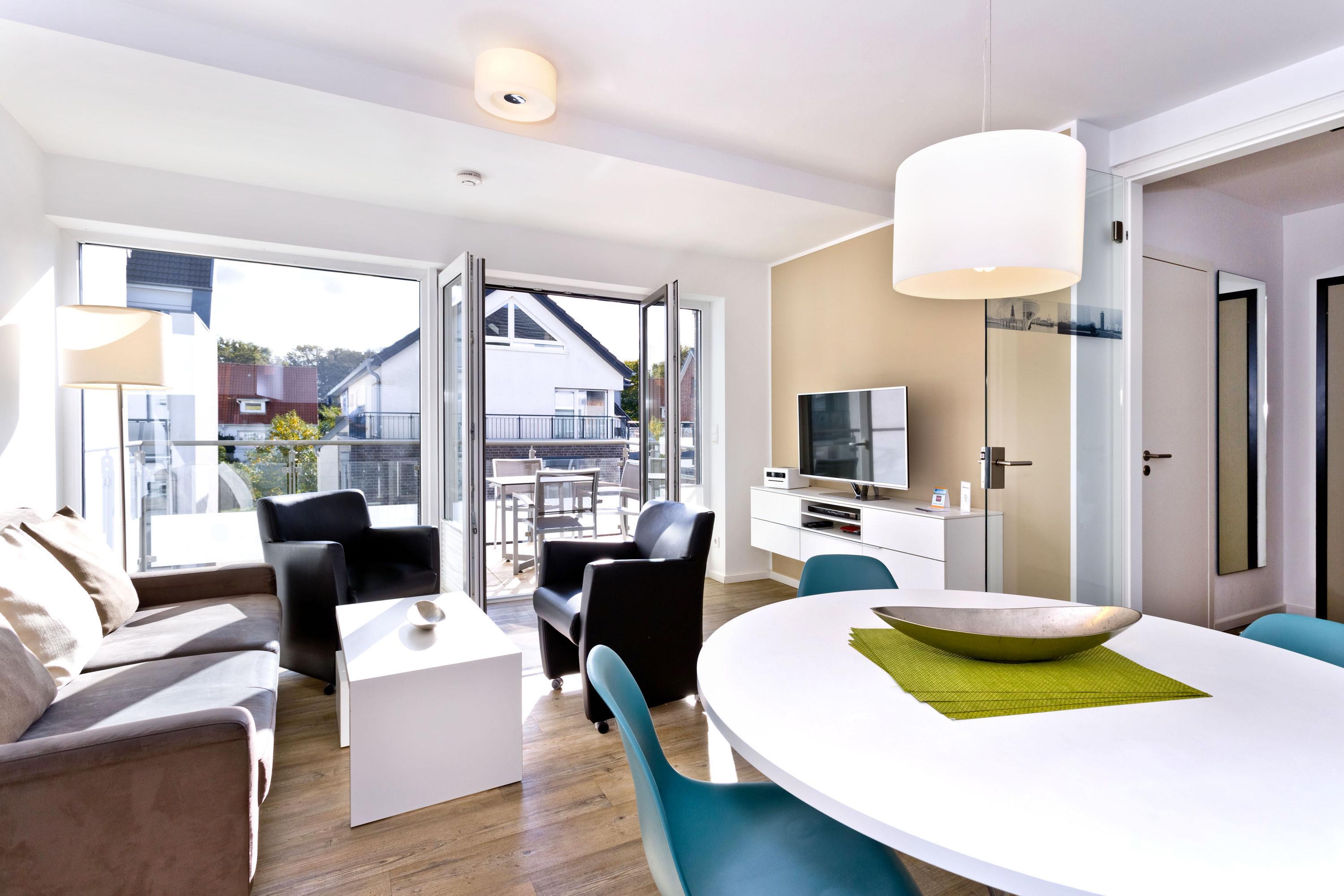 Sehr schöne, moderne 3-Raum-Wohnung bis 4 Pers mit Teilseesicht. (62m²), 2.Etage, 2 Schlafzimmer mit Doppelbetten und Außenjalousien, ebenerdige Dusche/WC, Wohnzimmer mit großer Küchenzeile (Back., Mikrow., Geschirrspüler) 2xSAT-TV, Blue-Ray, CD-Radio, W-LAN kostenlos, 2 große Balkone (süd u. nord mit Seesicht), Personenaufzug, überdachter Pkw-Stellplatz unter dem Haus, keine Haustiere erlaubt, Nichtraucher.
