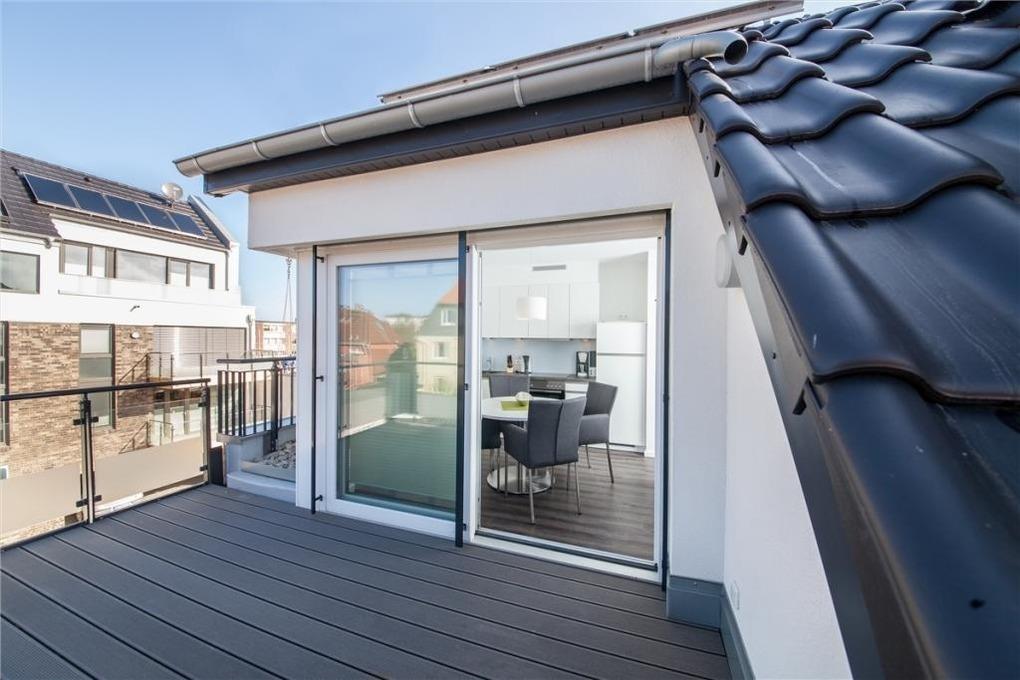 Sehr schöne, moderne 3-Raum-Wohnung bis 4 Pers über zwei Etagen (64m²), 2.Etage, 2 Schlafzimmer mit Doppelbetten, Wohnzimmer mit großer Küchenzeile (Back., Mikrow., Geschirrspüler), 2x Du/WC, 2xSAT-TV, Blue-Ray, CD-Radio, W-LAN kostenlos, großer Westbalkon mit Balkonmöbeln und Sonnenschirm (saisonabhängig), reservierter Pkw-Stellplatz vor dem Haus, keine Haustiere erlaubt, Nichtraucher.