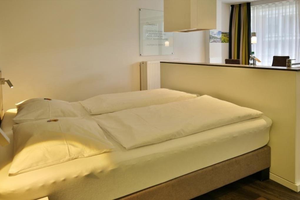 Klein aber fein... Geniessen Sie den Komfort dieses App. für 2 Pers. mit Vollausstattung. Großer Balkon zur Westseite (mit Balkonmöbeln [&] Sonnenschirm, saisonabhängig), vollständige Küchenzeile mit Mikrow., Geschirrspüler etc., SAT-TV, CD-Kompaktanlage, USB-Steckdosen, kostenloses W-Lan, allergikerfreundlich, hochwertige Boxspringbetten, ebenerdige Dusche/WC, Föhn, Tiefgaragenstellplatz (3m breit), keine Haustiere und natürlich Nichtraucher. Bettwäsche u. Handtücher inkl., Lage:2.OG
