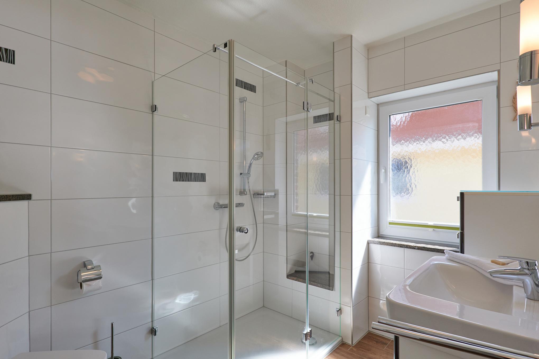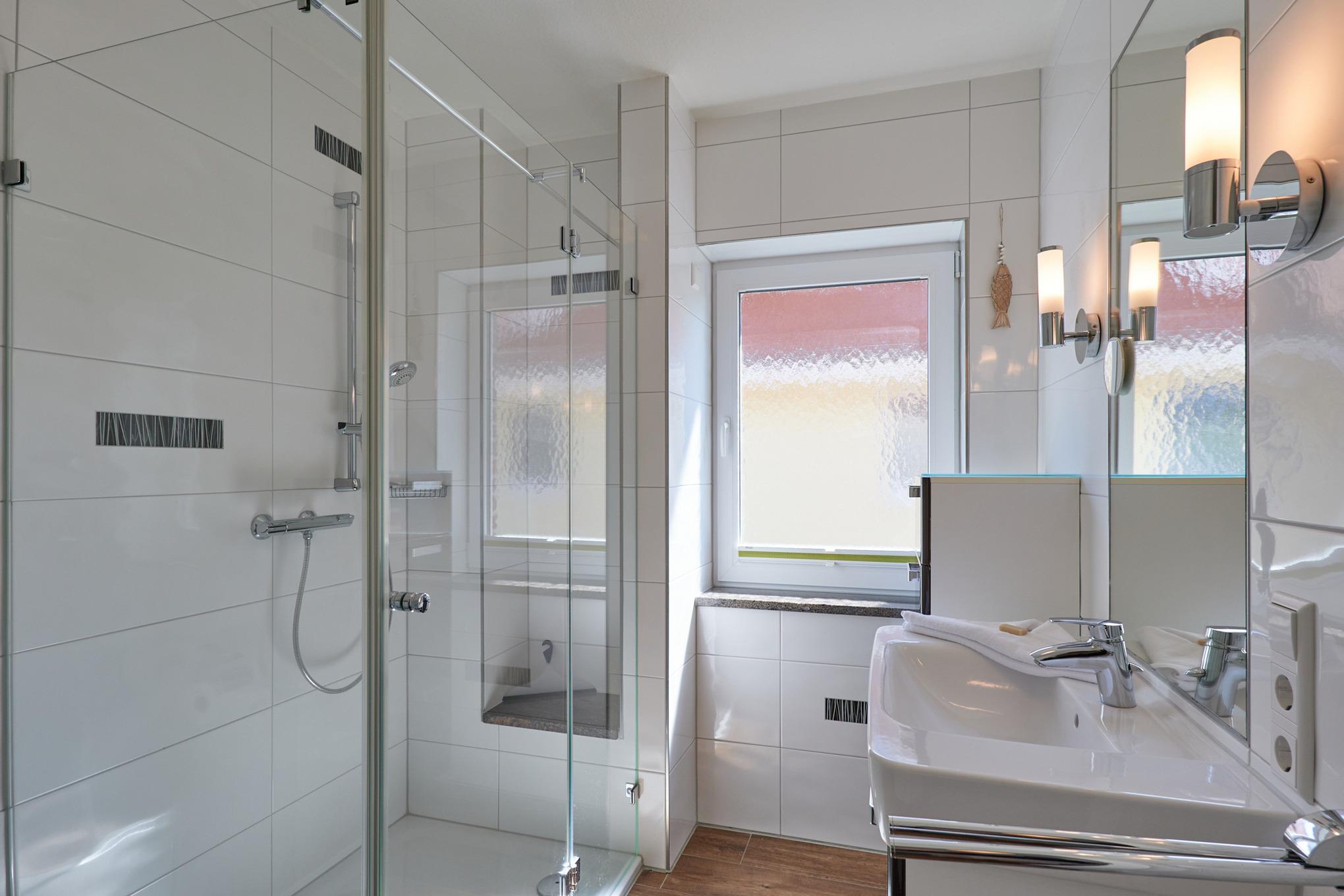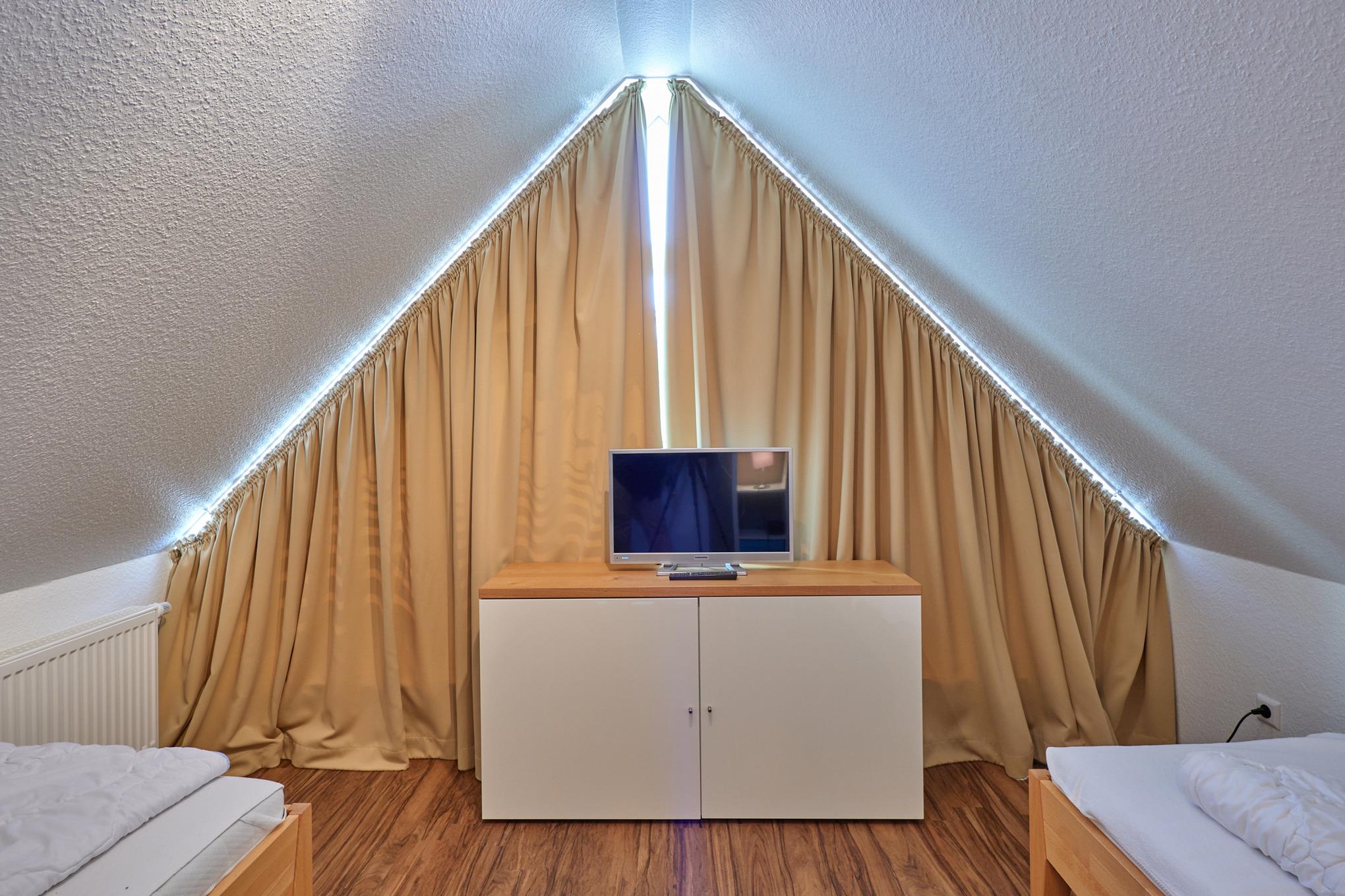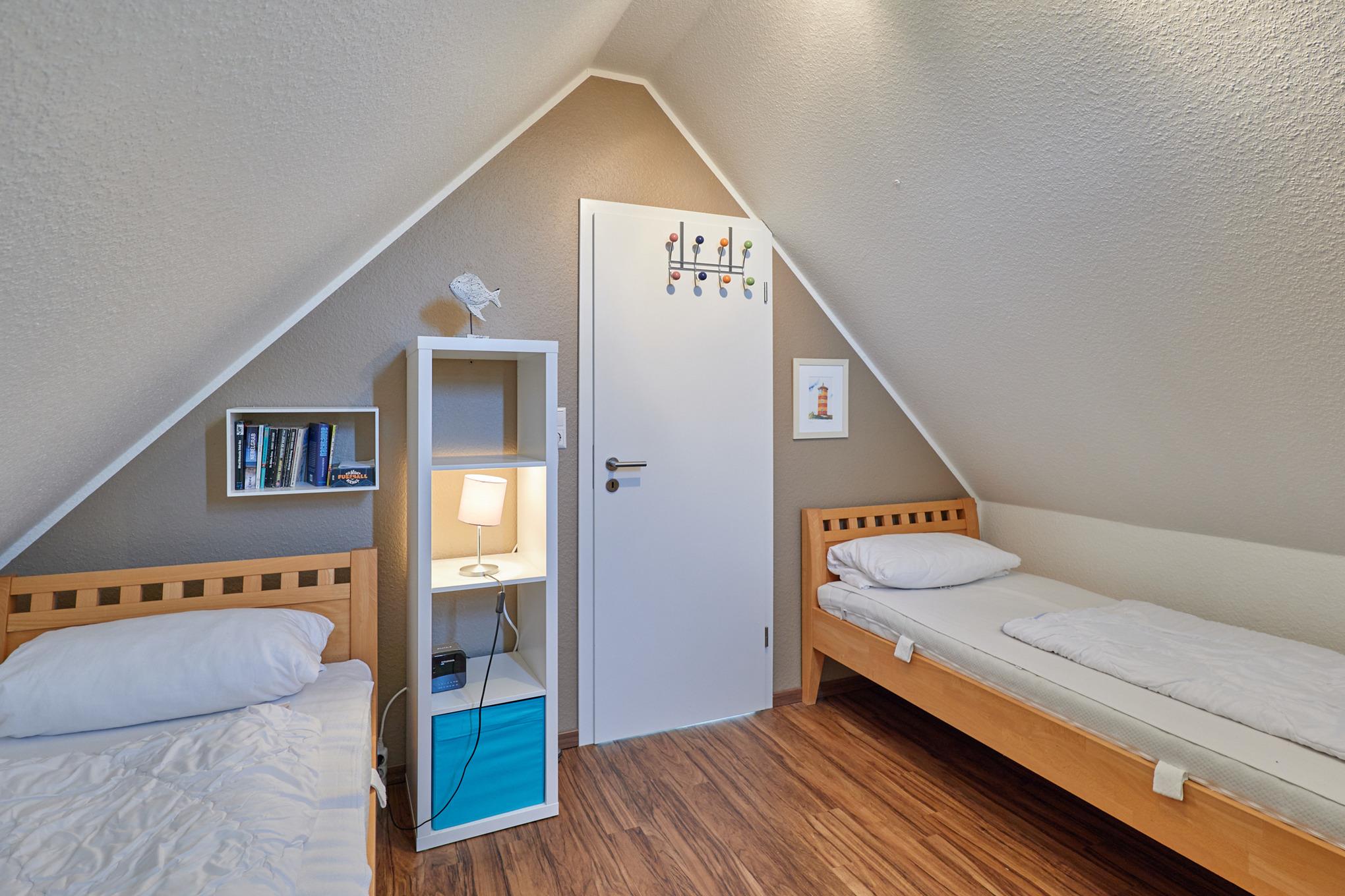Sehr schöne, helle 3-Raum-Maisonette-Wohnung (57m²) bis 4 Pers., 1.Etage, 1 Schlafzimmer mit Doppelb., 1 Schlafzimmer im Dachgeschoss mit Einzelbetten, 2xDu/Wc, Wohnzimmer mit vollständiger Küchenzeile (Back., Mikrow., Senseo, Geschirrspüler) 3xSAT-TV,DVD-Player, Stereo, W-LAN kostenlos, großer Balkon (süd), Rollläden, Pkw-Stellplatz #5, keine Haustiere erlaubt, Nichtraucher.