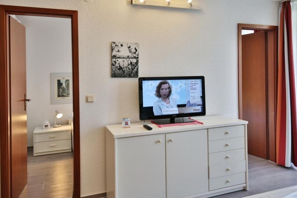 2-Raum-Wohnung auf ca. 45m², parterre, komplett ausgestattet bis 3 Pers., 1 Schlafzimmer mit Doppelbett (1,90m), 1 kombiniertes Wohn/Schlafzimmer mit Doppelbettcouch, SAT-TV, kostenloses W-Lan, Küchenzeile, Du/WC, Flur, Nichtraucher, kleine Ost-Terrasse mit Rasenanteil (mit Balkonmöbeln [&] Sonnenschirm, saisonabhängig), keine Haustiere erlaubt, Stellplatz #3 in der Tiefgarage