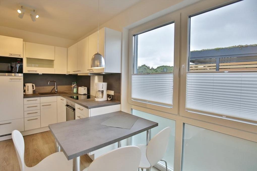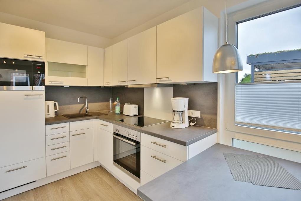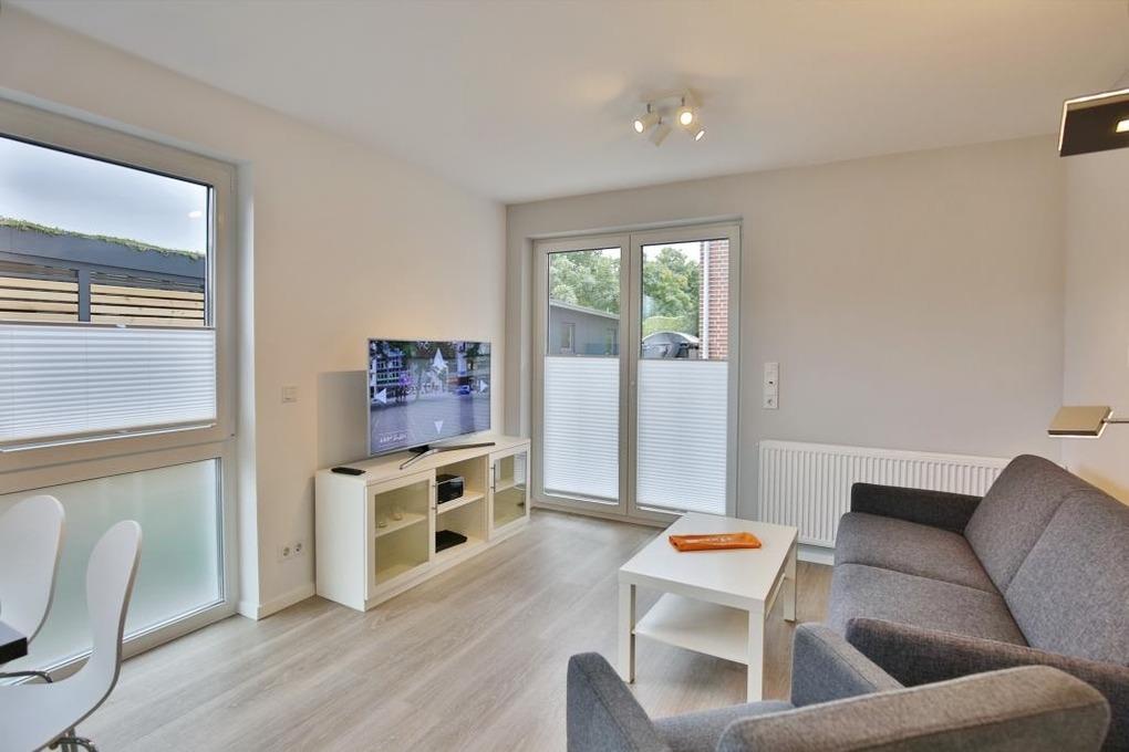 Sehr geschmackvoll und vollständig ausgestattete Ferienwohnung auf ca. 47m² bis 3 Pers., EG mit großer Terrasse (süd), 1 Schlafzimmer mit Doppelbett u. TV, Wohn-/Schlafzimmer mit hochwertiger Schlafcouch, TV, Blue-Ray-DVD, kostenfreies W-LAN, vollständige Küchenzeile mit Geschirrspüler, Mikrowelle, Backofen, Gefrierfach, ebenerdige Dusche/WC mit Föhn, alle Räume sind mit Rollladen zu verdunkeln, Nichtraucherwohnung, reservierter Pkw-Stellplatz #4, keine Haustiere gestattet. Hinweis der Eigentümer: Elektrofahrzeuge dürfen nicht am Ferienobjekt geladen werden.