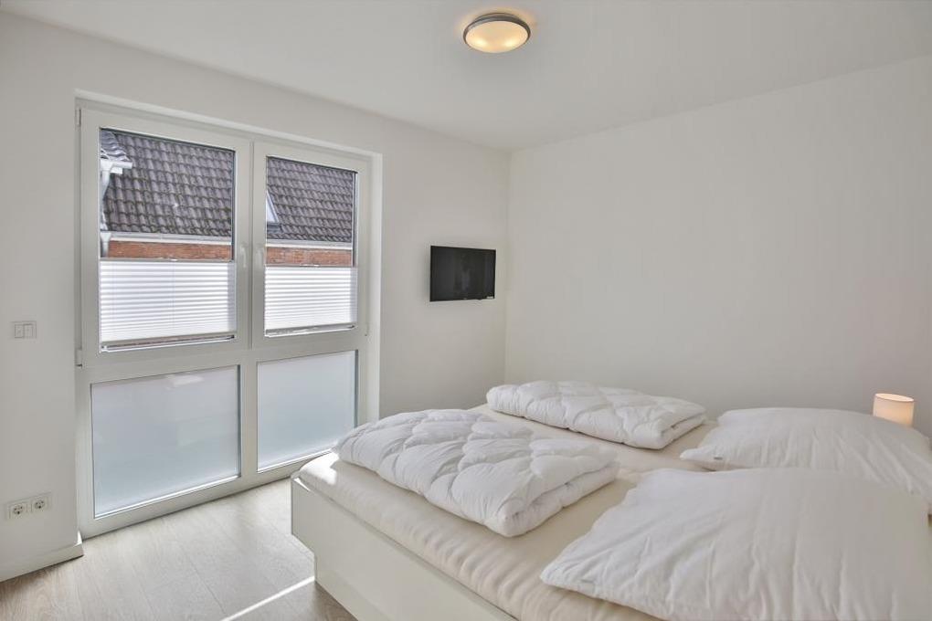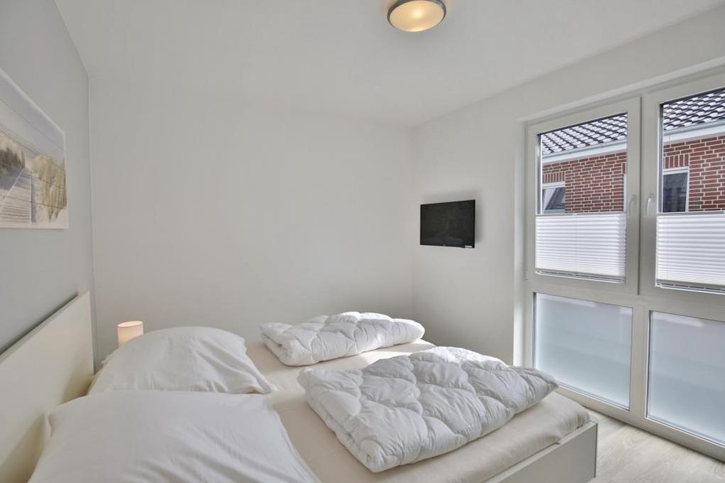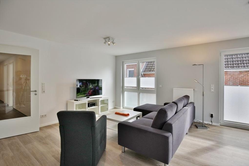 Sehr schöne Ferienwohnung auf ca. 90m² bis 4 Pers. im 1.OG mit Personenaufzug. Balkon (süd), 2 Schlafzimmer jeweils Doppelbett und TV, geräumiges Wohnzimmer mit vollständiger Küchenzeile (Geschirrspüler, Gefrierfach, Backofen, Mikrowelle), TV, Blue-Ray-DVD, kostenfreies W-LAN, ebenerdige Dusche/WC mit Föhn, Gäste WC, kleiner Abstellraum, alle Räume mit Rollladen, reservierter Pkw-Stellplatz #5 am Haus, Nichtraucherwohnung, keine Haustiere gestattet.