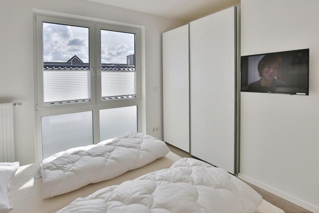 Tolle Ferienwohnung über ca. 68m² bis 4 Pers. im 2.OG mit Personenaufzug. Balkon (süd), 2 Schlafzimmer jeweils mit eigenem TV (1x Doppelbett und 1x 2 Einzelbetten), Wohnzimmer mit vollständiger Küchenzeile (Geschirrspüler, Gefrierfach, Backofen, Mikrowelle), TV, Blue-Ray-DVD, kostenfreies W-LAN, ebenerdige Dusche/WC mit Föhn, Rollladen, reservierter Pkw-Stellplatz #9 am Haus, Nichtraucherwohnung, keine Haustiere gestattet.