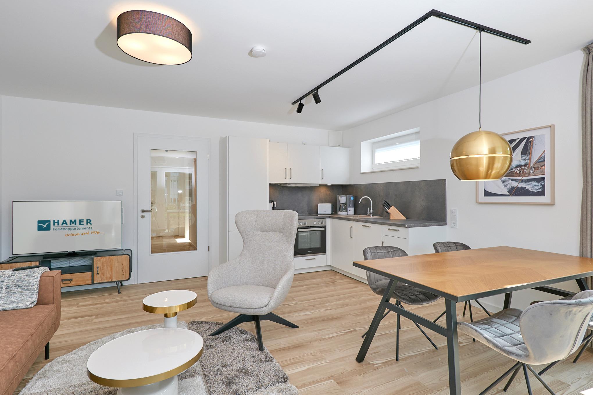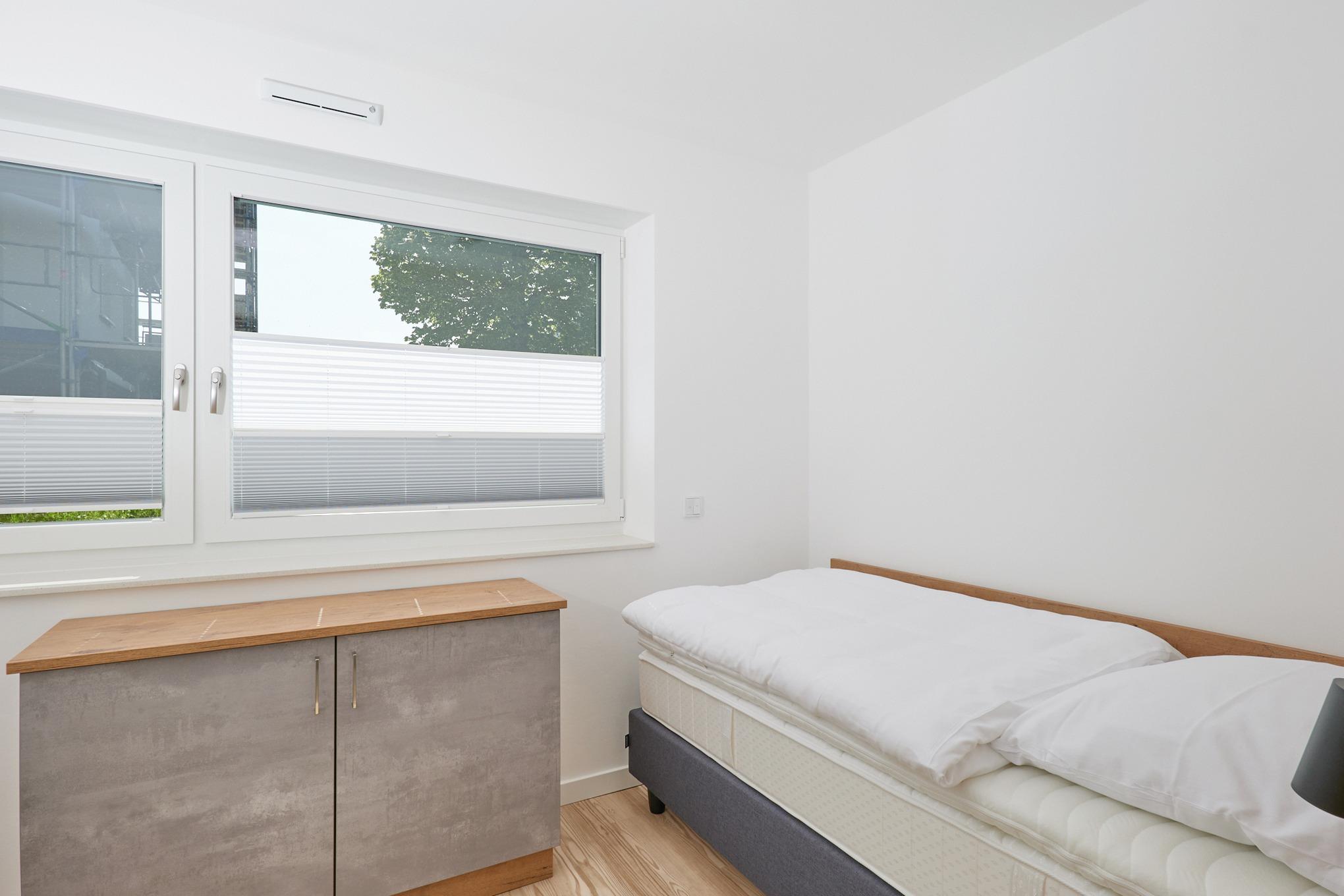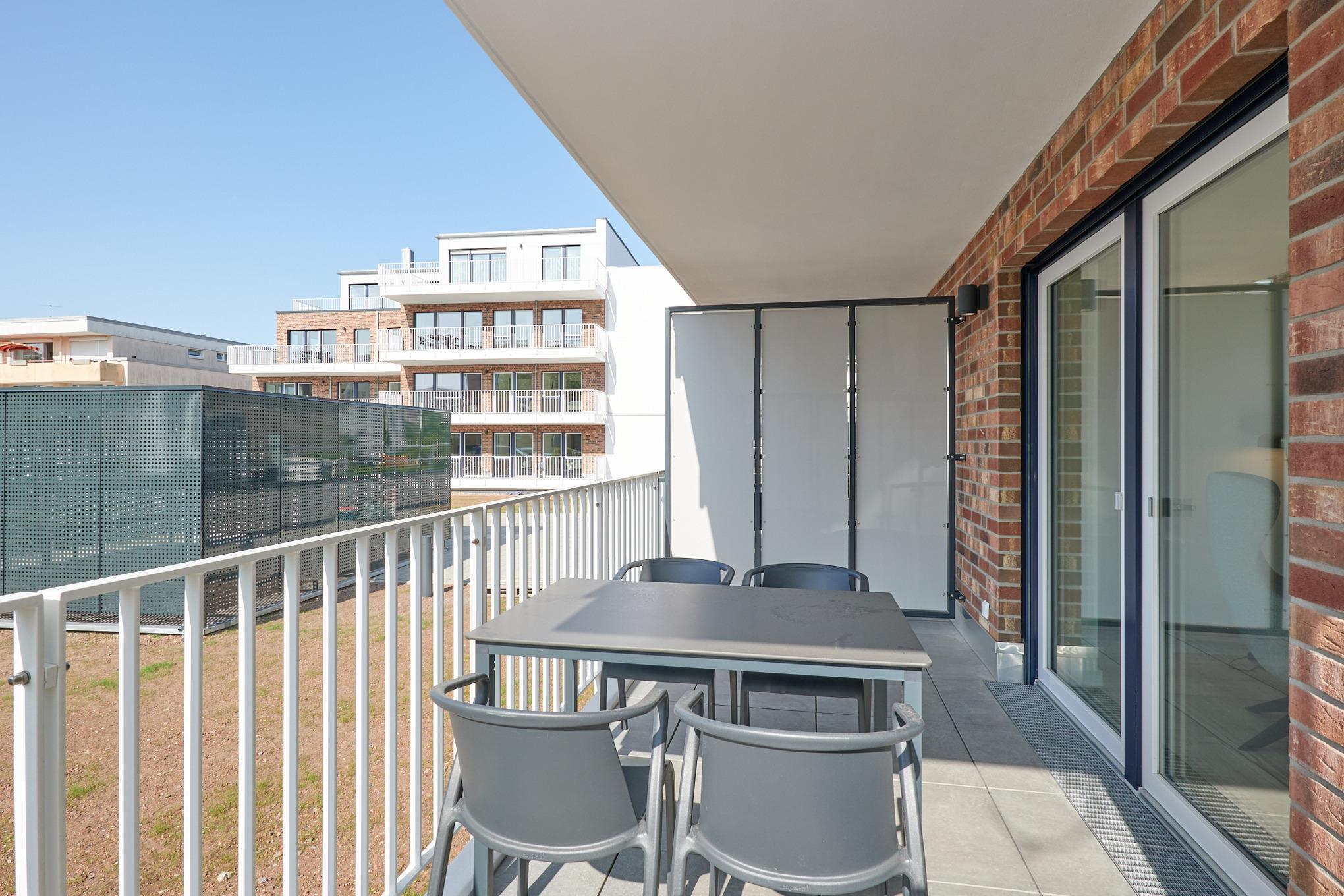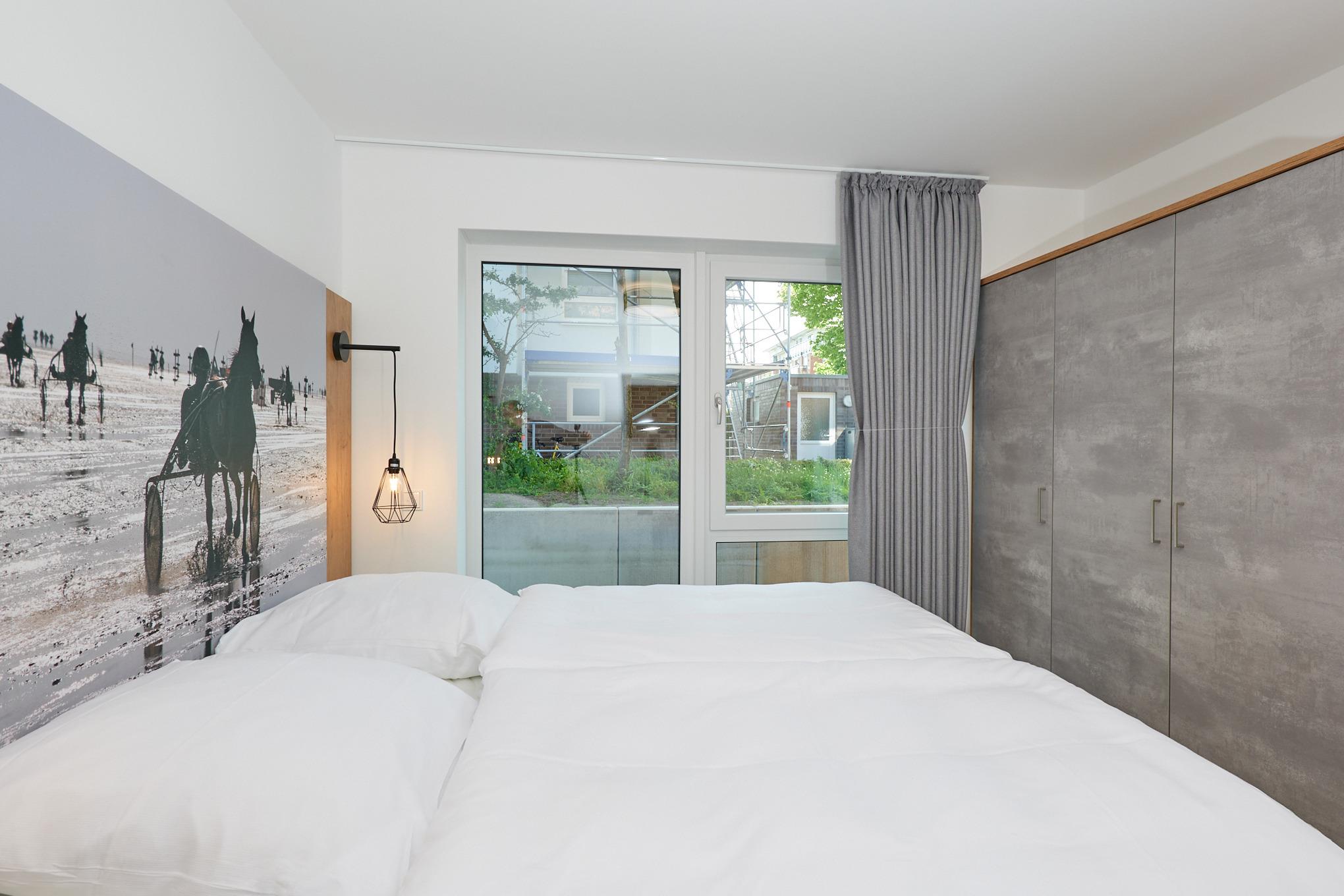 Neubau Mai 2023! Sehr schöne, moderne 3-Raum-Wohnung bis 4 Pers. voll ausgestattet auf ca. 66 m² in der 1.Etage gelegen, 2 Schlafzimmer (1x Doppelbett, 1x 2 Einzelbetten) und Außenjalousien an allen Fenstern, ebenerdige Dusche/WC, Wohnzimmer mit großer Küchenzeile (Backofen, Geschirrspüler, Mikrowelle) 2x Kabel-TV, Radio, kostenfreies W-LAN-Internet, Balkon (nord/west), Personenaufzug, die Wohnung ist barrierefrei erreichbar, reservierter Pkw-Stellplatz in der Tiefgarage inkl., es sind keine Haustiere erlaubt und natürlich Nichtraucher. Durchfahrtshöhe Tiefgarage: 2,05m.