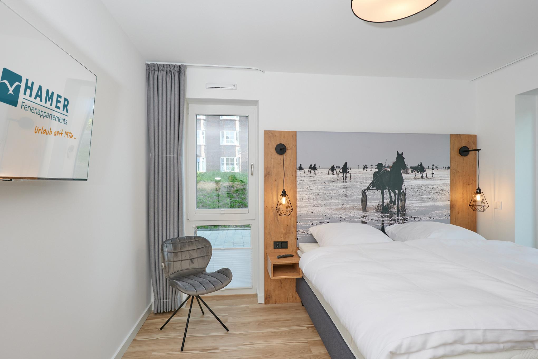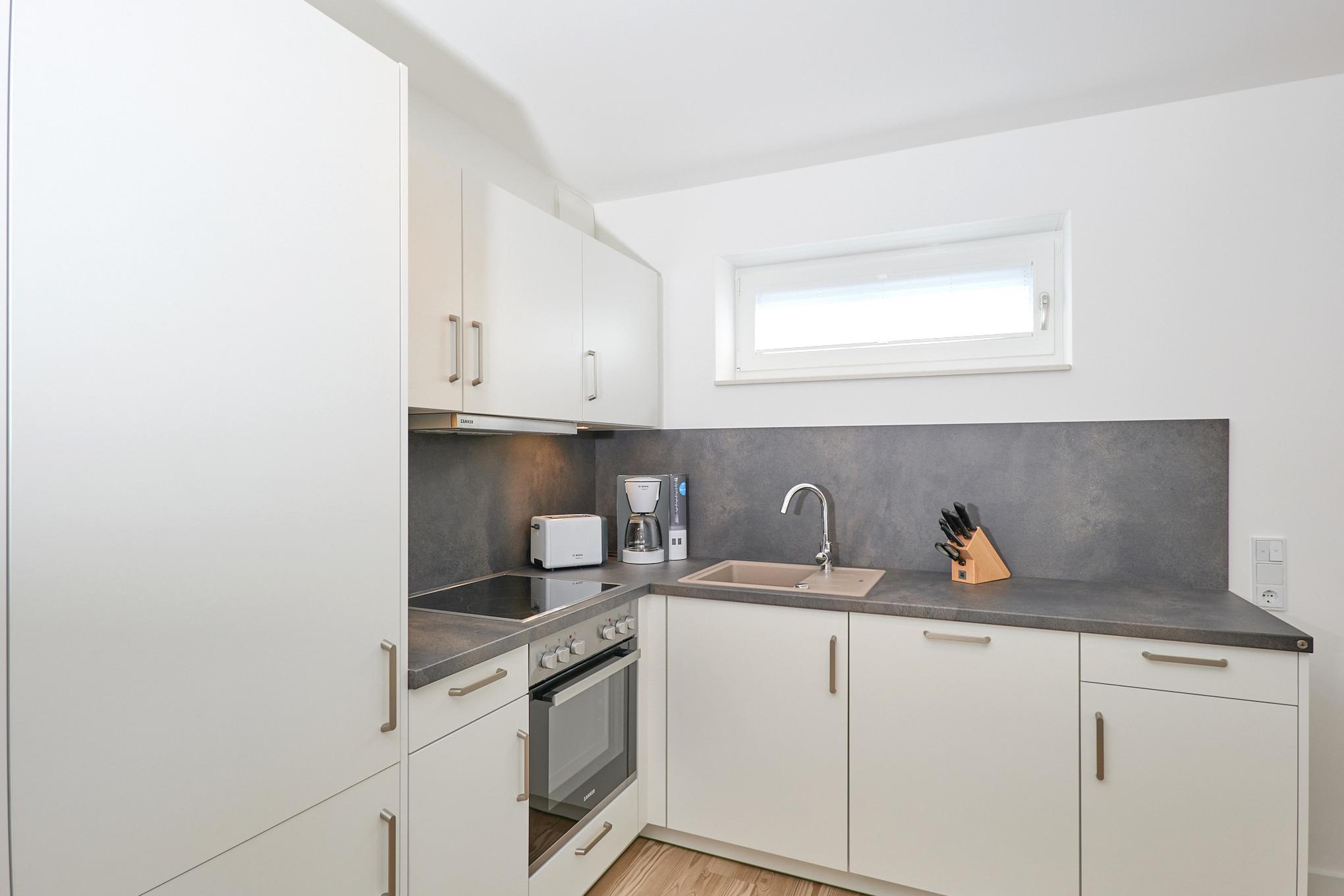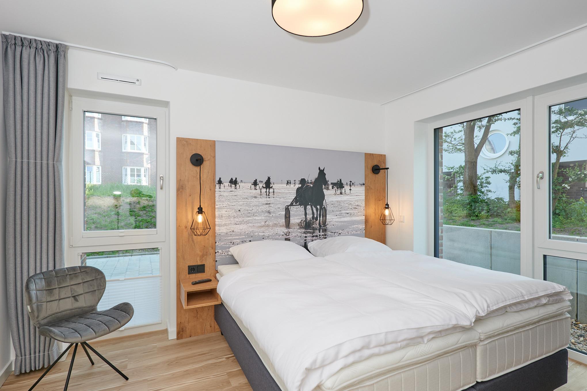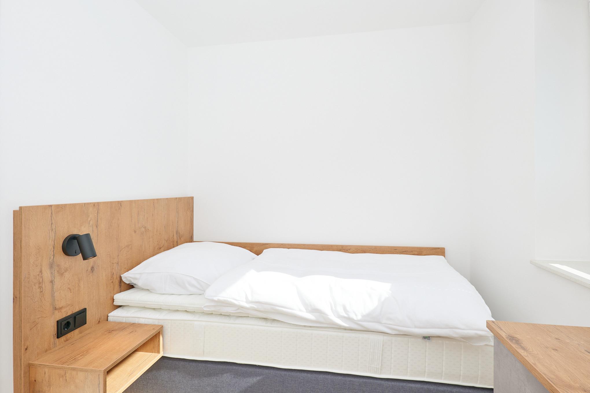 Neubau Mai 2023! Sehr schöne, moderne 3-Raum-Wohnung bis 4 Pers. voll ausgestattet auf ca. 66 m² in der 1.Etage gelegen, 2 Schlafzimmer (1x Doppelbett, 1x 2 Einzelbetten) und Außenjalousien an allen Fenstern, ebenerdige Dusche/WC, Wohnzimmer mit großer Küchenzeile (Backofen, Geschirrspüler, Mikrowelle) 2x Kabel-TV, Radio, kostenfreies W-LAN-Internet, Balkon (nord/west), Personenaufzug, die Wohnung ist barrierefrei erreichbar, reservierter Pkw-Stellplatz in der Tiefgarage inkl., es sind keine Haustiere erlaubt und natürlich Nichtraucher. Durchfahrtshöhe Tiefgarage: 2,05m.