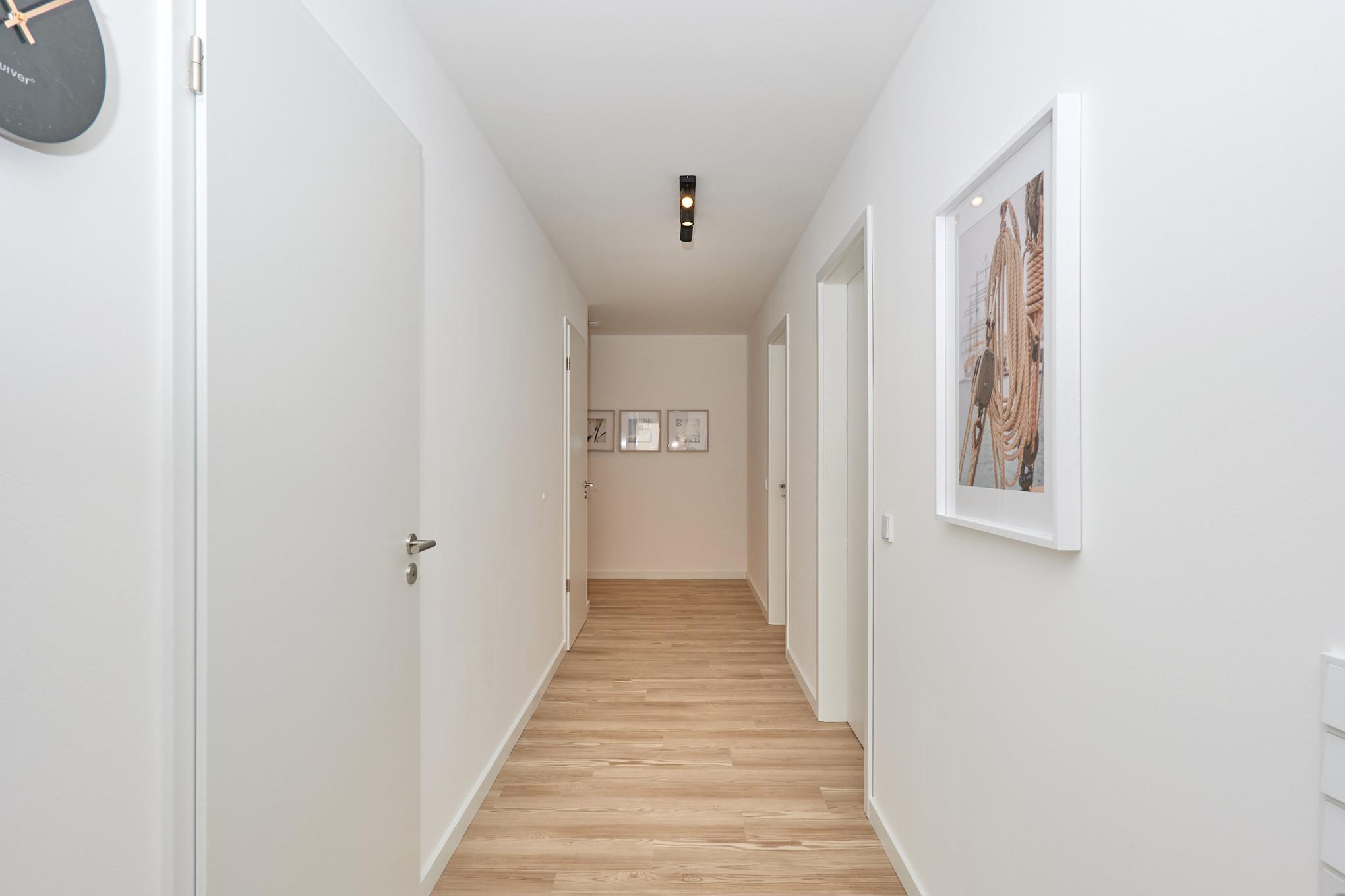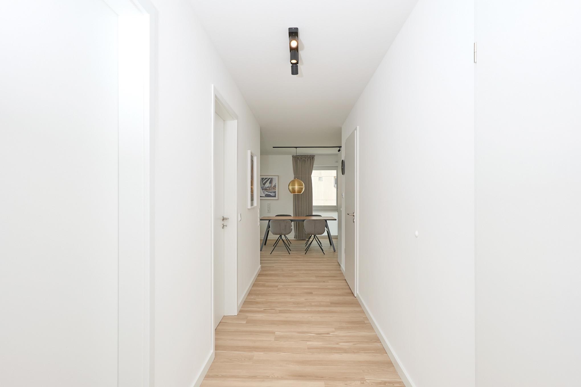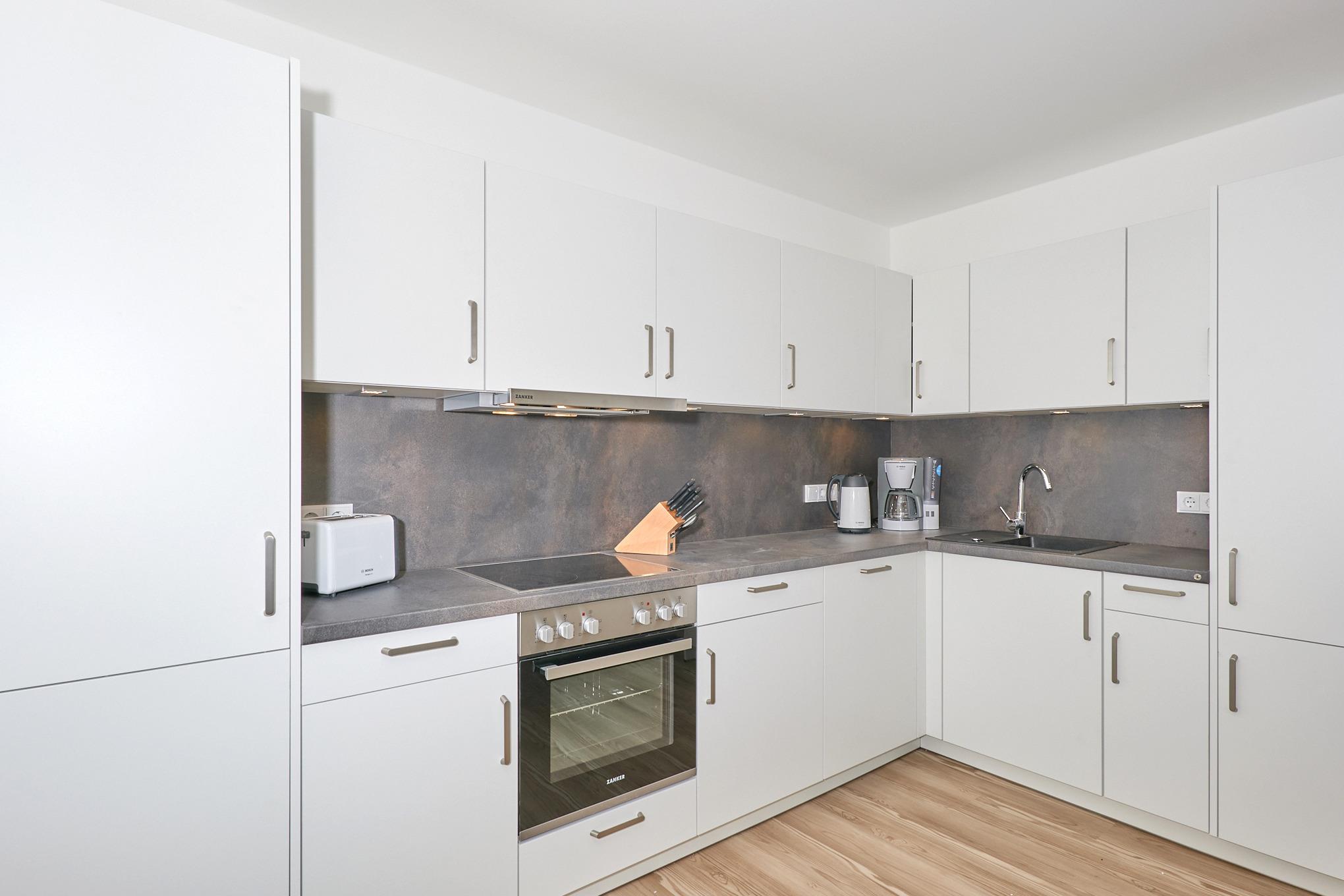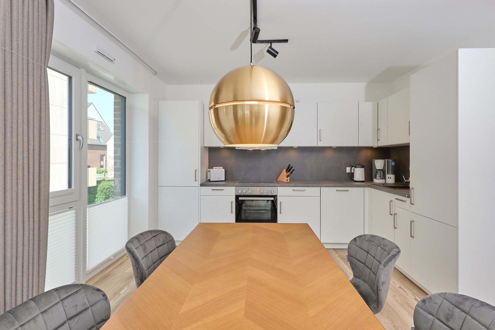 Neubau Mai 2023! Sehr schöne, moderne 3-Raum-Wohnung bis 4 Pers. voll ausgestattet auf ca. 99 m² in der 1.Etage gelegen, 2 Schlafzimmer mit komfortablen Doppelbetten (Bettwäsche inkl.) und Außenjalousien an allen Fenstern, ebenerdige Dusche/WC, Wohnzimmer mit großer Küchenzeile (Backofen, Geschirrspüler, Mikrowelle) 3x Kabel-TV, Radio, kostenfreies W-LAN-Internet, großer Balkon (west) mit Teilseesicht, Personenaufzug, reservierter Pkw-Stellplatz in der Tiefgarage inkl., es sind keine Haustiere erlaubt und natürlich Nichtraucher. Durchfahrtshöhe Tiefgarage: 2,05m.