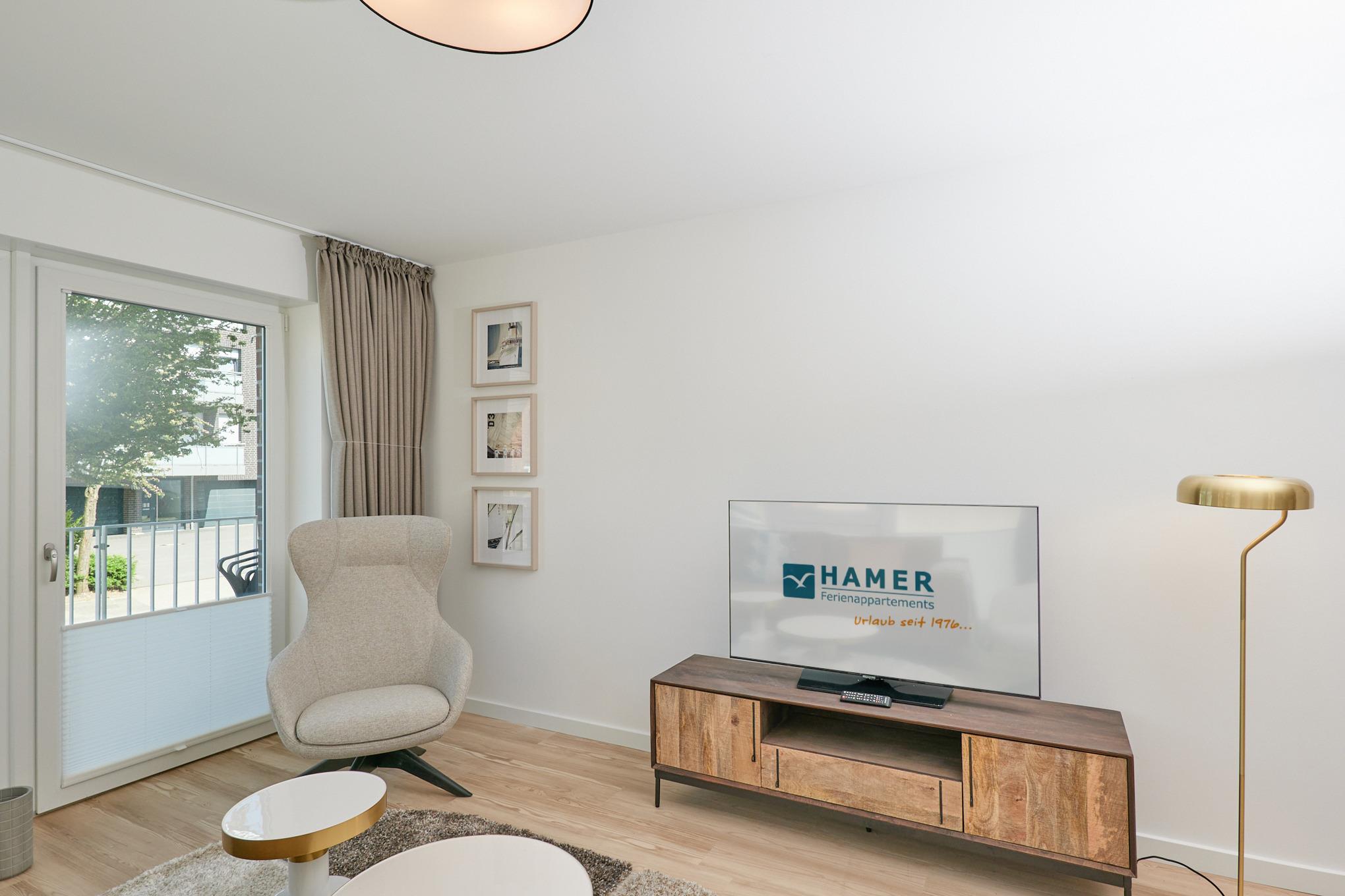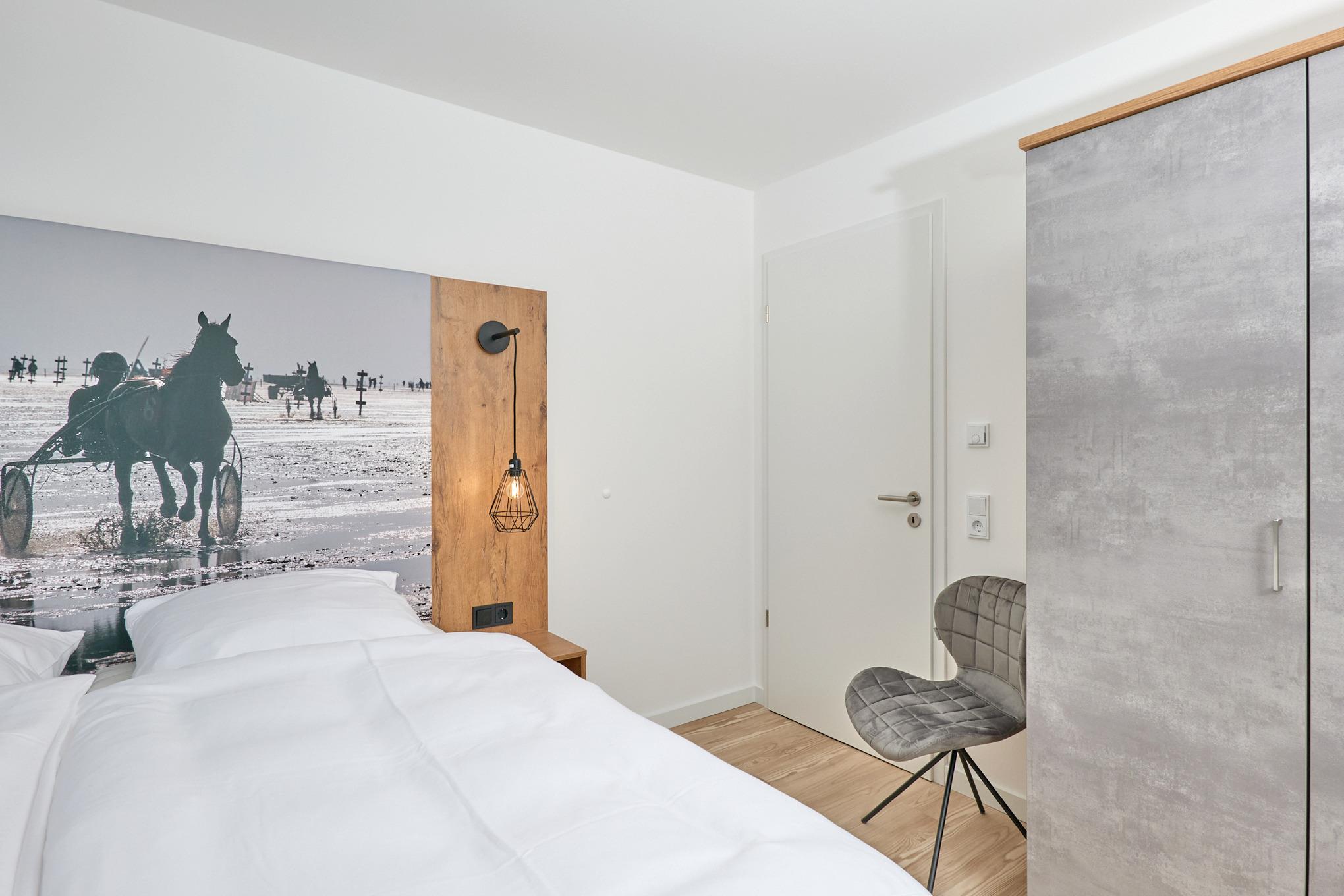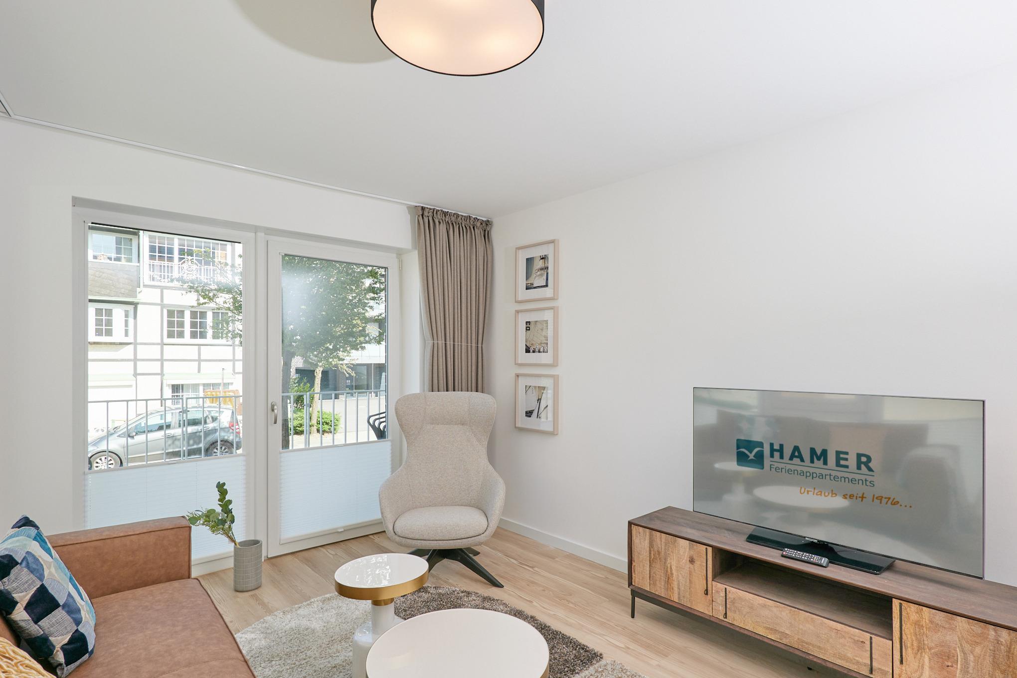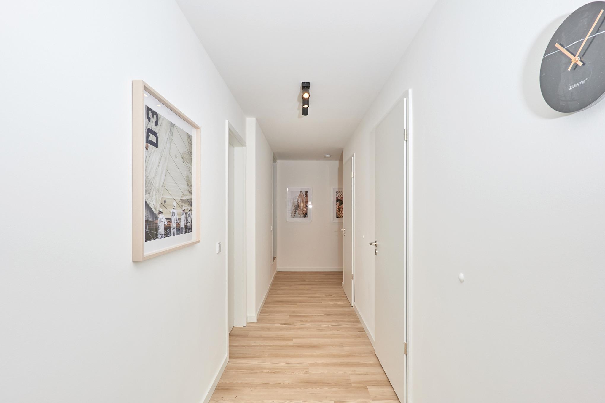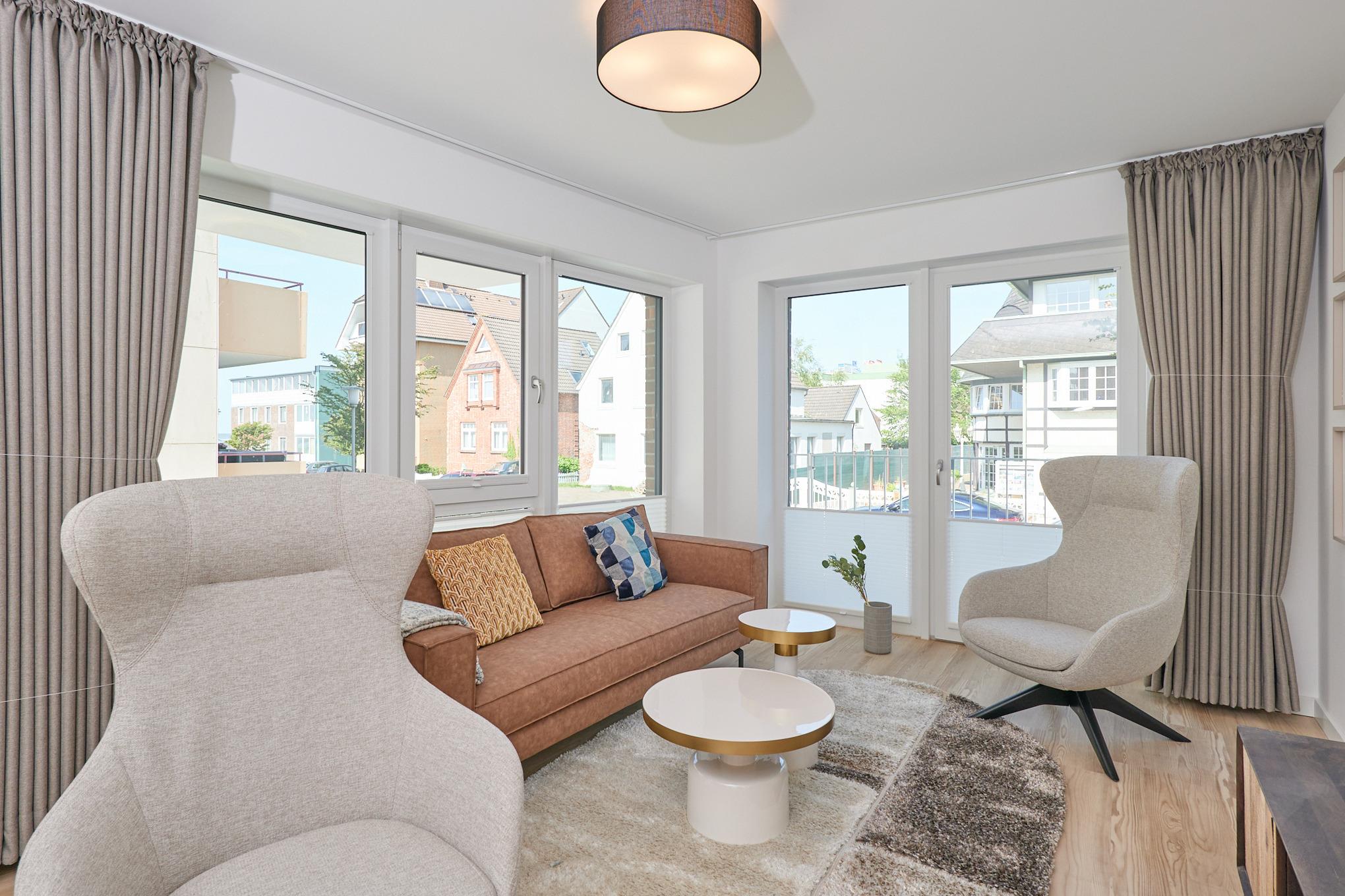 Neubau Mai 2023! Sehr schöne, moderne 3-Raum-Wohnung bis 4 Pers. voll ausgestattet auf ca. 87 m² in der 1.Etage gelegen, 2 Schlafzimmer mit komfortablen Doppelbetten (Bettwäsche inkl.) und Außenjalousien an allen Fenstern, Hinweis: Ein Schlafzimmer mit Empore für das Doppelbett - eingeschränkte Kopffreiheit, ebenerdige Dusche/WC, Wohnzimmer mit großer Küchenzeile (Backofen, Geschirrspüler, Mikrowelle) 2x Kabel-TV, Radio, kostenfreies W-LAN-Internet, kleiner Balkon (nord/ost) mit Teilseesicht, Personenaufzug, reservierter Pkw-Stellplatz in der Tiefgarage inkl., es sind keine Haustiere erlaubt und natürlich Nichtraucher. Durchfahrtshöhe Tiefgarage: 2,05m.