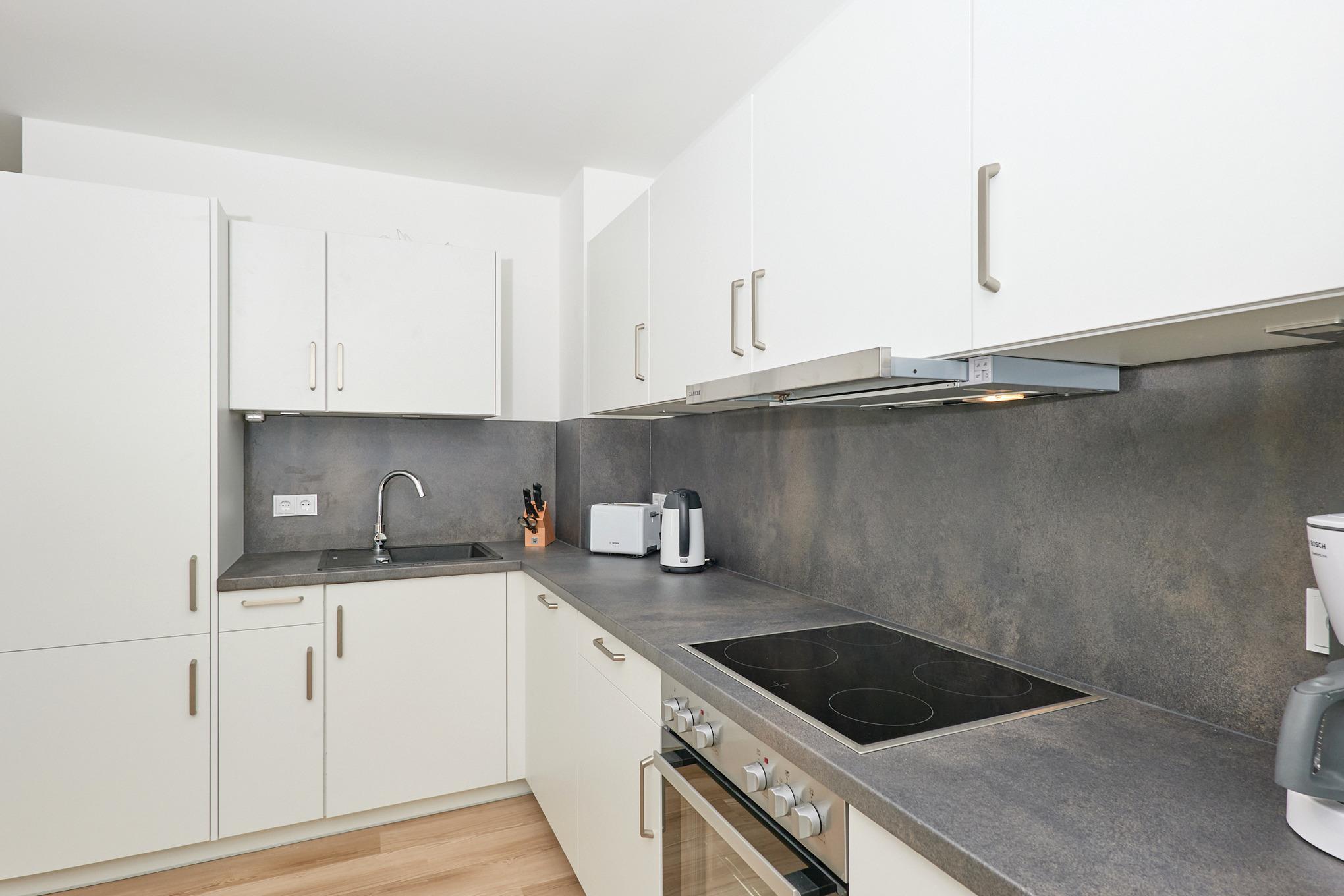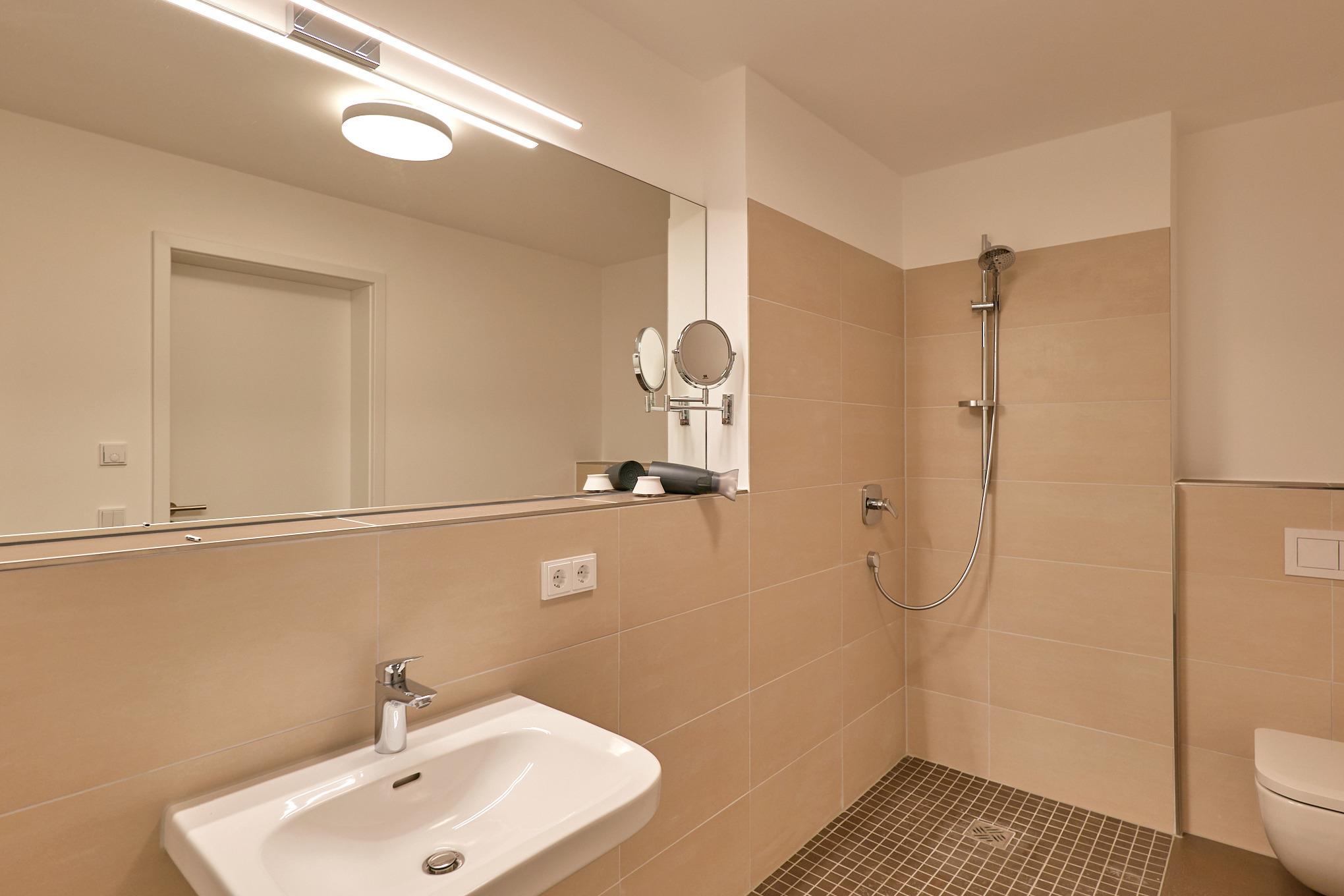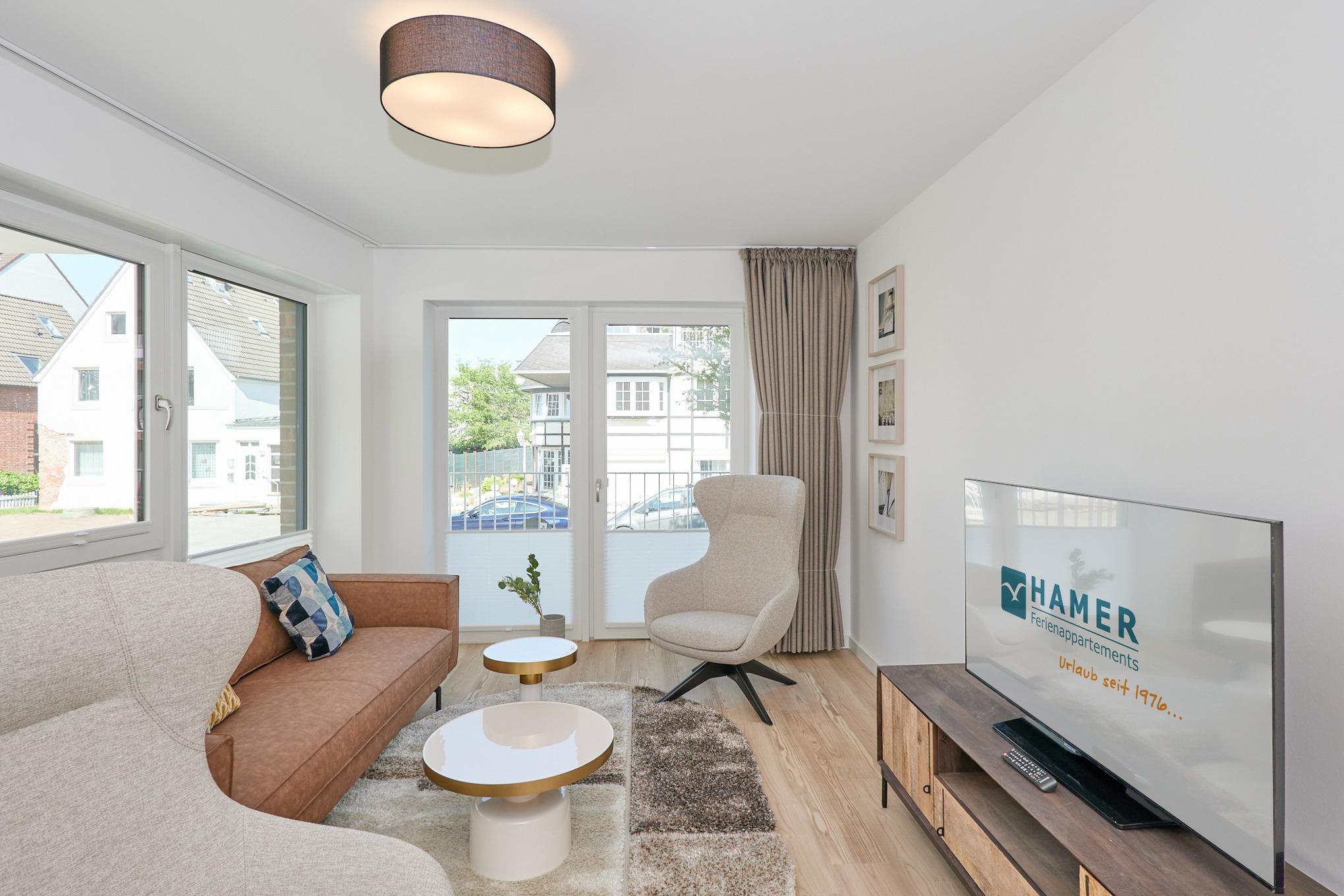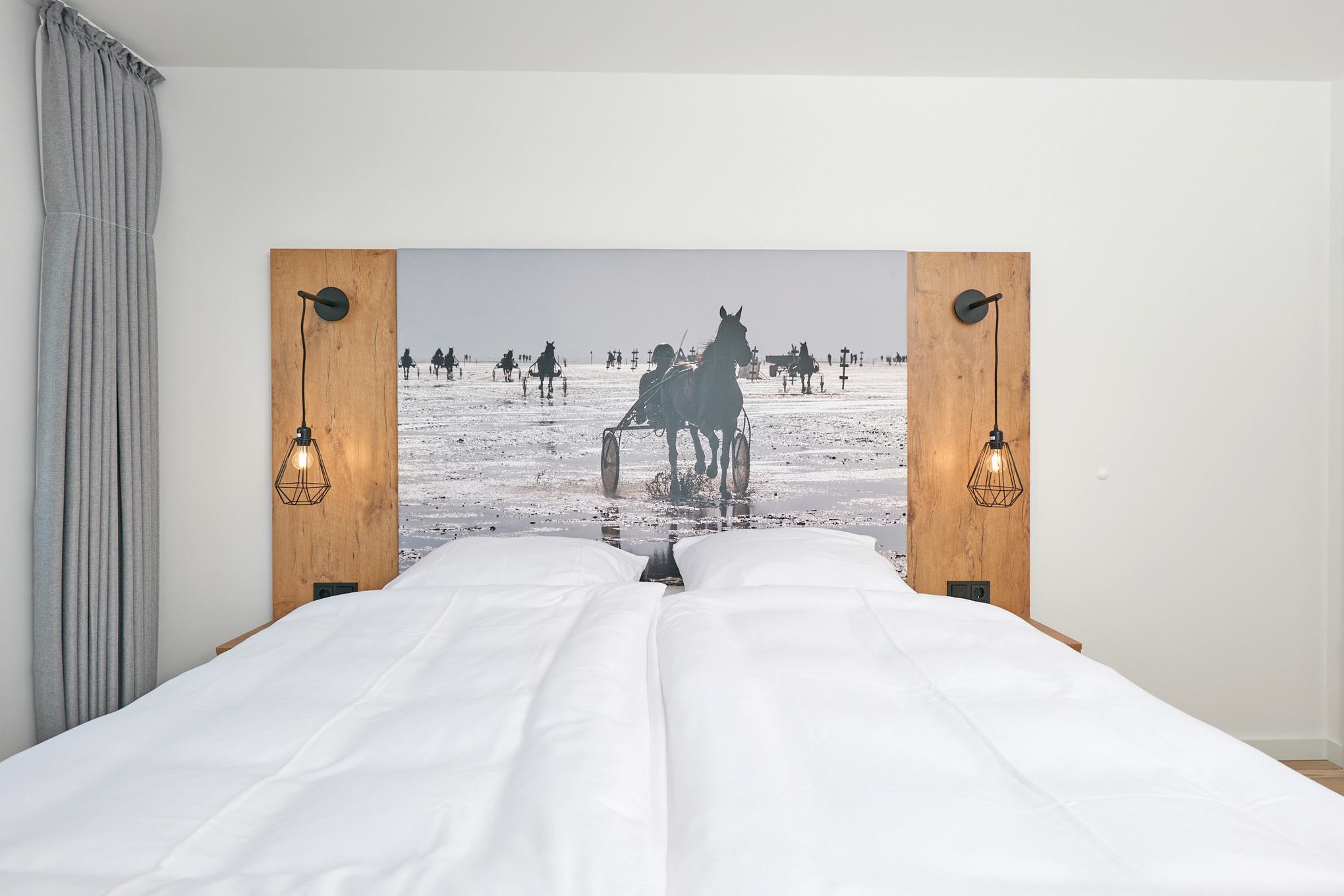 Neubau Mai 2023! Sehr schöne, moderne 3-Raum-Wohnung bis 4 Pers. voll ausgestattet auf ca. 87 m² in der 1.Etage gelegen, 2 Schlafzimmer mit komfortablen Doppelbetten (Bettwäsche inkl.) und Außenjalousien an allen Fenstern, Hinweis: Ein Schlafzimmer mit Empore für das Doppelbett - eingeschränkte Kopffreiheit, ebenerdige Dusche/WC, Wohnzimmer mit großer Küchenzeile (Backofen, Geschirrspüler, Mikrowelle) 2x Kabel-TV, Radio, kostenfreies W-LAN-Internet, kleiner Balkon (nord/ost) mit Teilseesicht, Personenaufzug, reservierter Pkw-Stellplatz in der Tiefgarage inkl., es sind keine Haustiere erlaubt und natürlich Nichtraucher. Durchfahrtshöhe Tiefgarage: 2,05m.