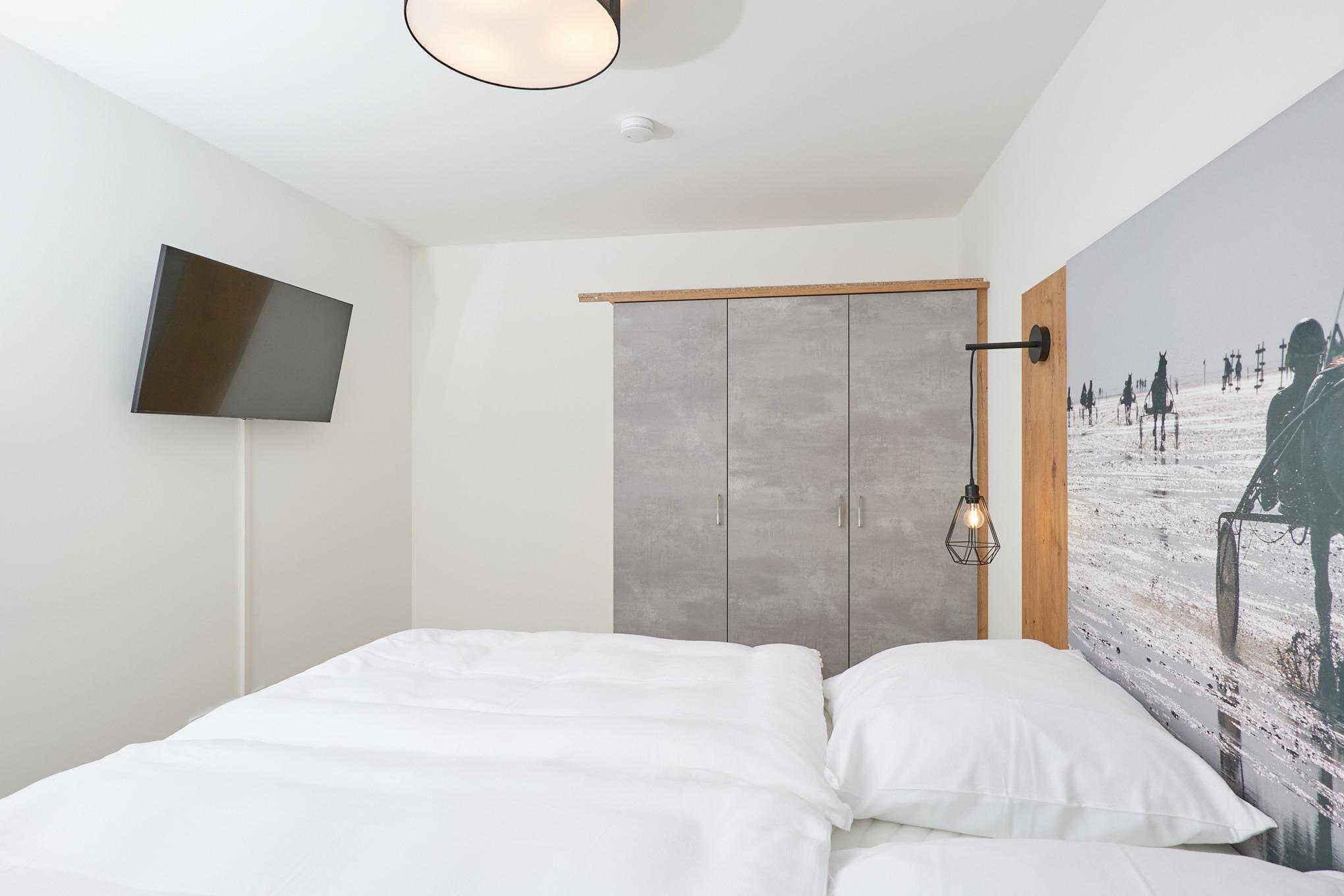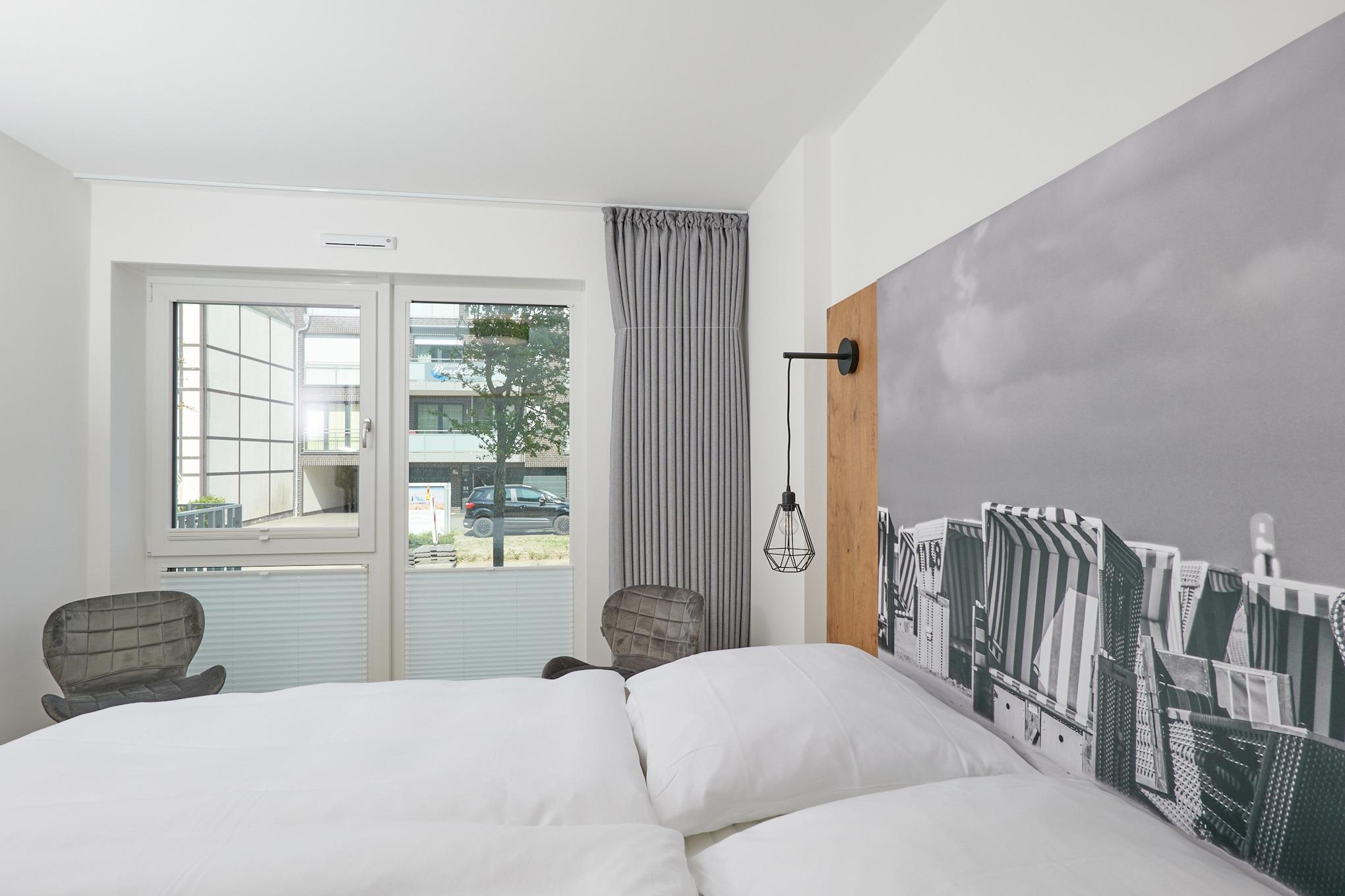 Neubau Mai 2023! Sehr schöne, moderne 3-Raum-Wohnung bis 4 Pers. voll ausgestattet auf ca. 73 m² in der 1.Etage gelegen, 2 Schlafzimmer mit komfortablen Doppelbetten (Bettwäsche inkl.) und Außenjalousien an allen Fenstern, ebenerdige Dusche/WC, Wohnzimmer mit großer Küchenzeile (Backofen, Geschirrspüler, Mikrowelle) 3x Kabel-TV, Radio, kostenfreies W-LAN-Internet, kleiner Balkon (ost), Personenaufzug, reservierter Pkw-Stellplatz in der Tiefgarage inkl., es sind keine Haustiere erlaubt und natürlich Nichtraucher. Durchfahrtshöhe Tiefgarage: 2,05m.